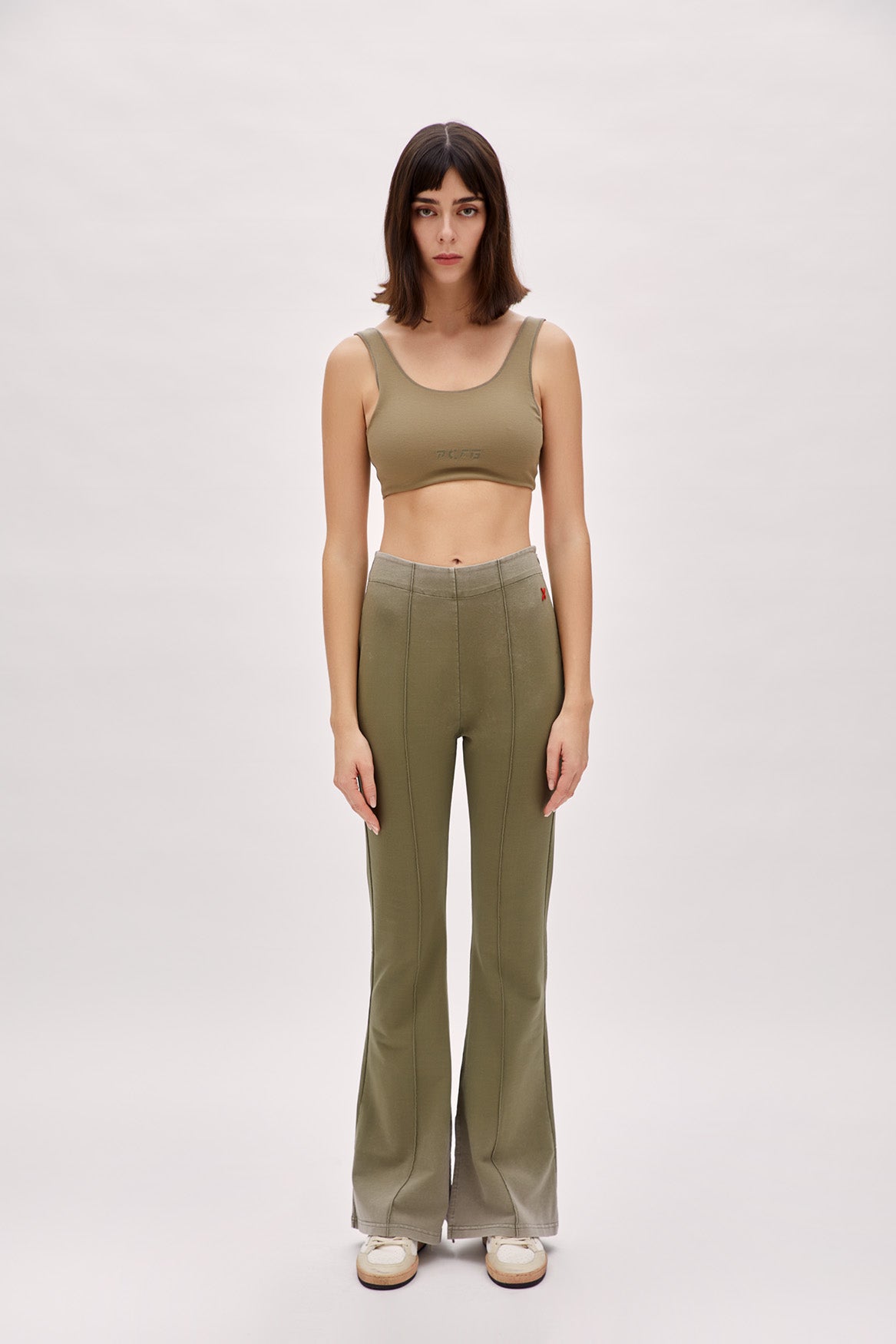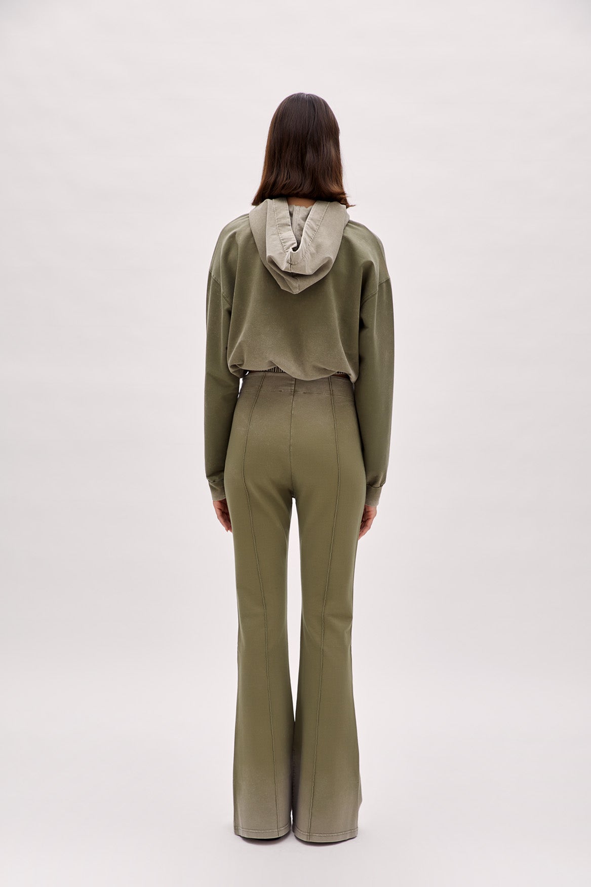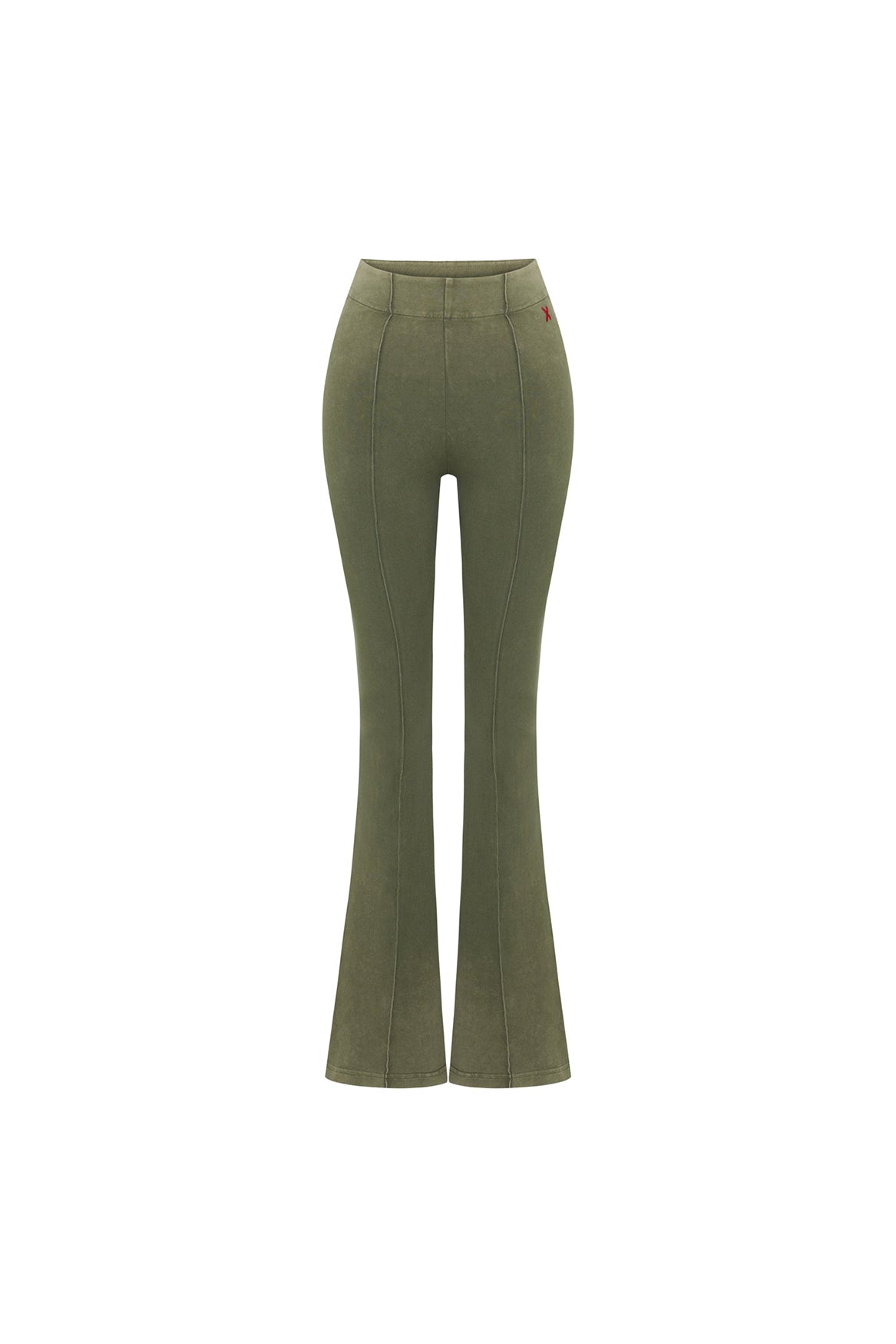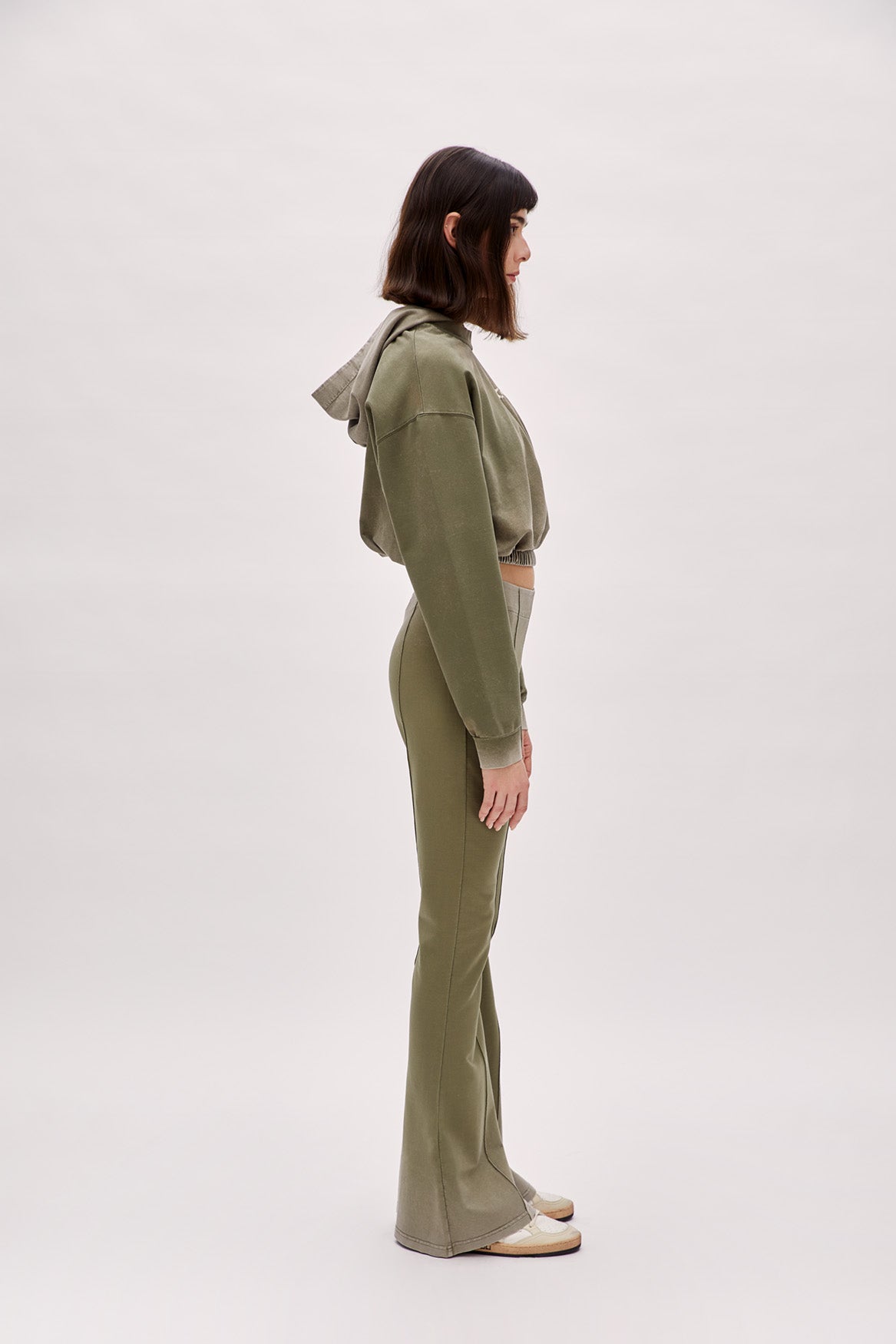 Cotton Acid Washed Flare Sweatpant - Covert Green