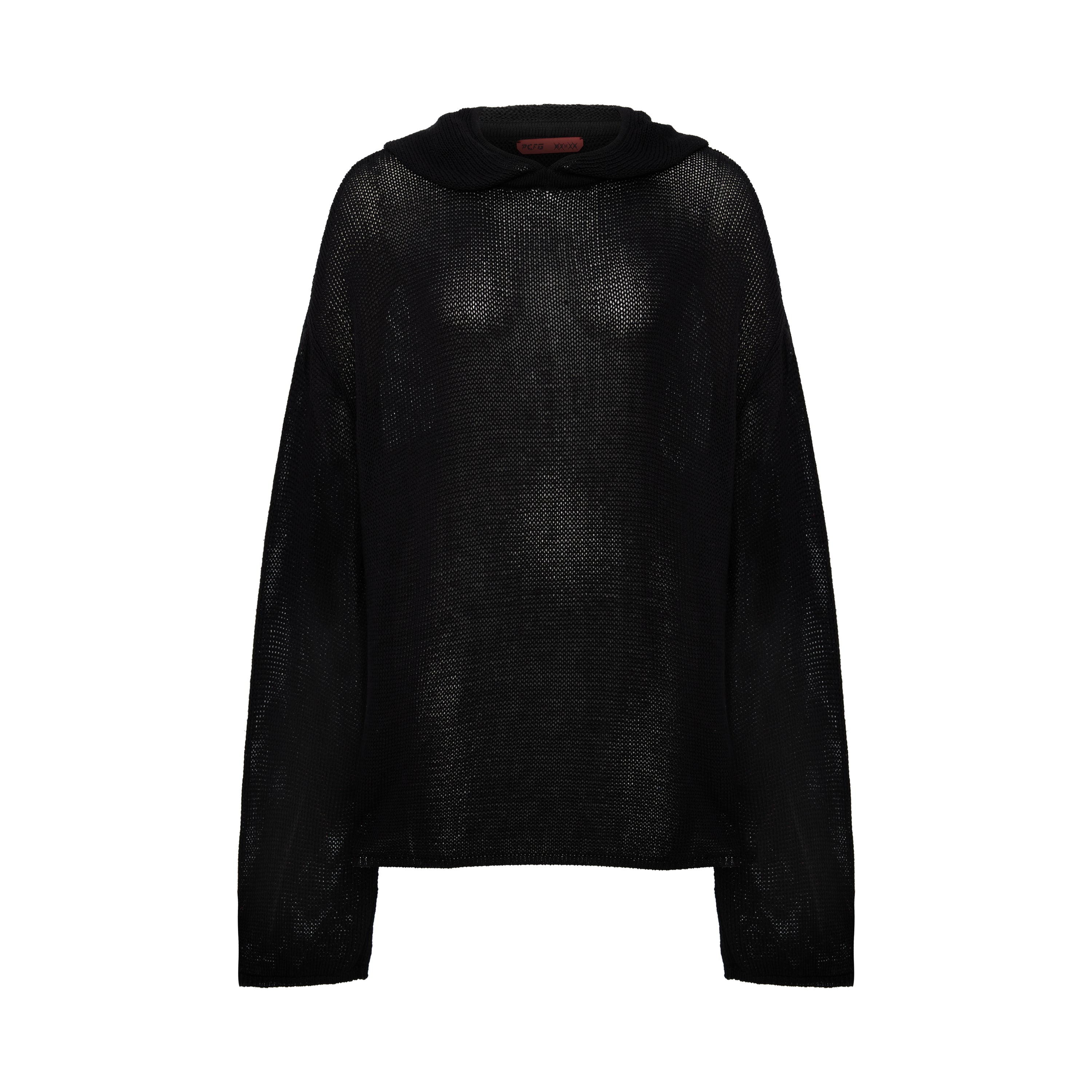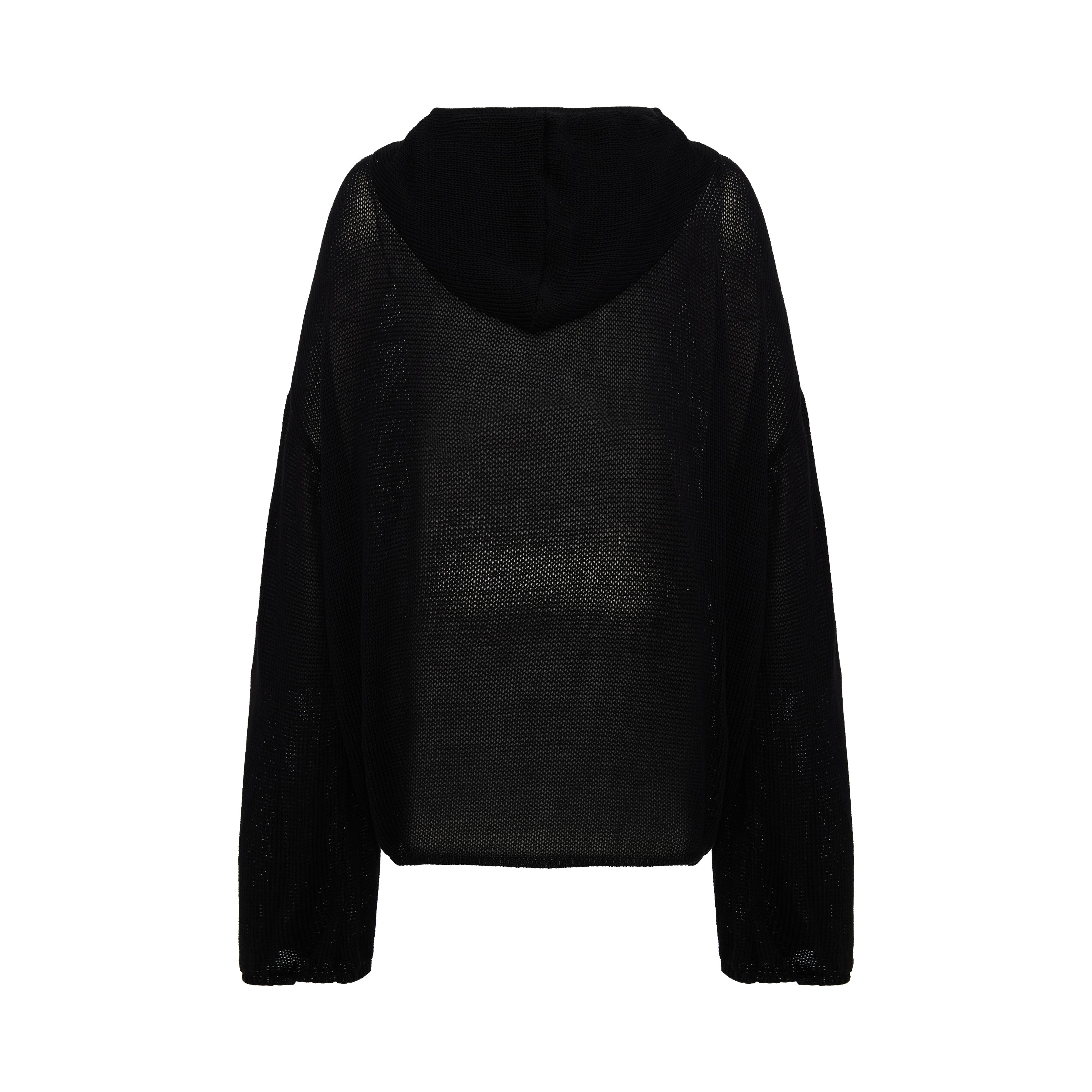 COTTON BLEND KNITTED HOODIE WITH WOVEN PATCH - JET BLACK