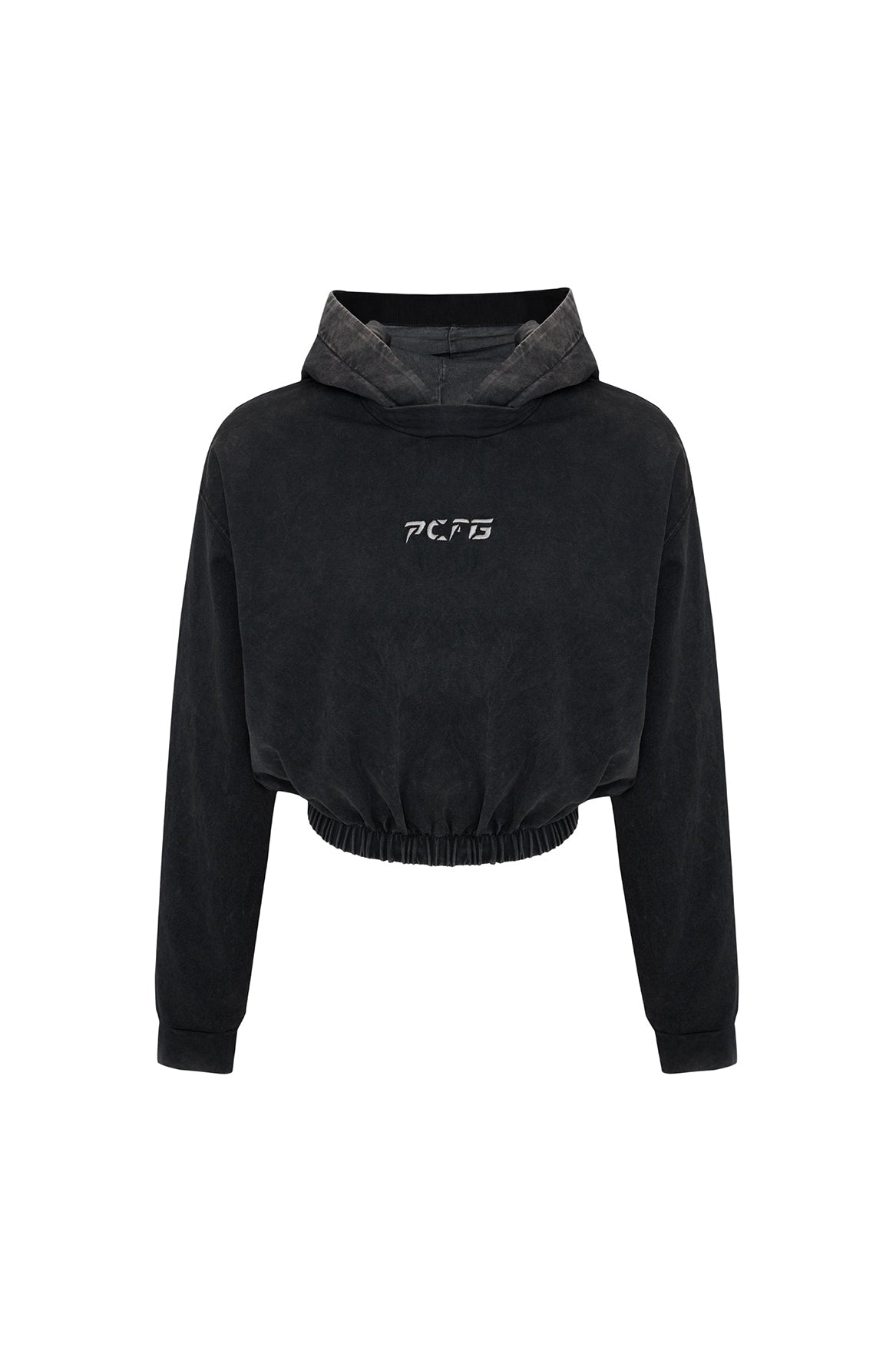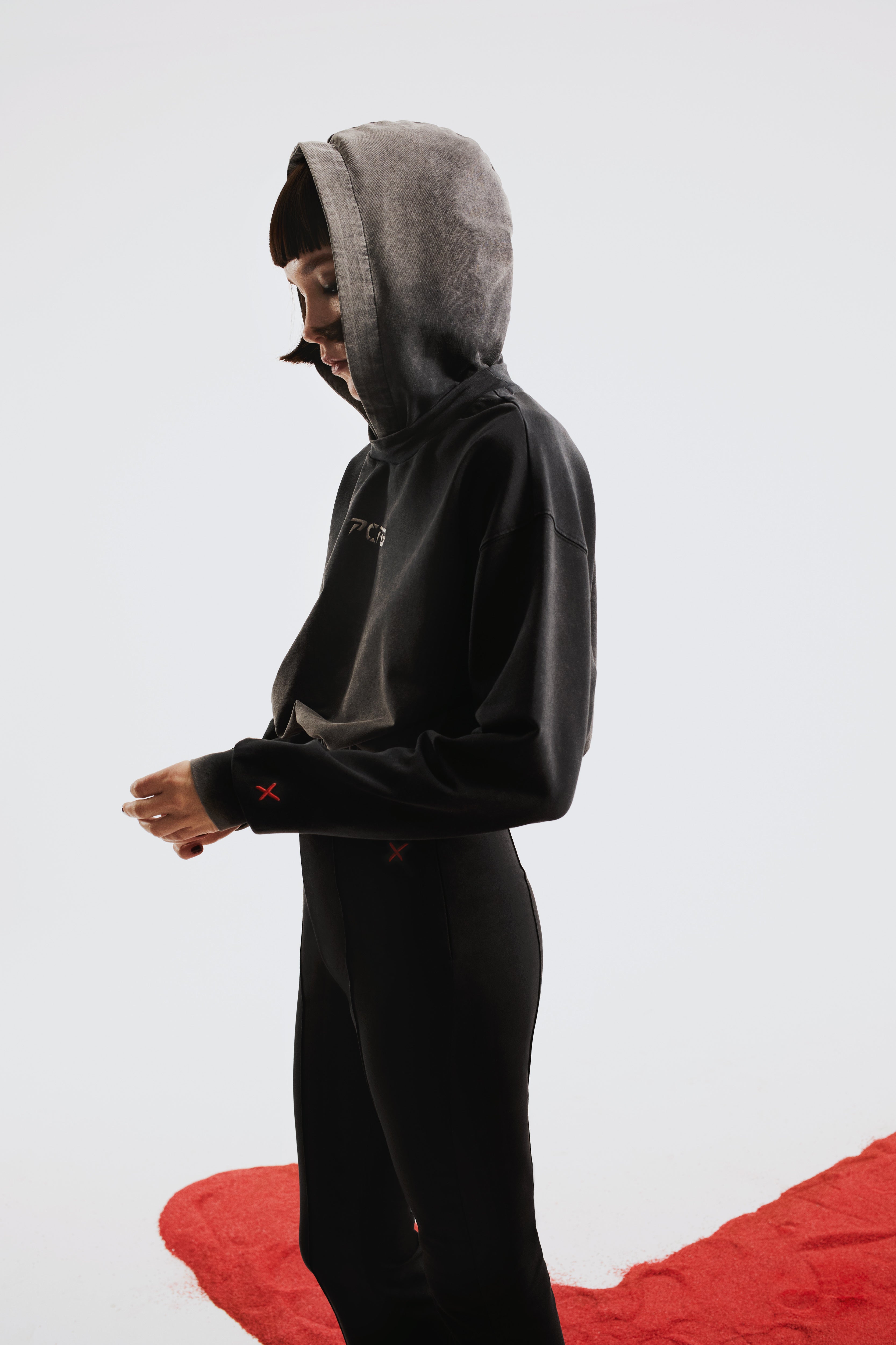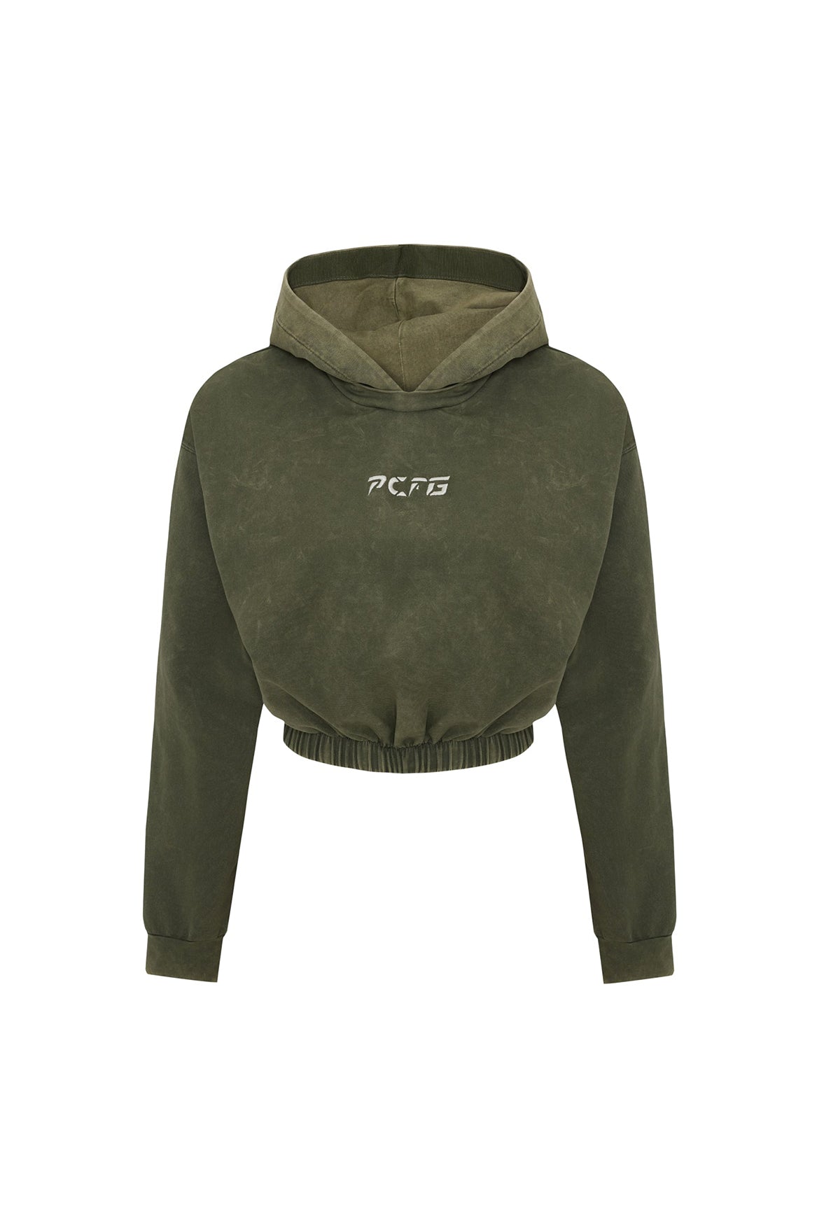 Cotton Acid Washed Crop Hoodie - Covert Green
