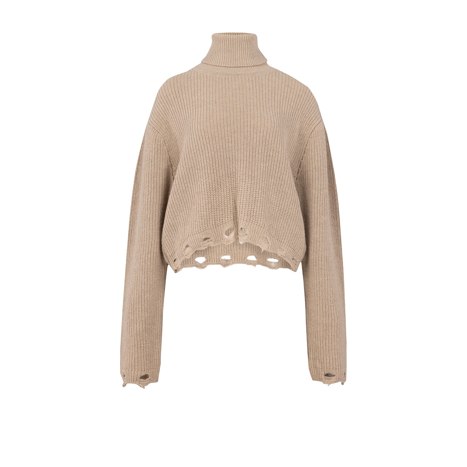 CASHMERE BLEND YOUR *ITCH RIPPED HIGH NECK KNIT SWEAT - SAMBA