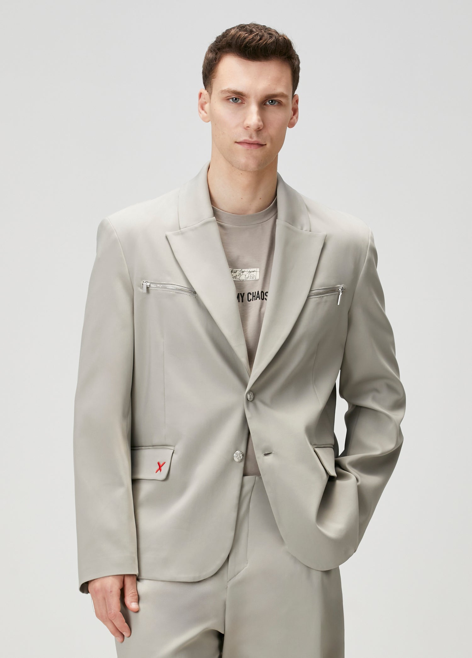 COTTON ZIP DETAIL WOVEN BLAZER