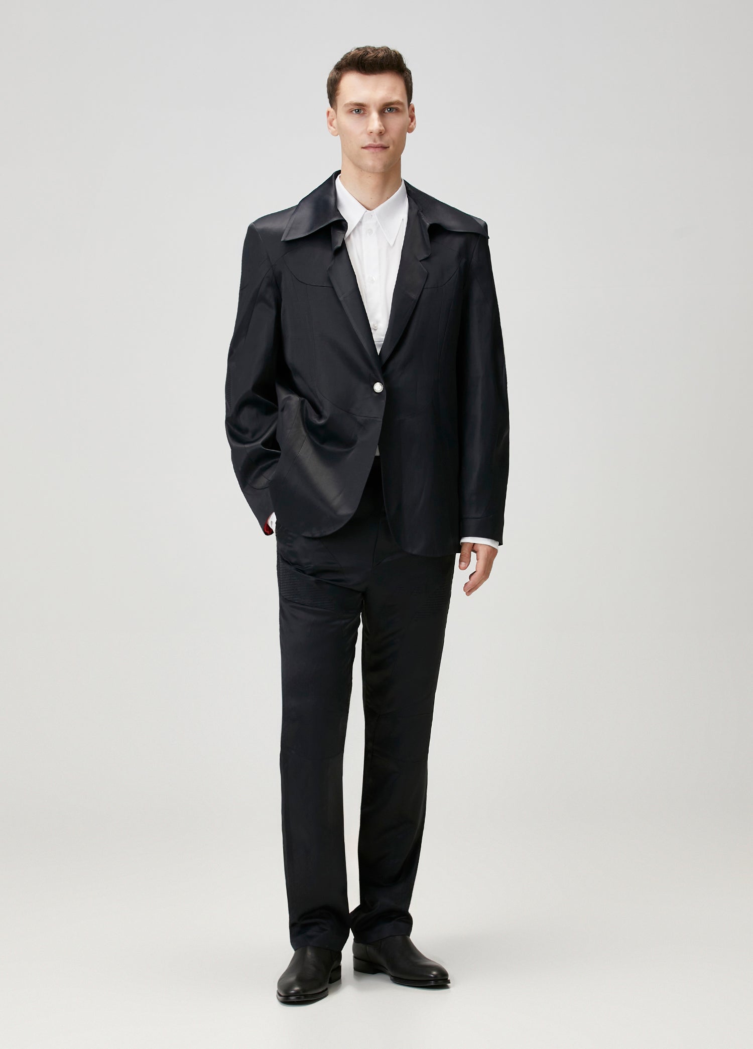 LINEN & COTTON BLEND SHINY WOVEN MEN BLAZER JACKET - BLACK
