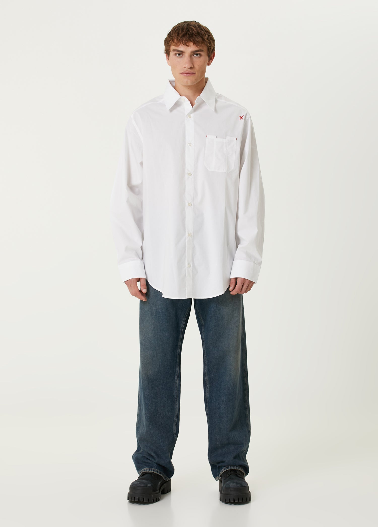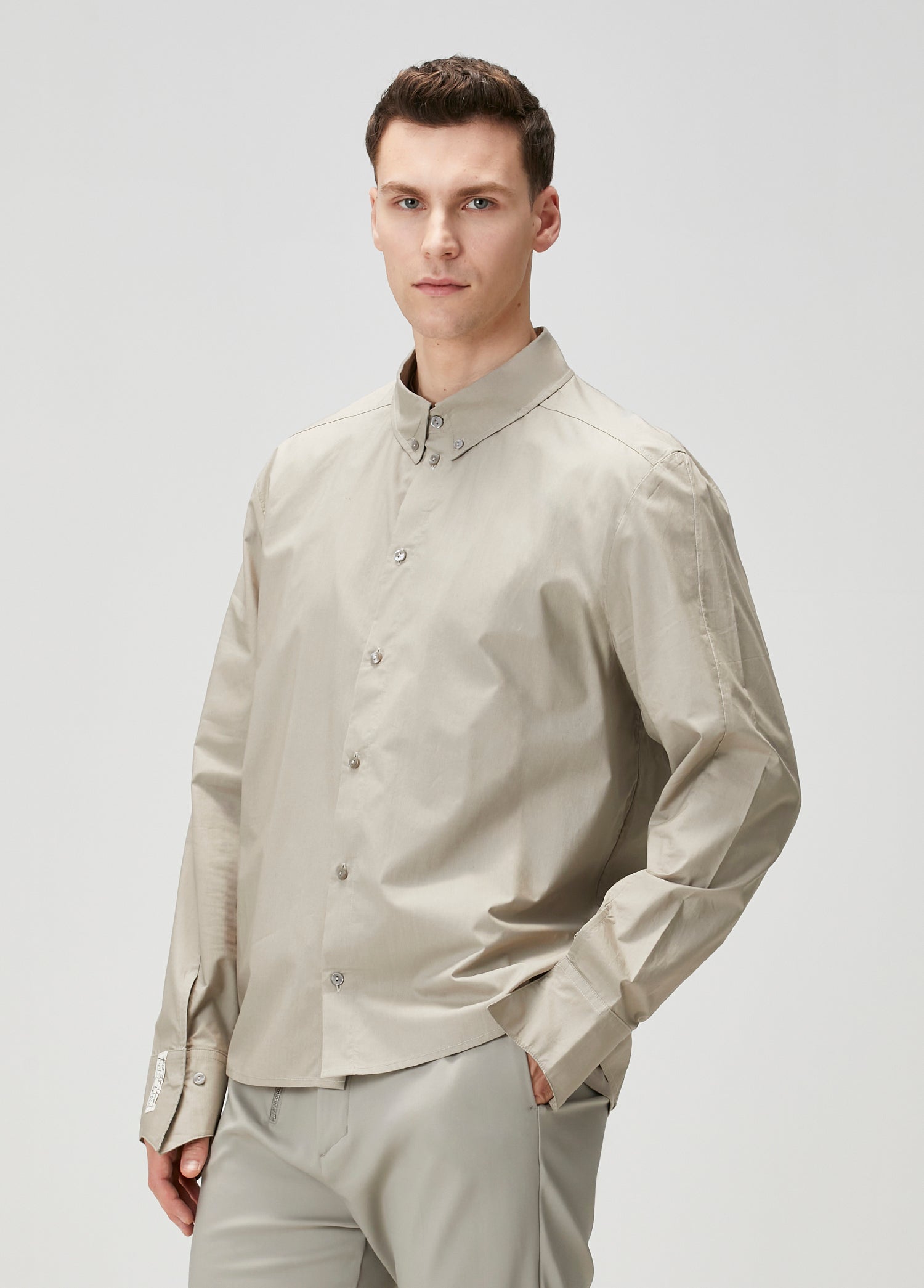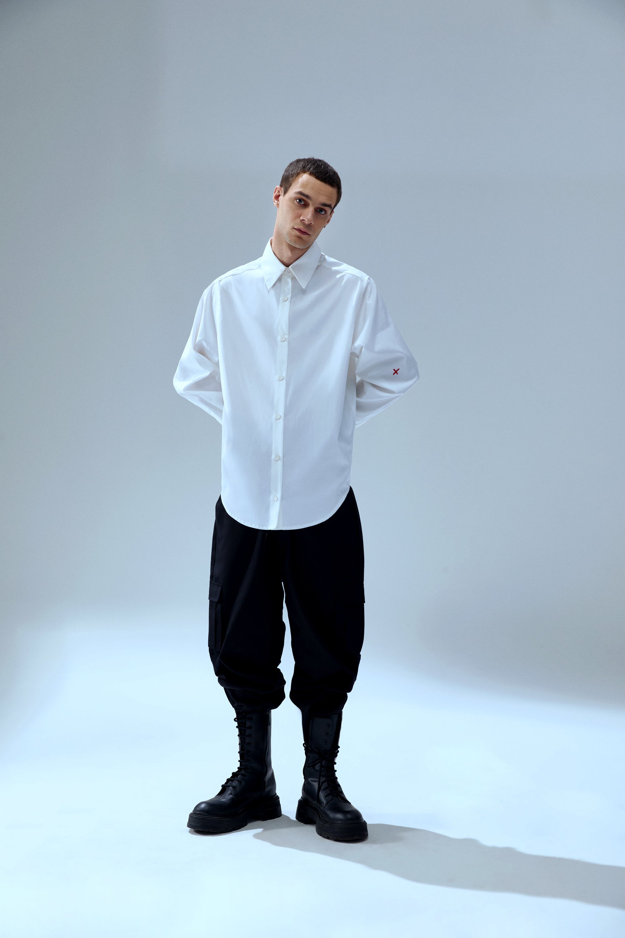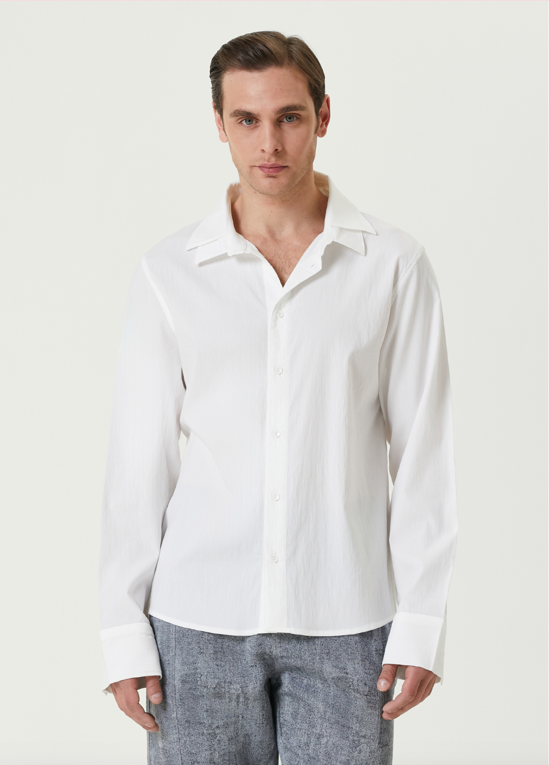 PURE COTTON WOVEN SHIRT WITH DOUBLE CUFF