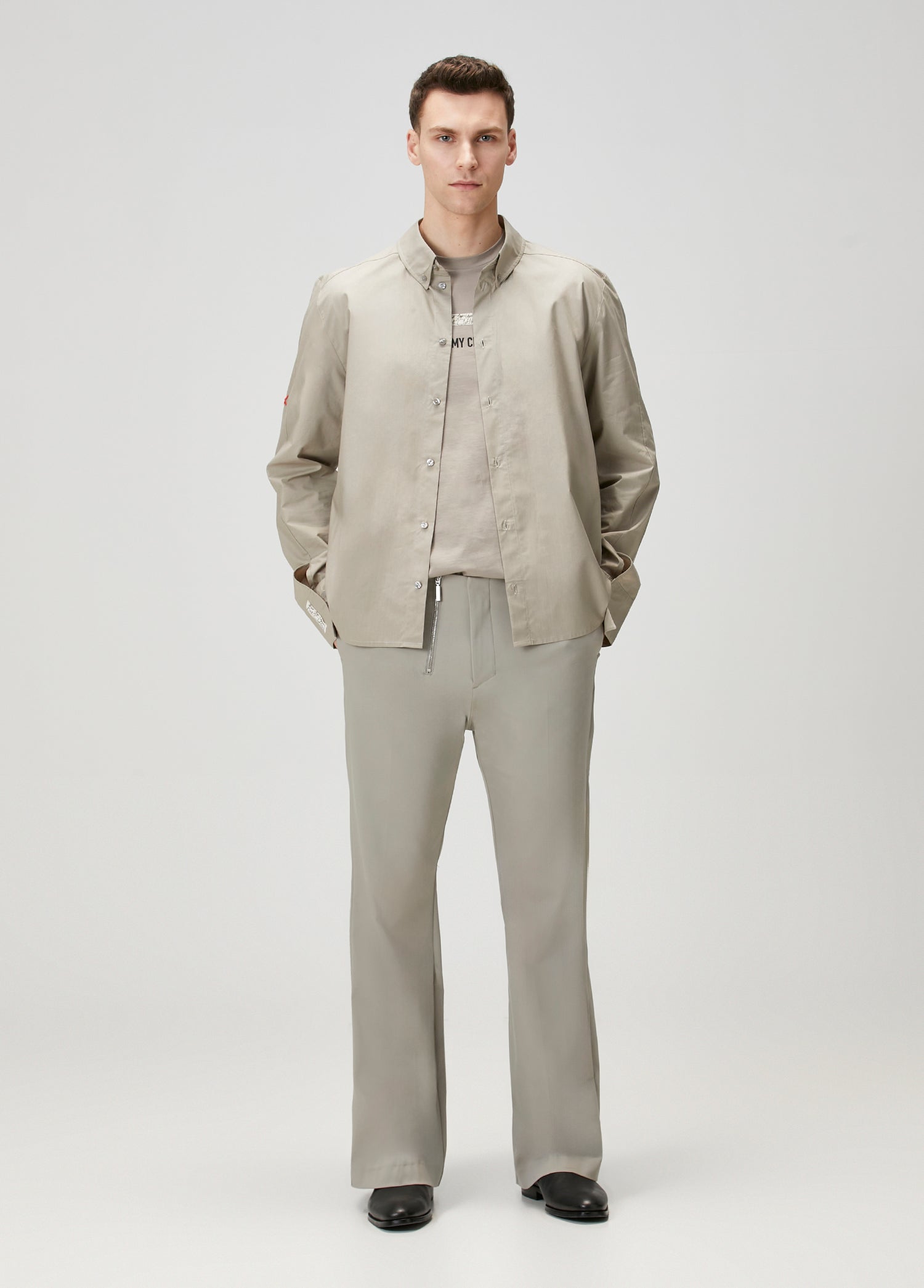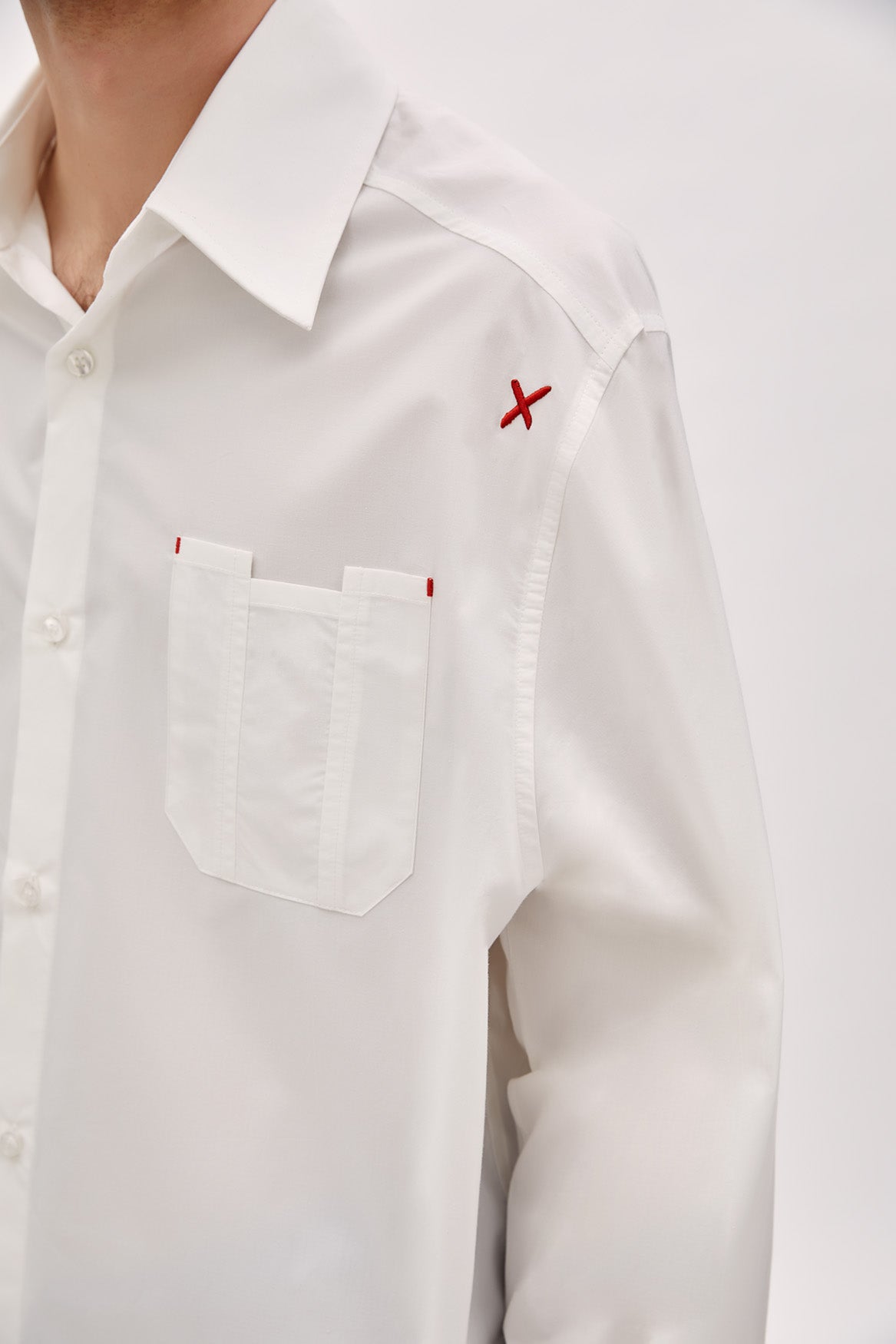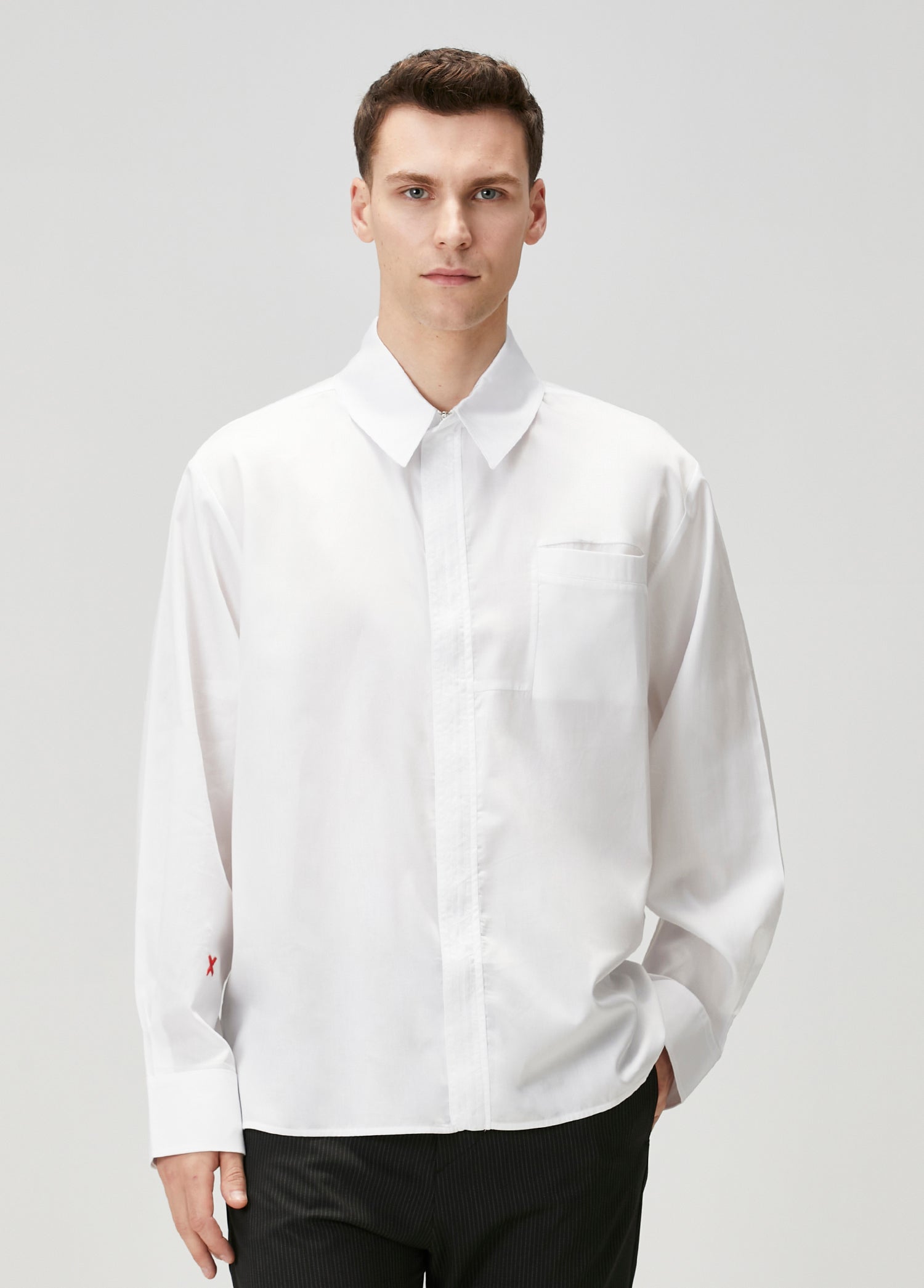 PURE COTTON WOVEN SHIRT WITH ZIP - WHITE