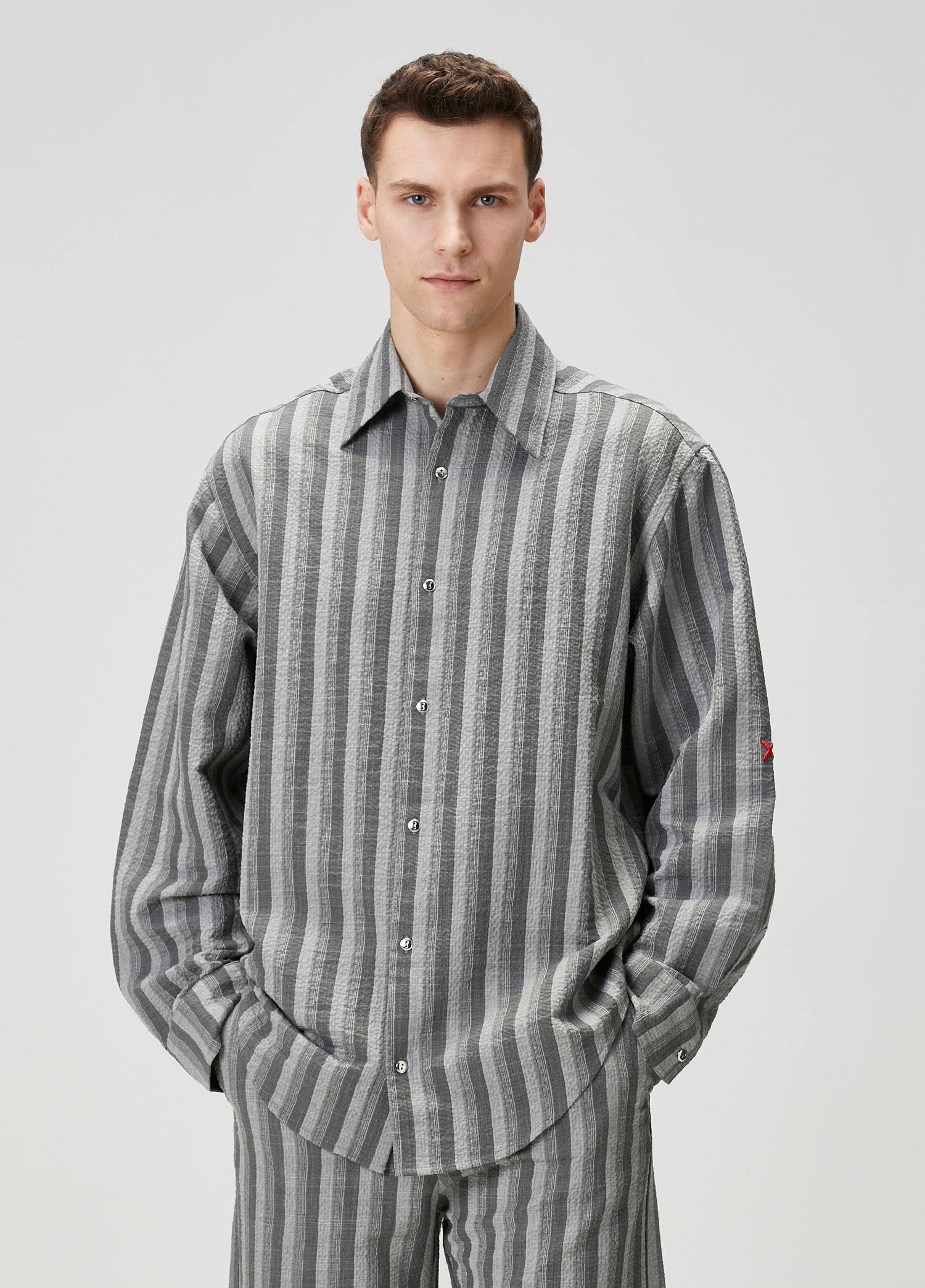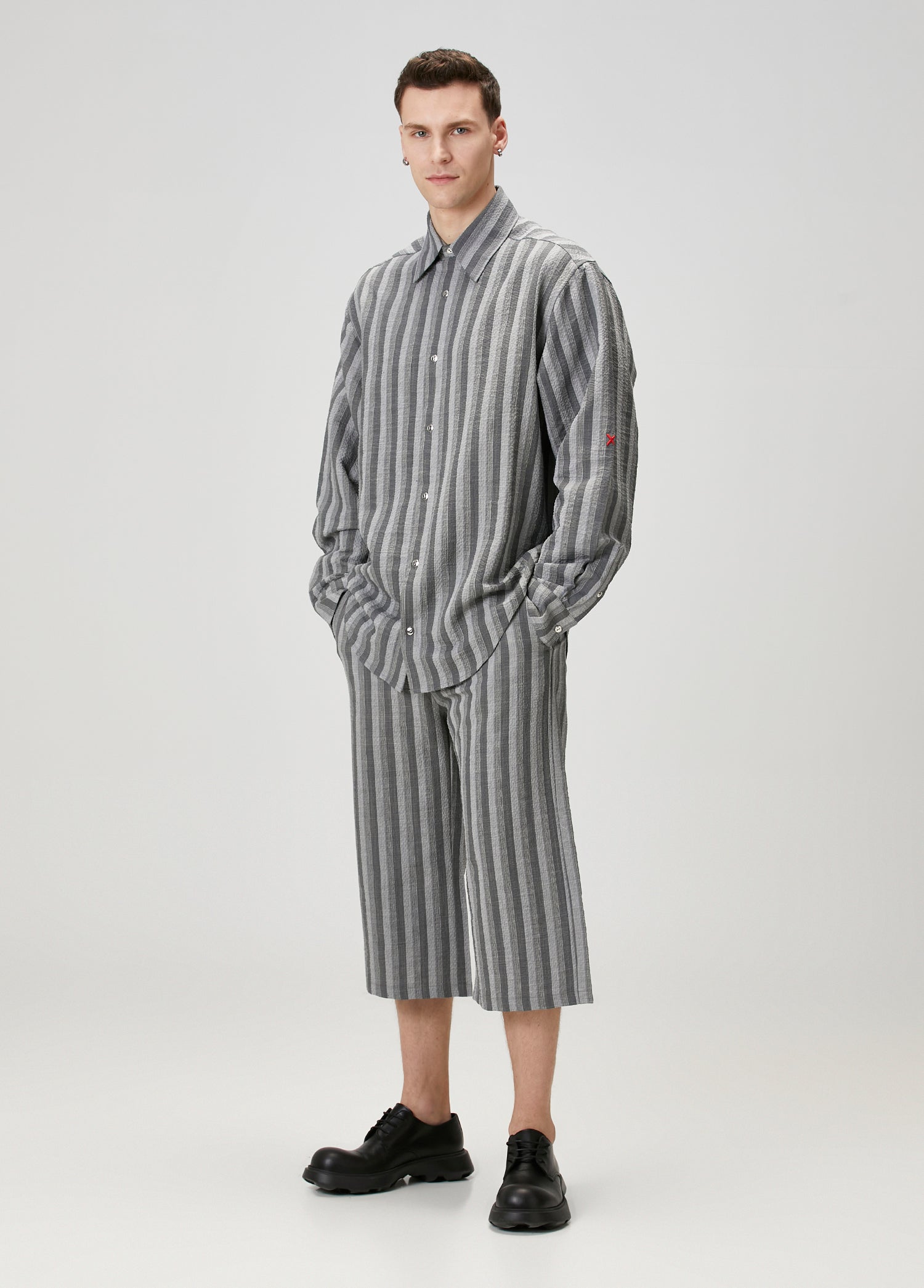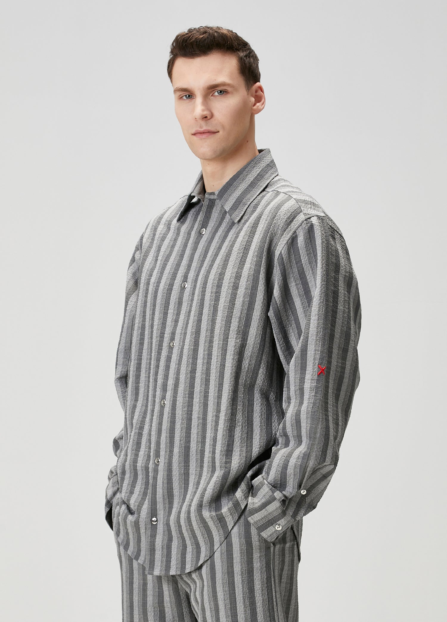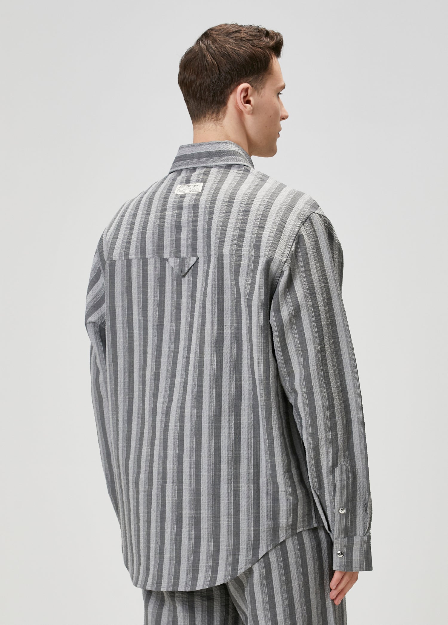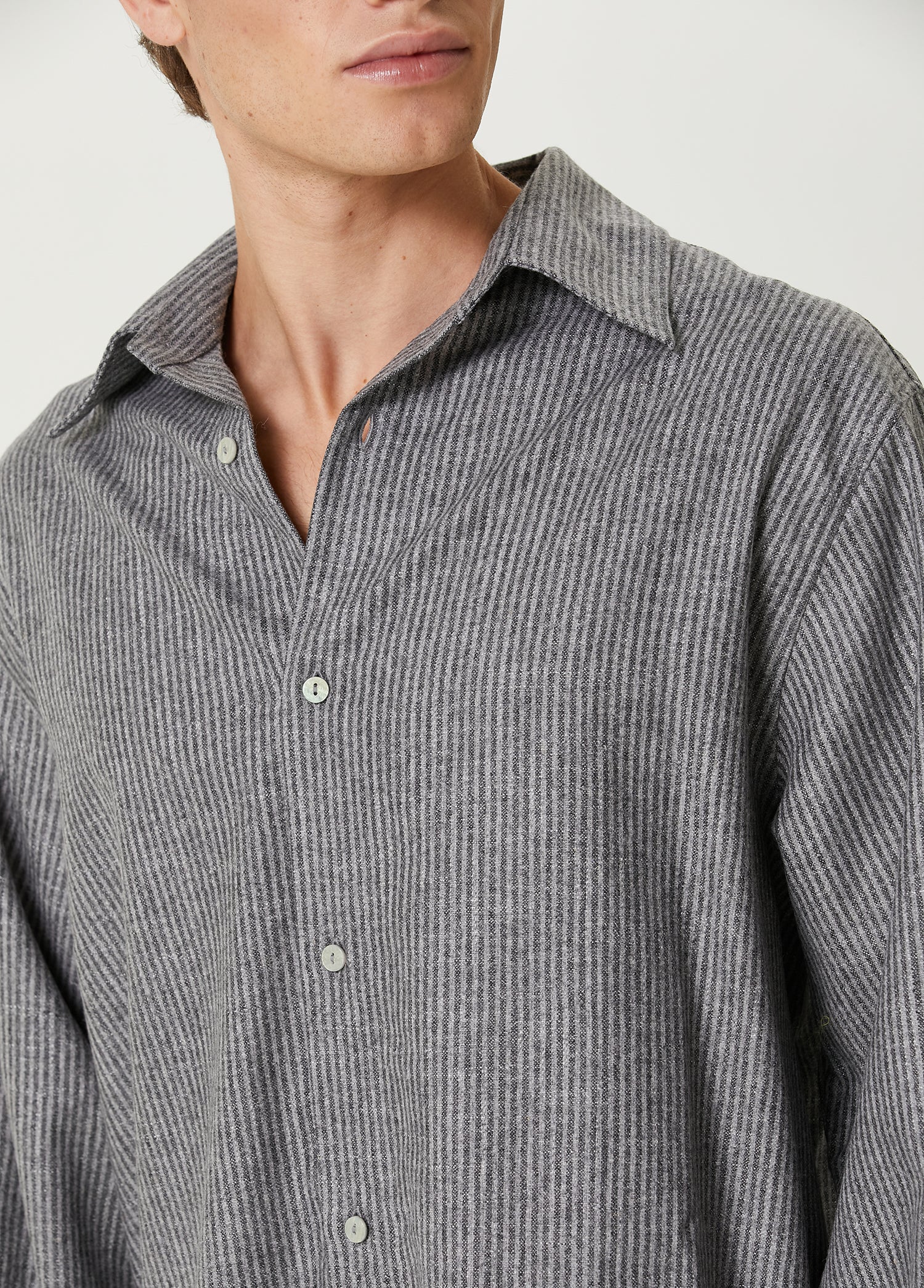 WOOL & CASHMERE BLEND YOUR *ITCH SRTIPED LONG SLEEVE SHIRT - GREY STRIPED