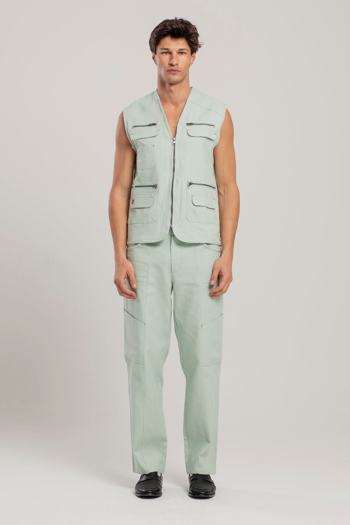 COTTON WOVEN VEST WITH ZIP DETAIL