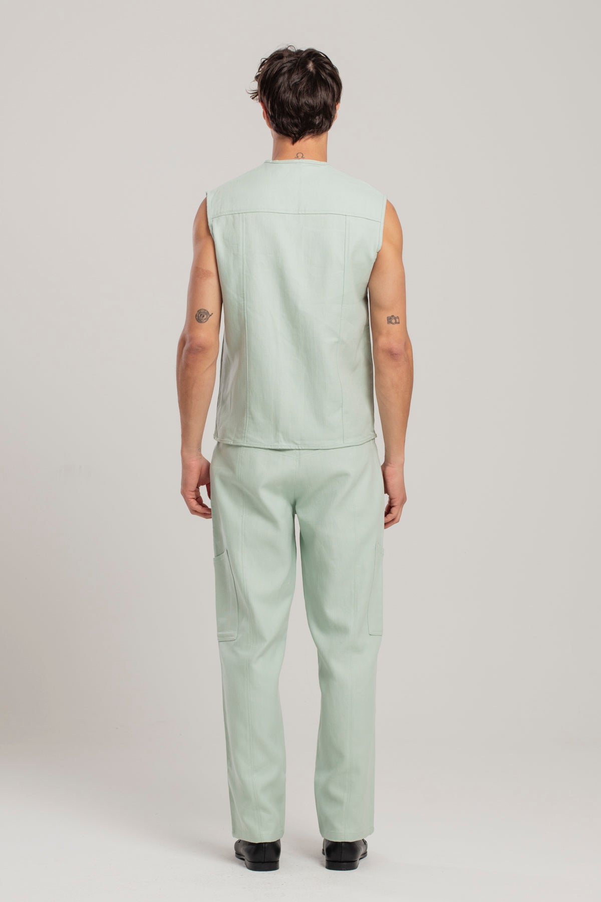 Linen Blend Free Heaven Vest With Pocket - Surf Spray