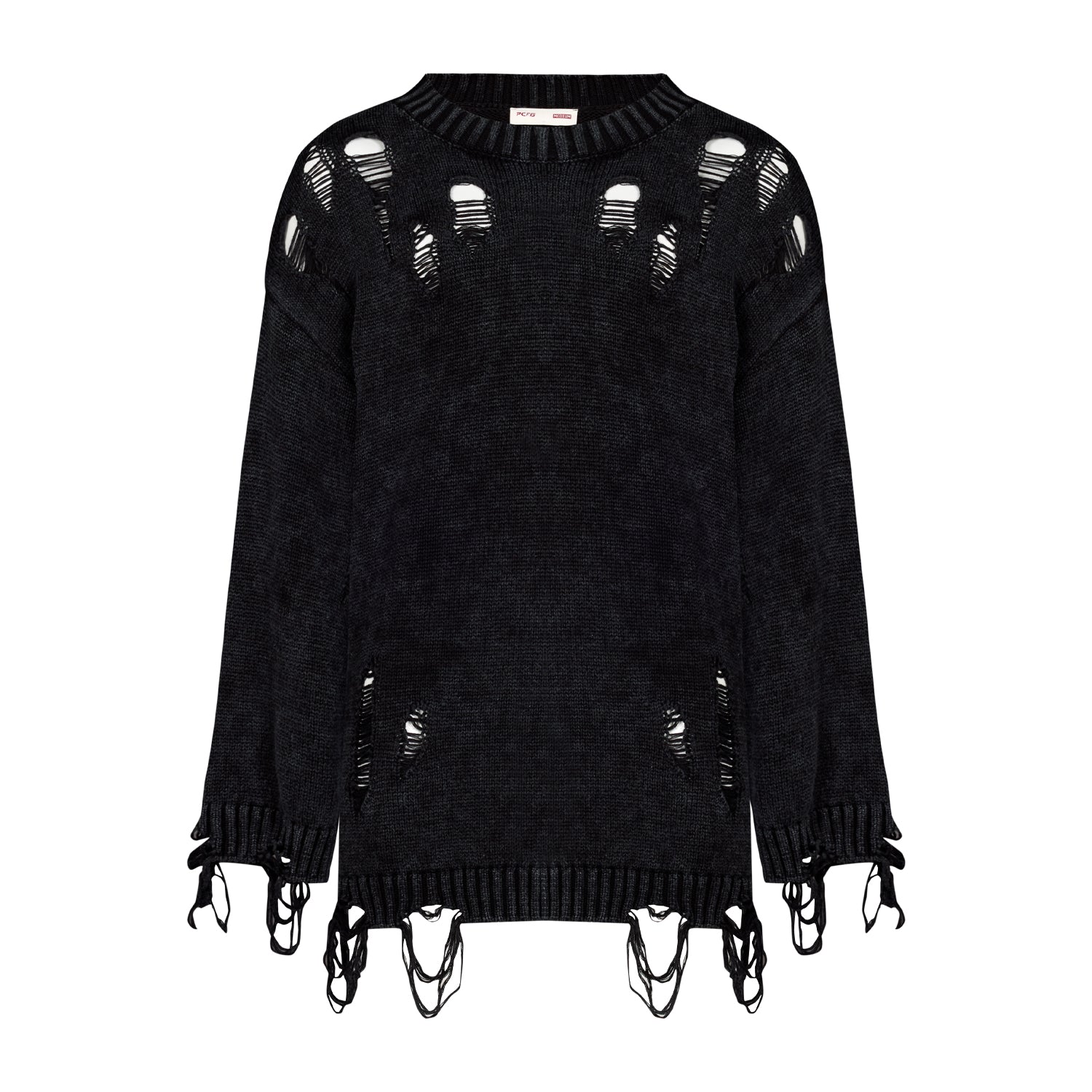 YOUR *ITCH RIPPED KNIT SWEAT - BLACK