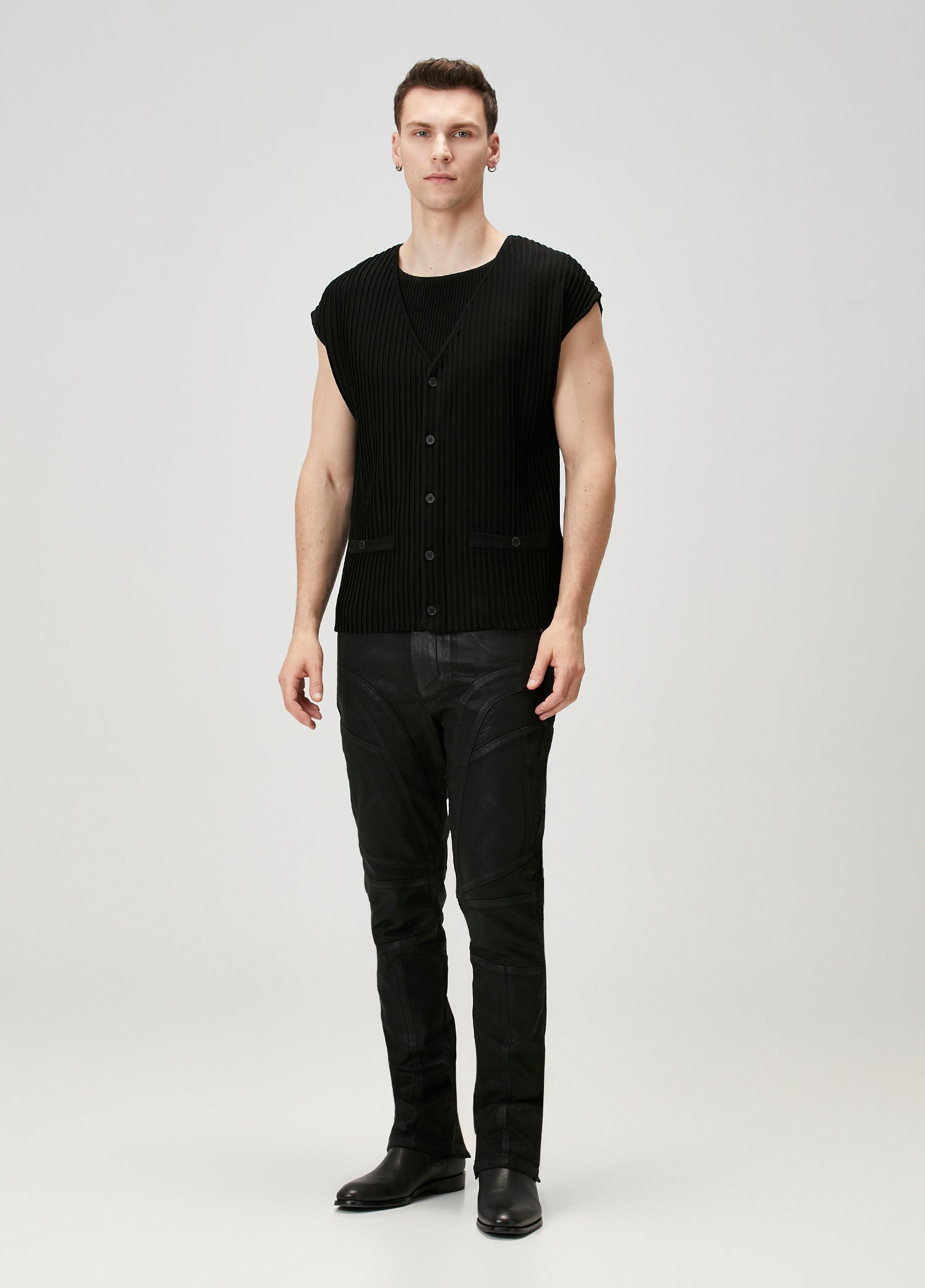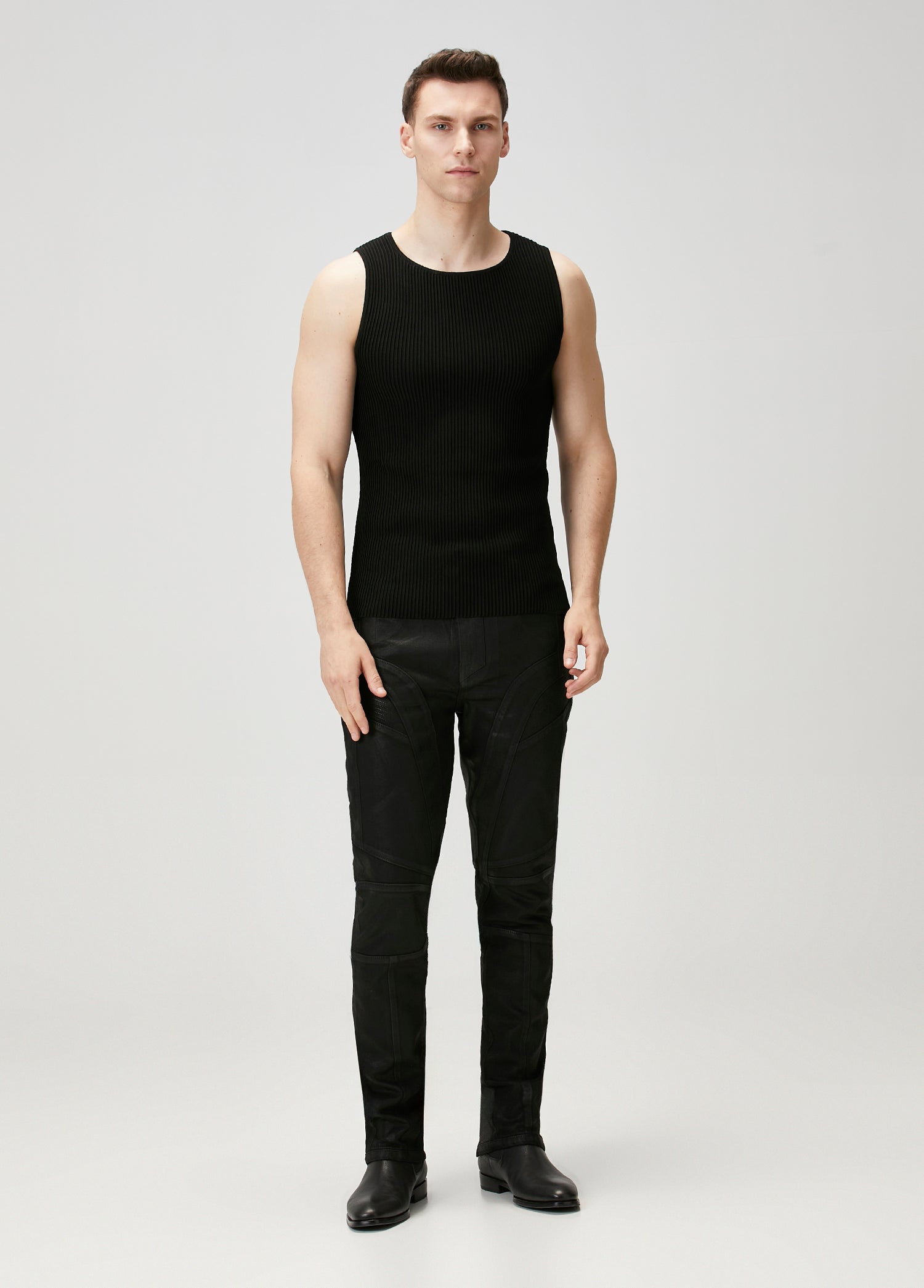PURE COTTON SHINY COATED DENIM PANT - BLACK