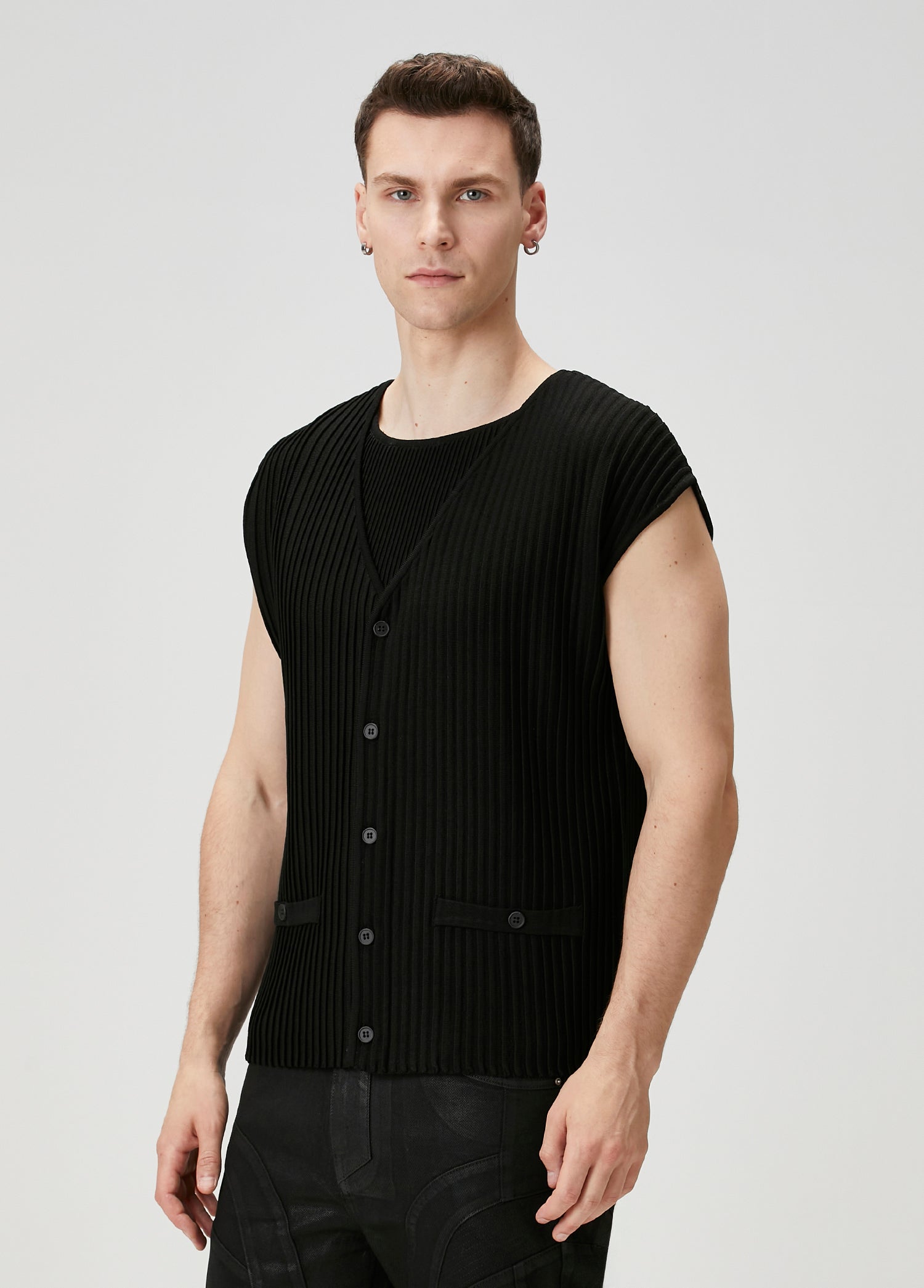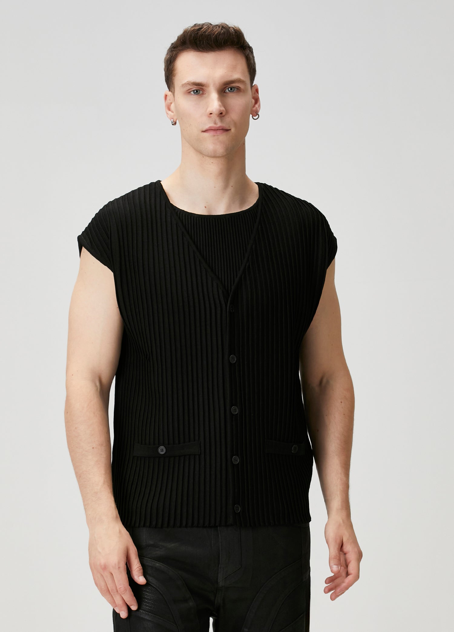 KNIT CARDIGAN WITH ZIP DETAIL - BLACK