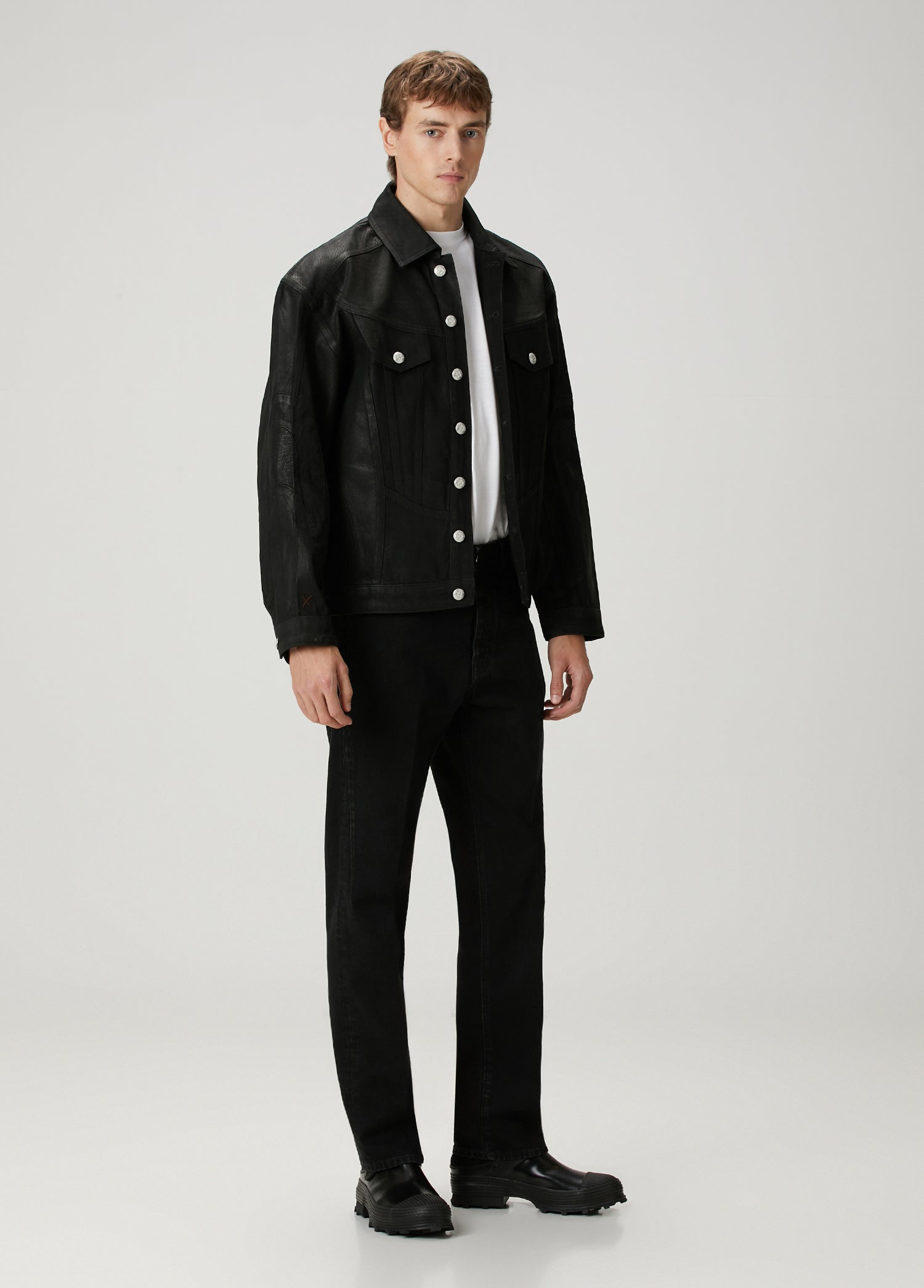 PURE COTTON SHINY COATED MEN DENIM JACKET - BLACK