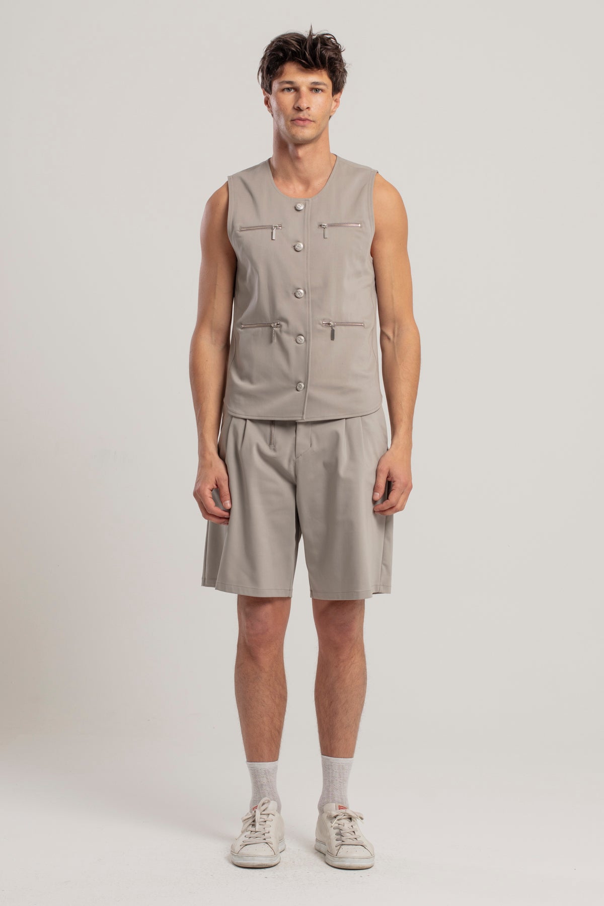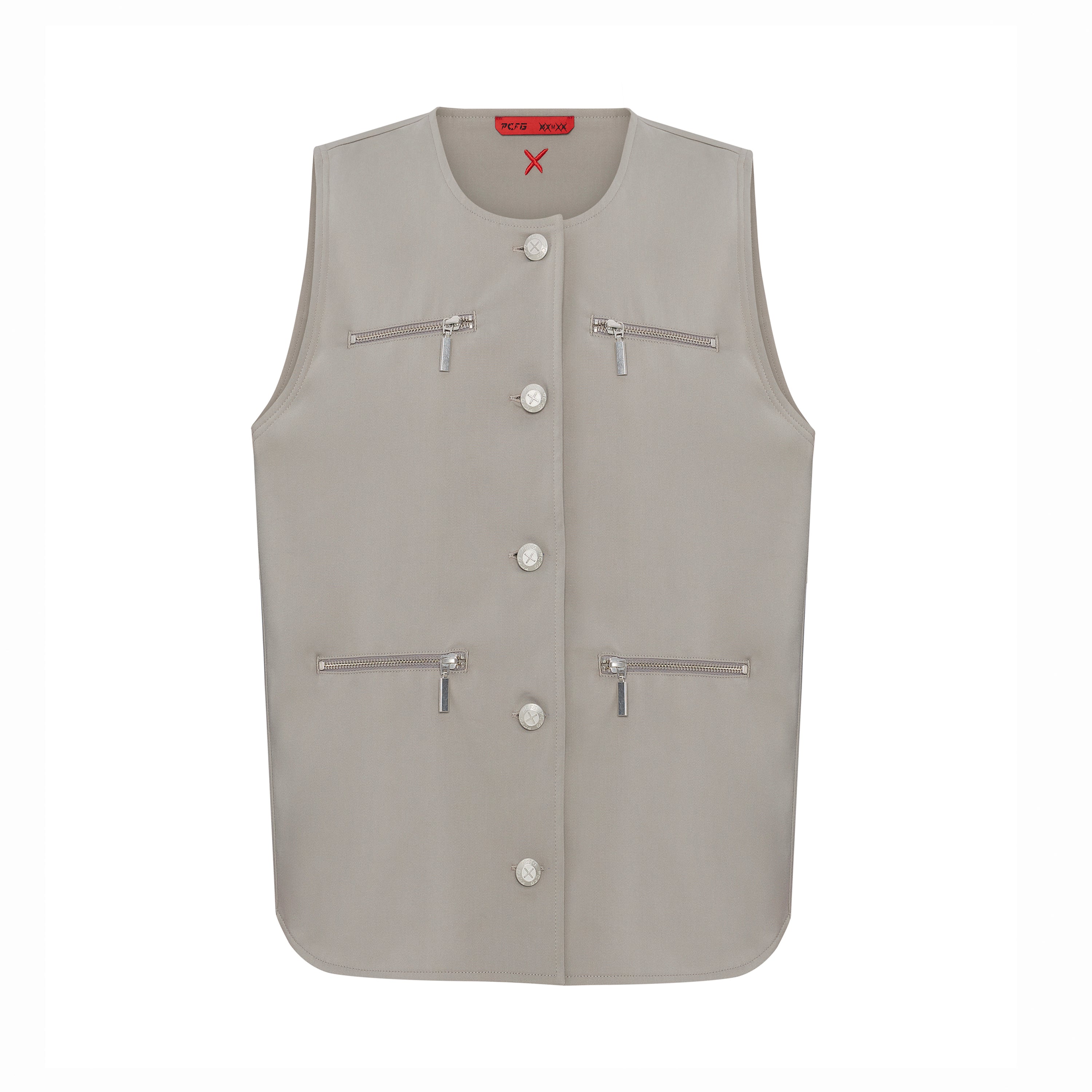 COTTON WOVEN VEST WITH ZIP DETAIL