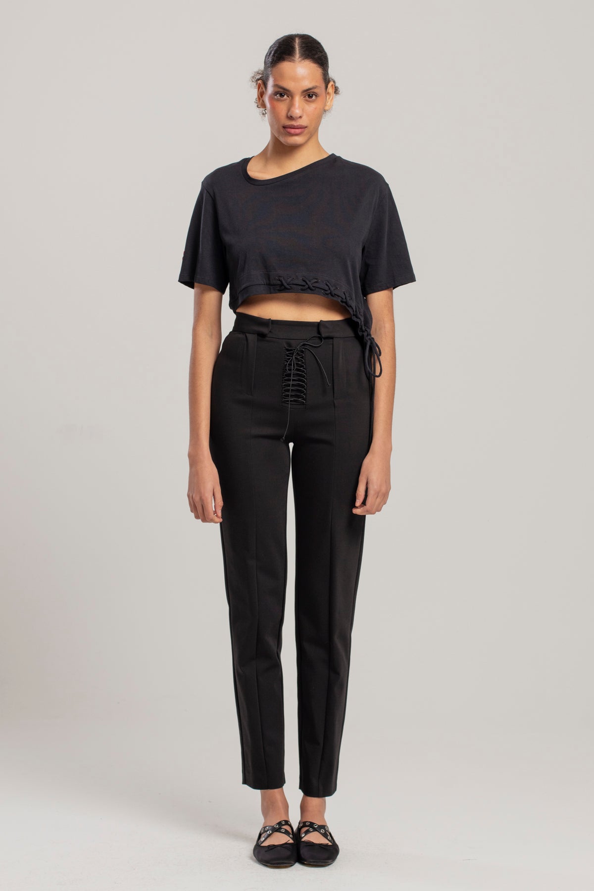 Cotton Flared Skinny Pant - Black