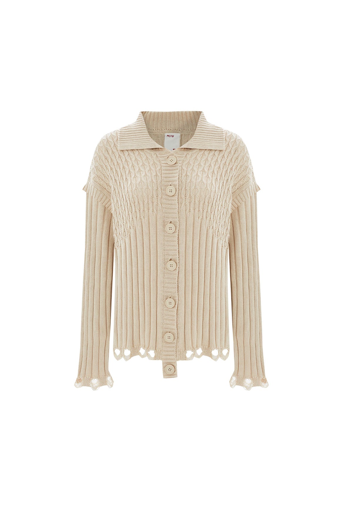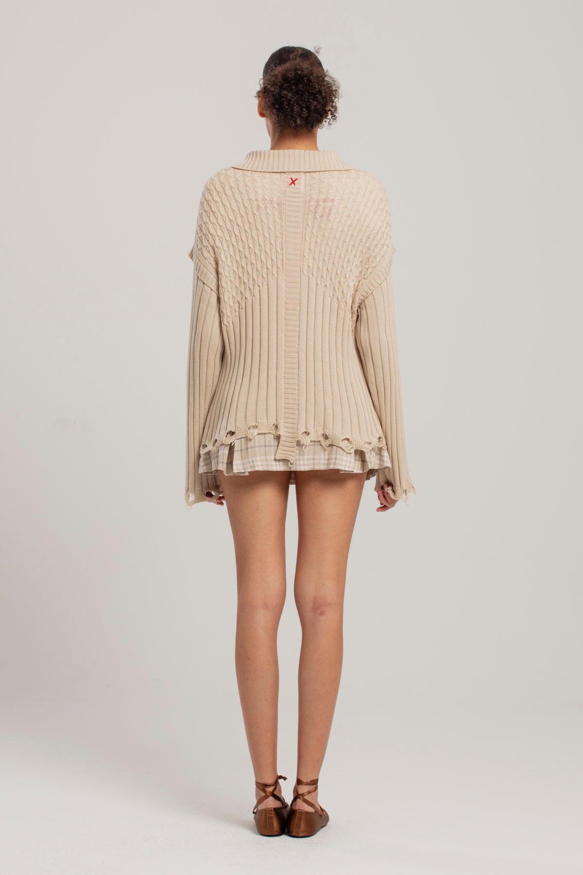 CASHMERE BLEND YOUR *ITCH RIPPED HIGH NECK KNIT SWEAT - STRING