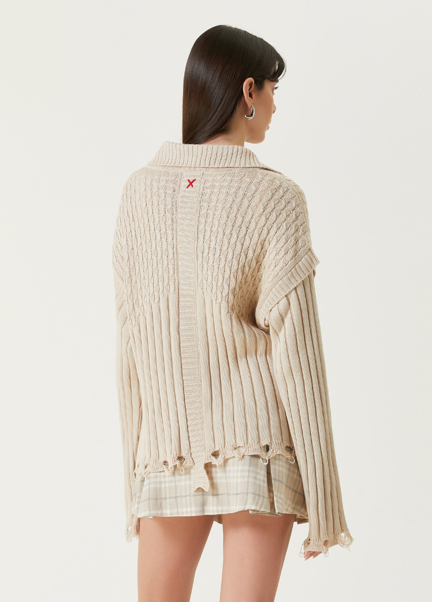 CASHMERE BLEND YOUR *ITCH RIPPED HIGH NECK KNIT SWEAT - SAMBA