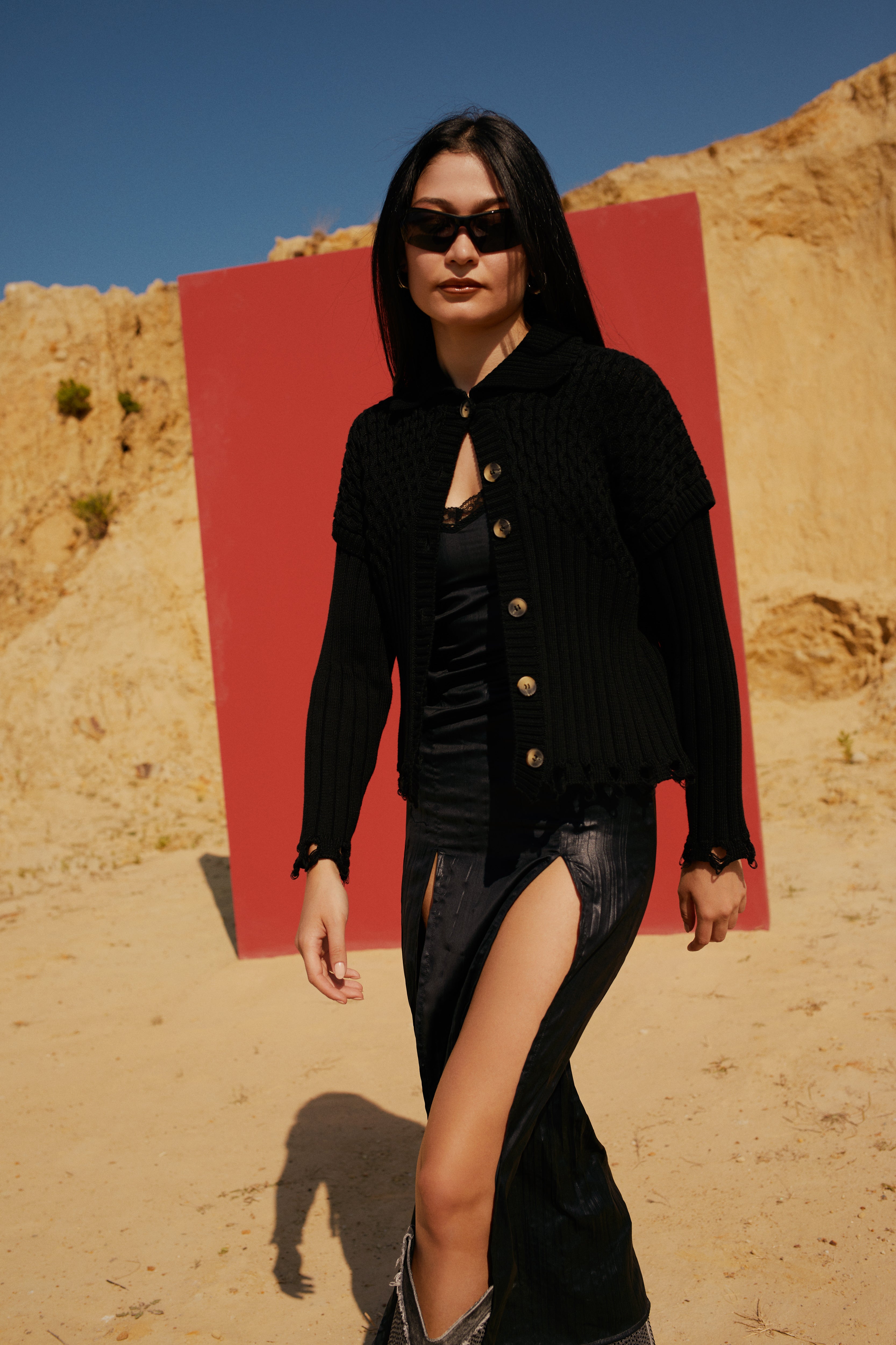 YOUR *ITCH TAİLED KNIT TOP - JET BLACK