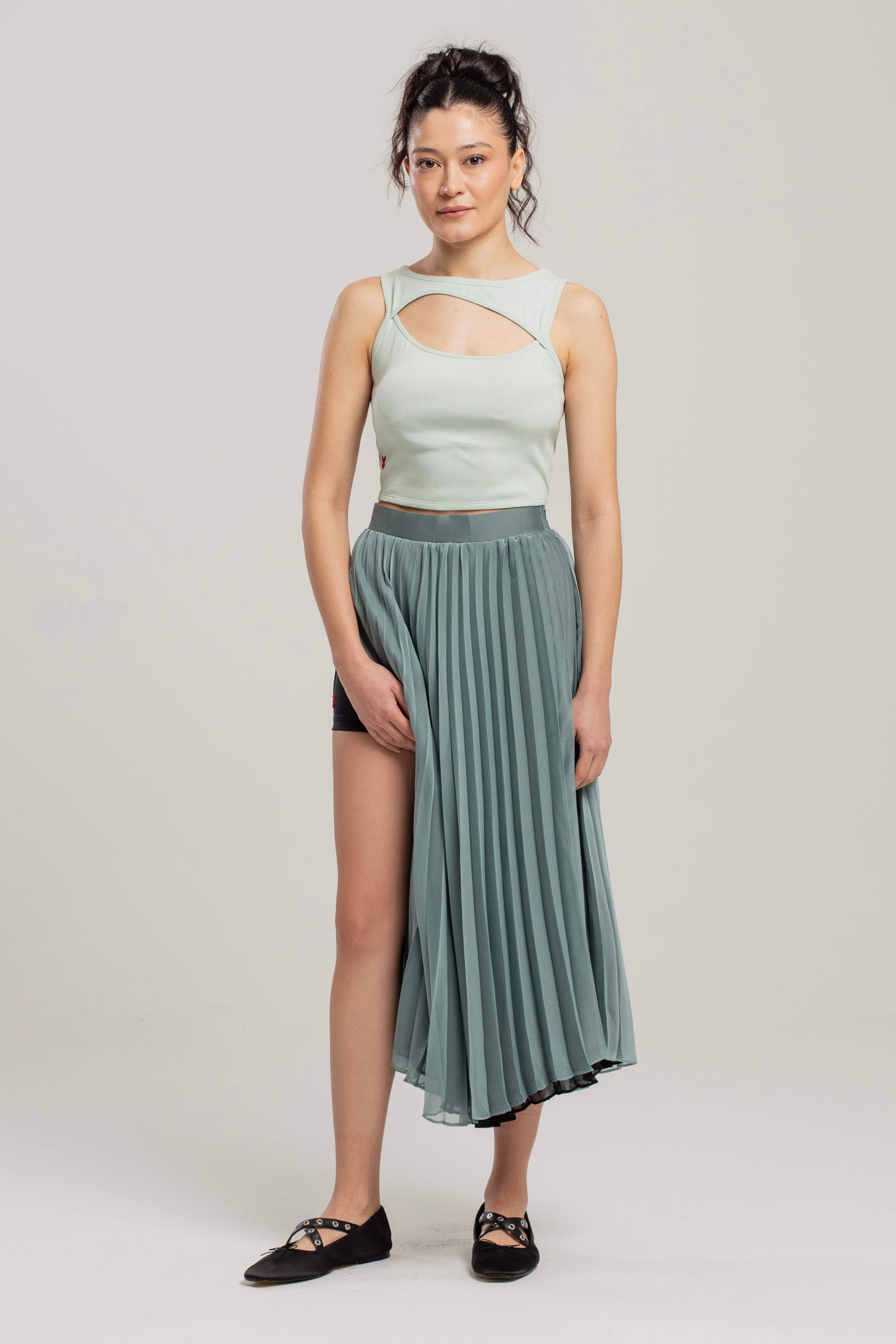 Linen Blend Free Heaven Pleated Mini Skirt - Fog