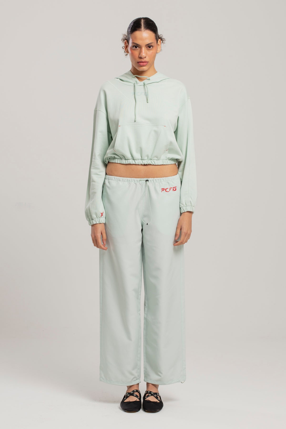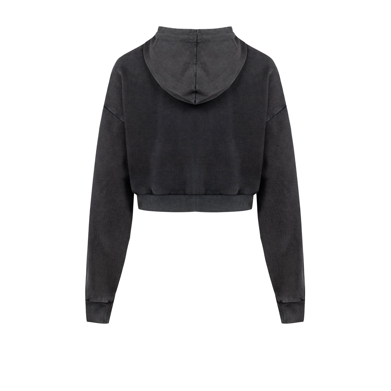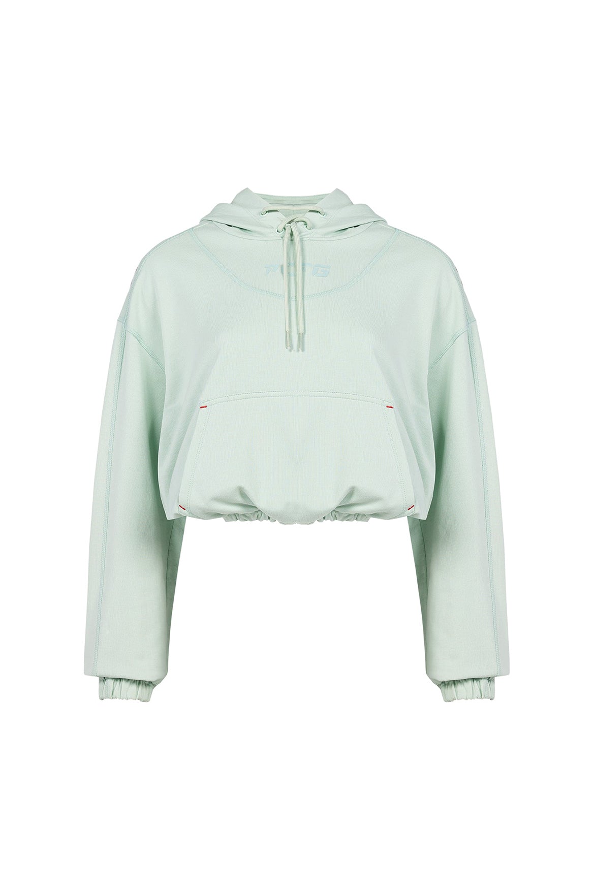 Cotton Acid Washed Crop Hoodie - Covert Green