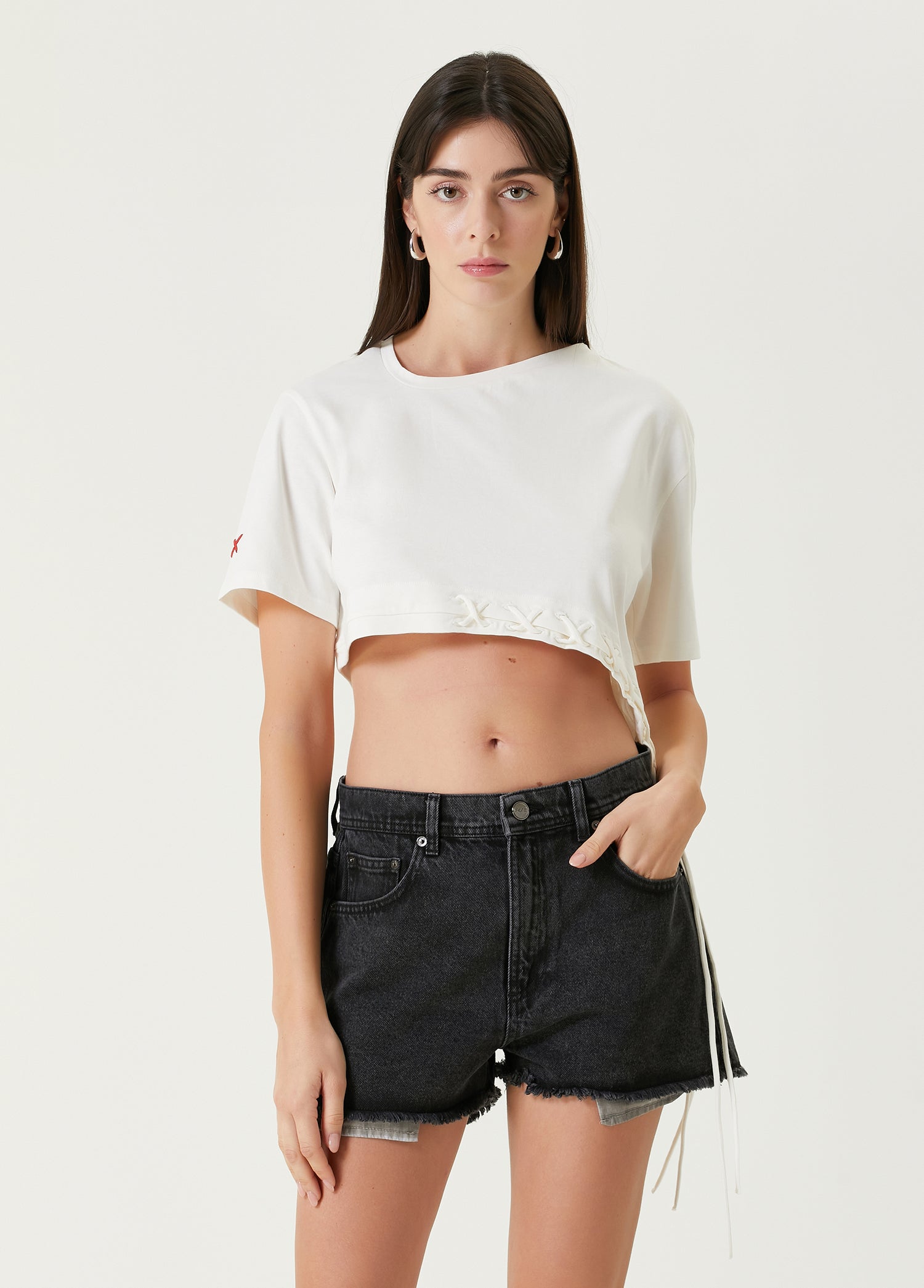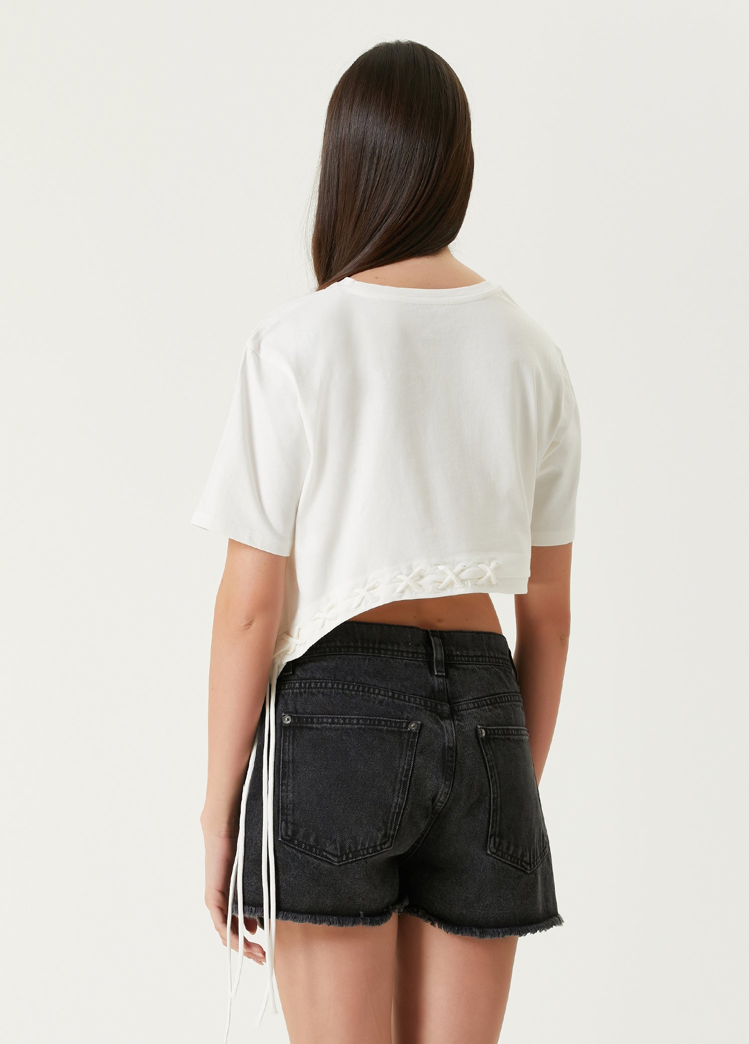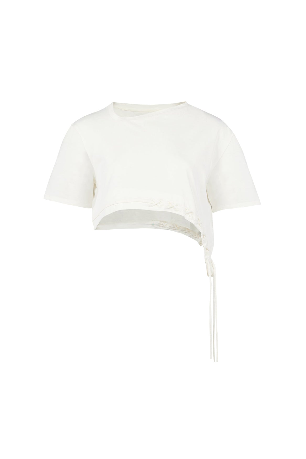 Pure Cotton Free Heaven Crop String Tshirt - Blanc De Blanc
