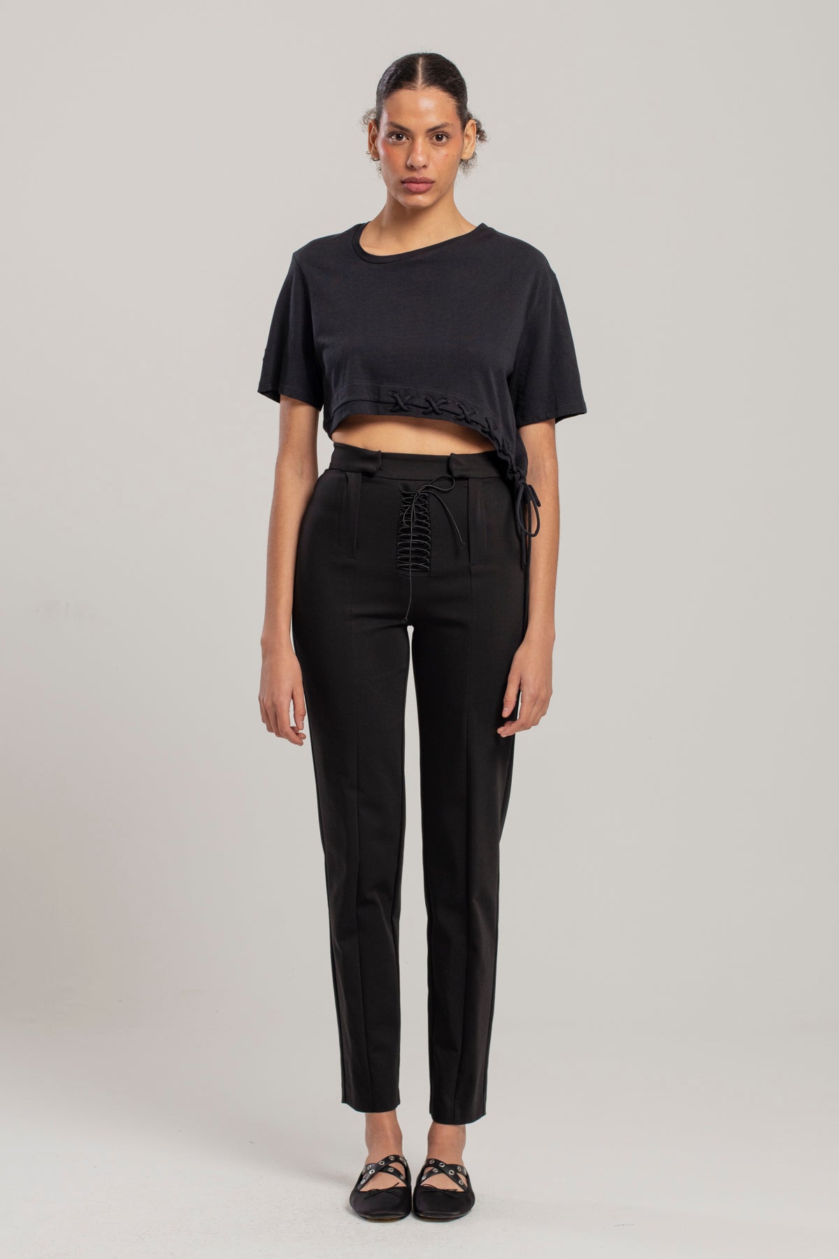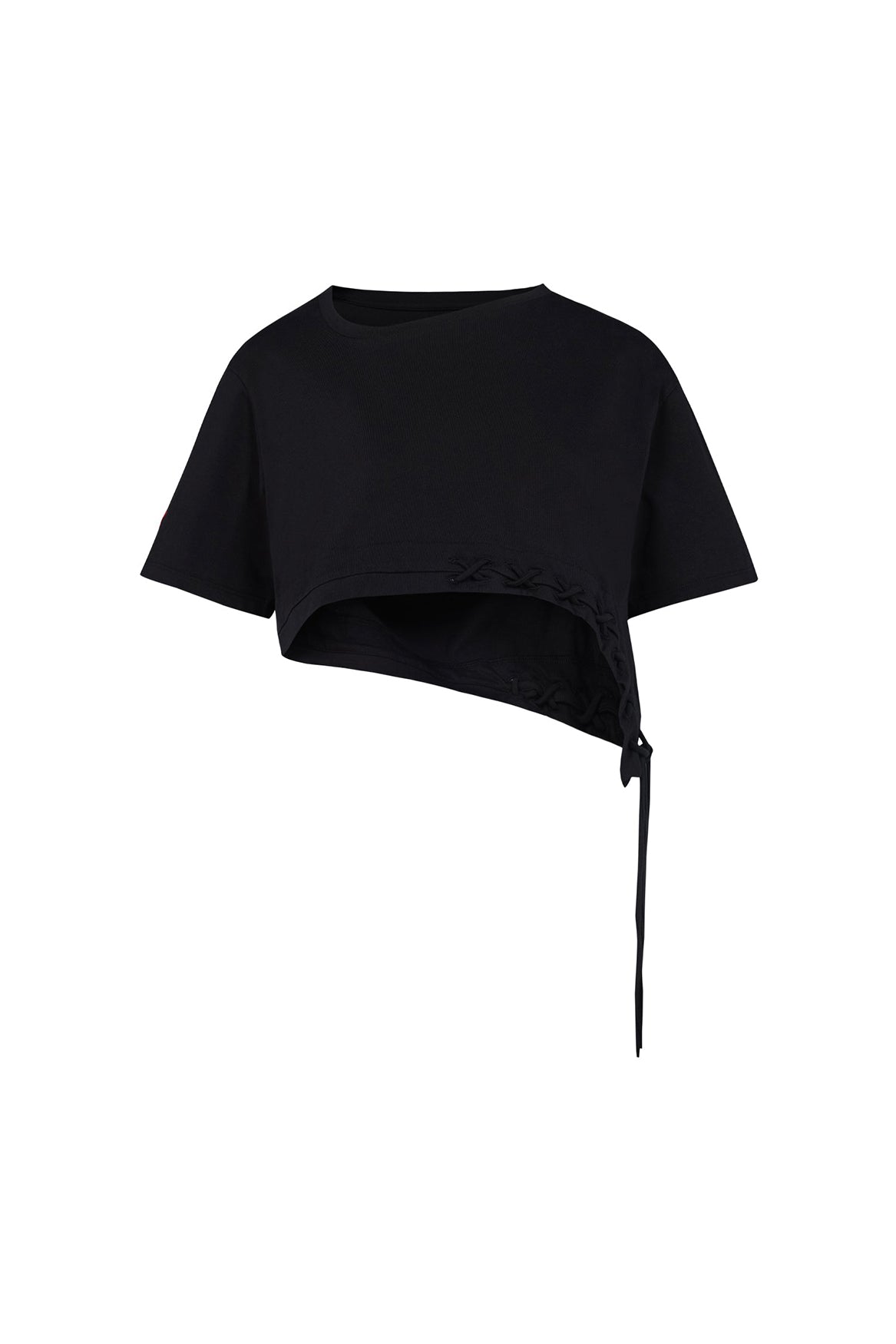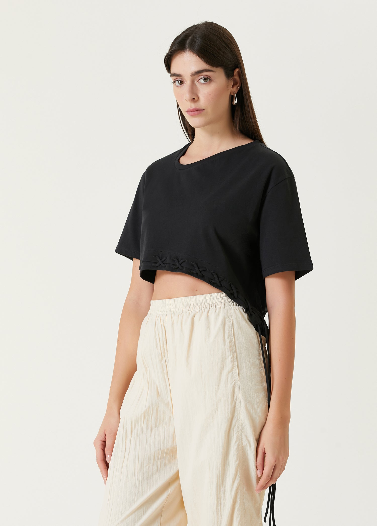 Pure Cotton Free Heaven Crop String Tshirt - Jet Black