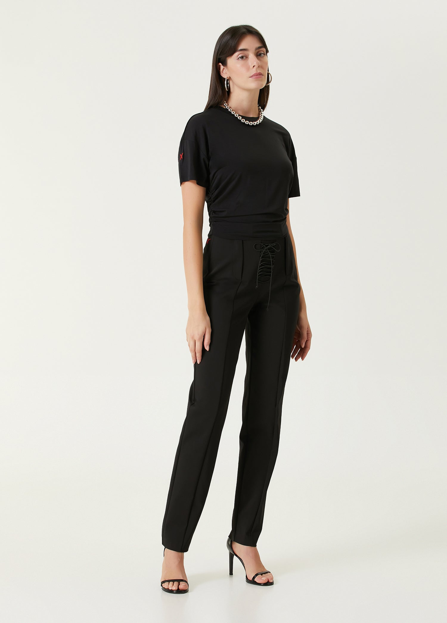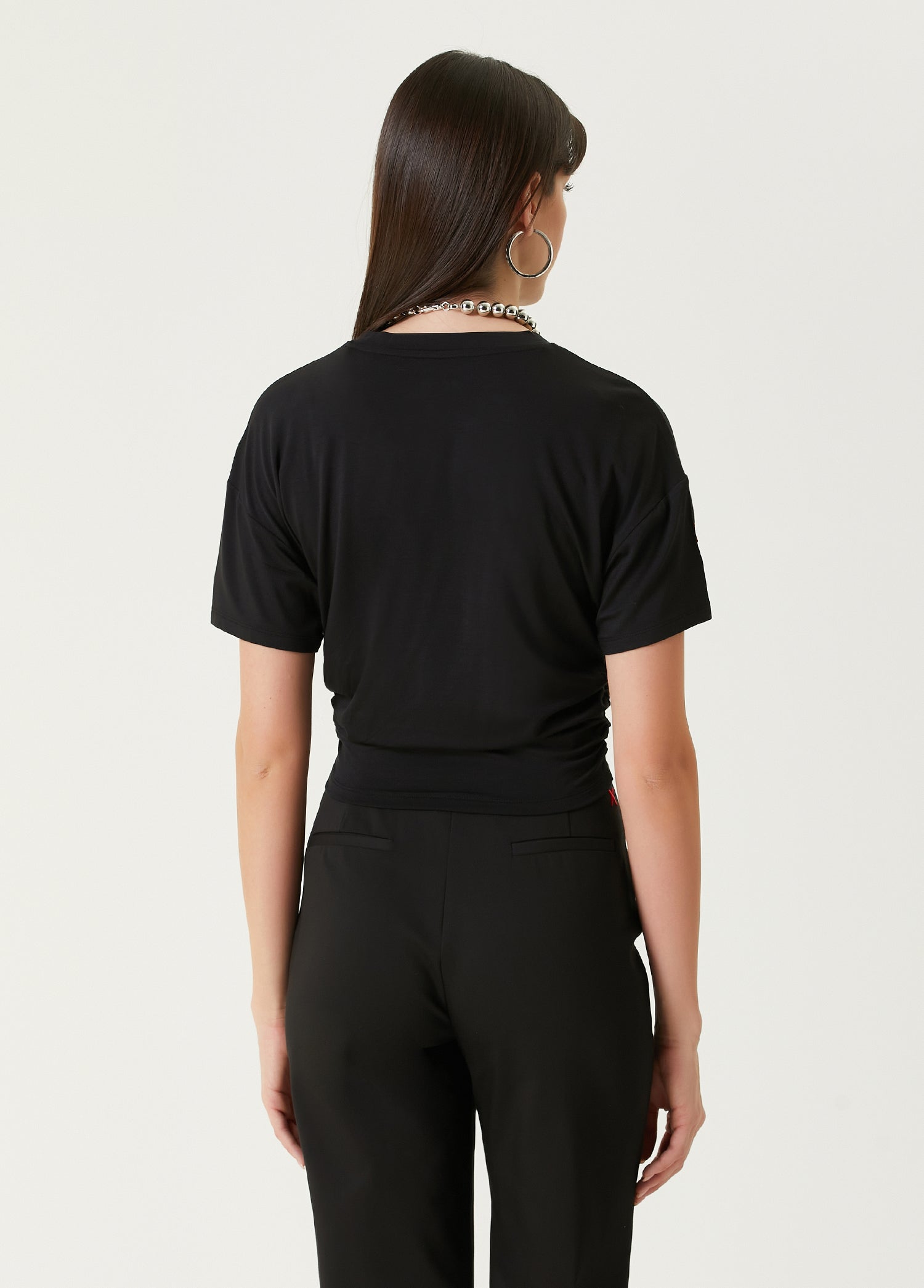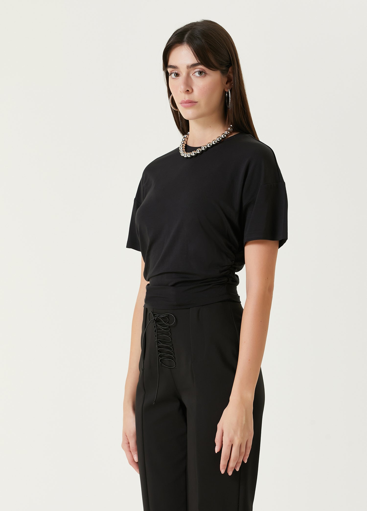 Pure Cotton Free Heaven Crop String Tshirt - Jet Black