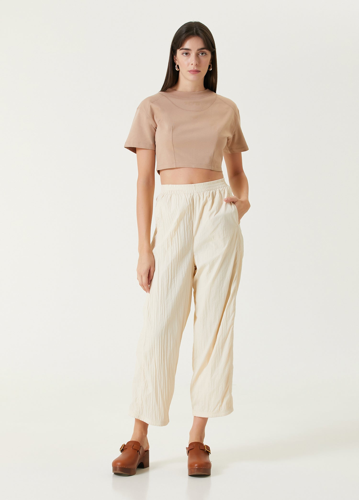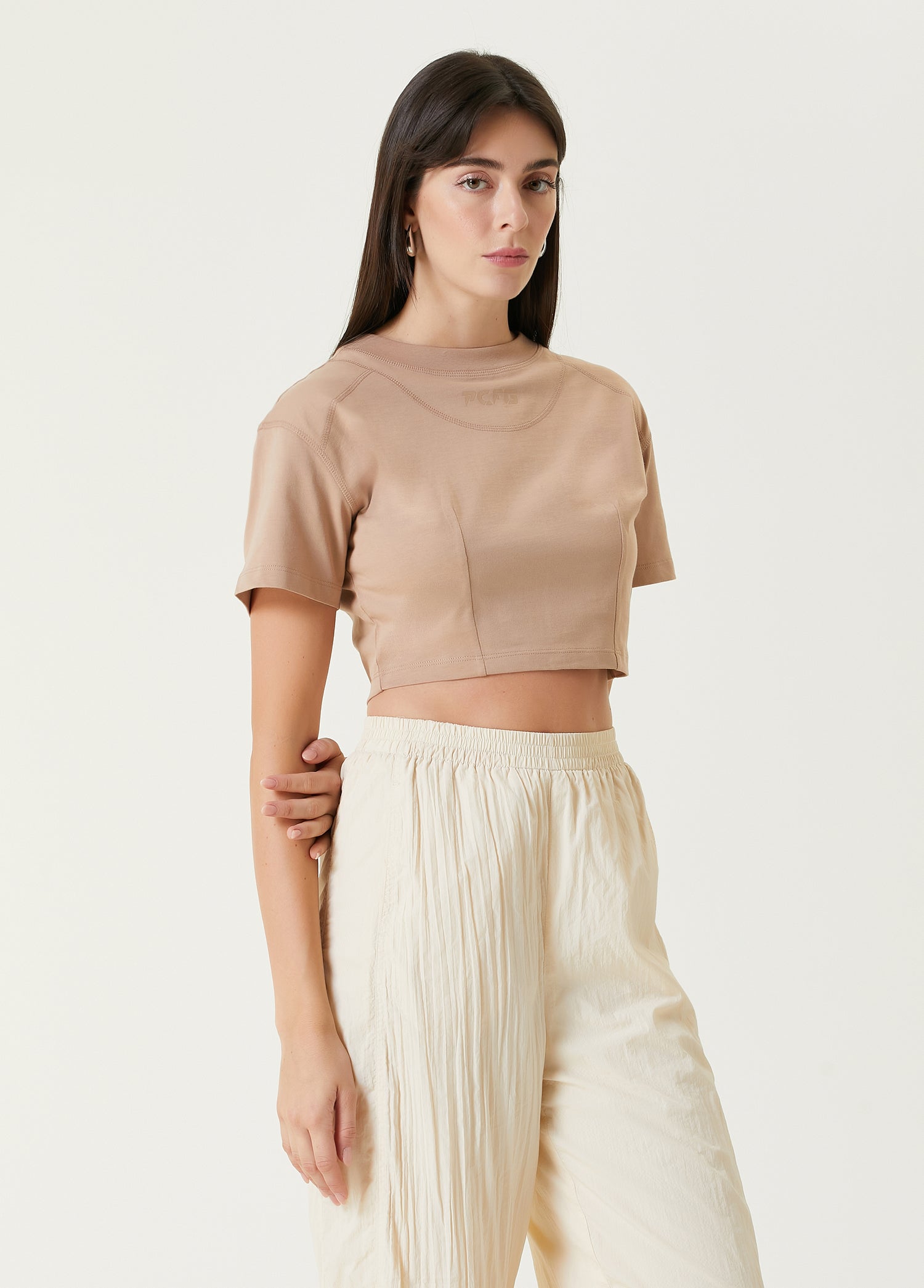 Pure Cotton Free Heaven Crop Tshirt - Warm Taupe