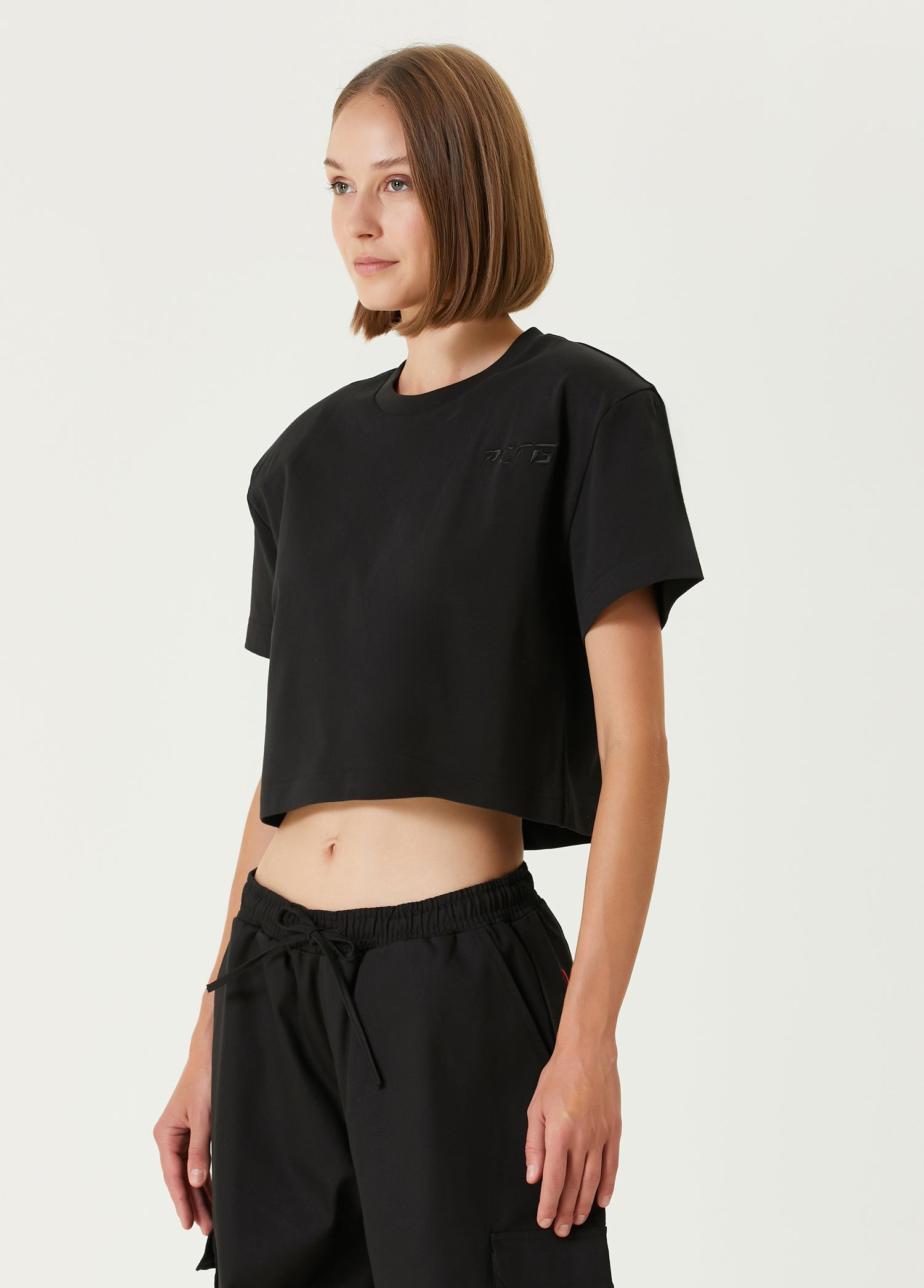 Pure Cotton Free Heaven Crop Tshirt - Jet Black