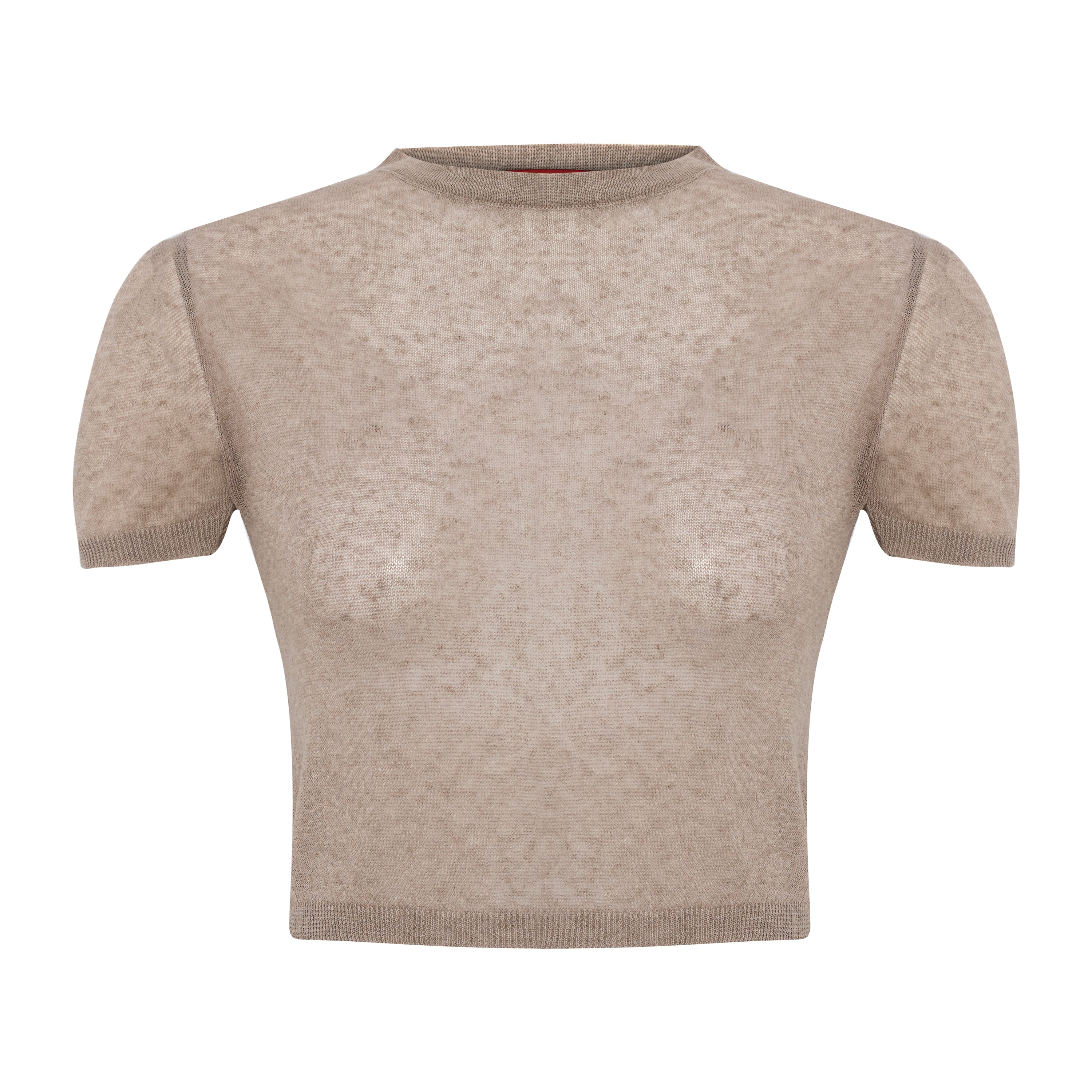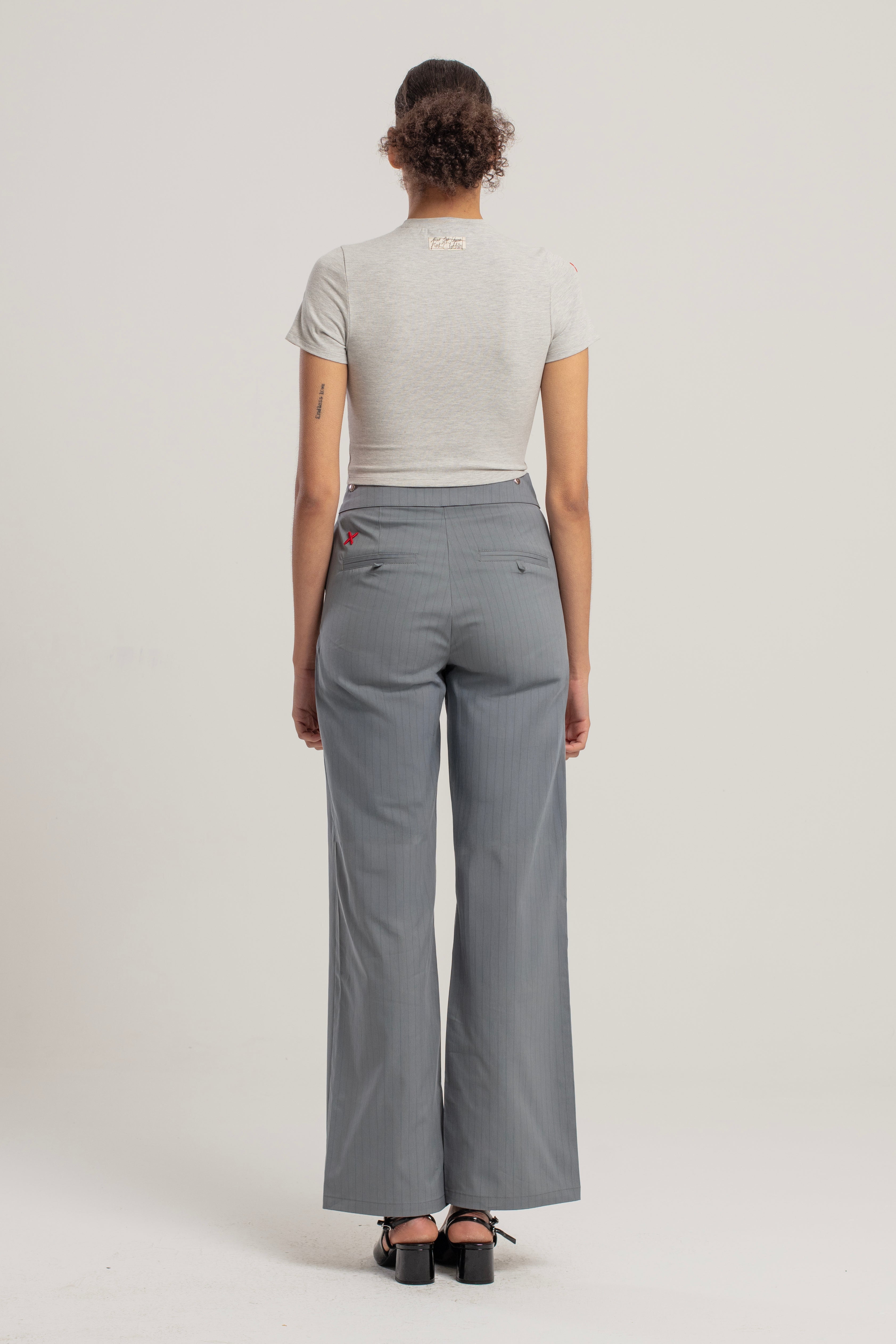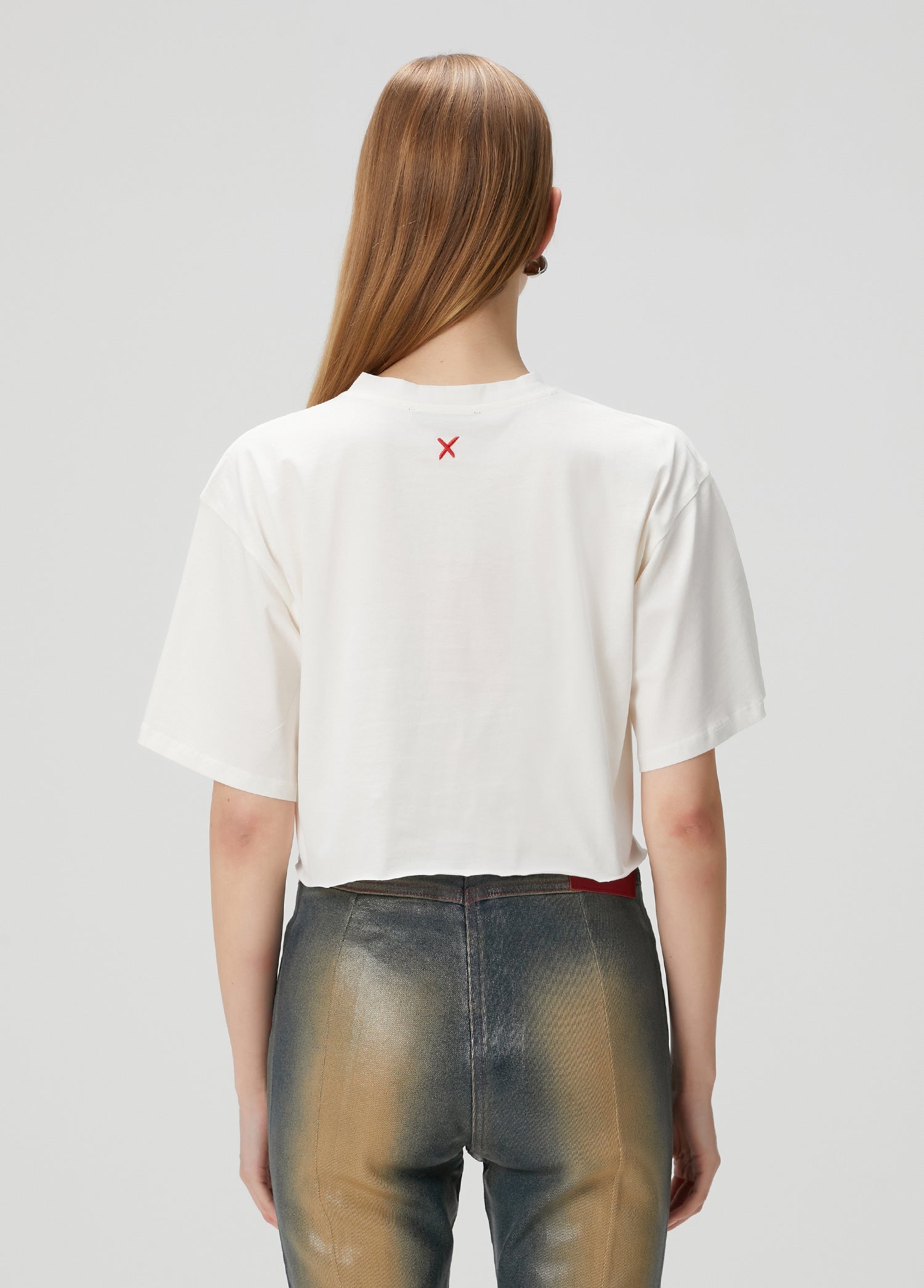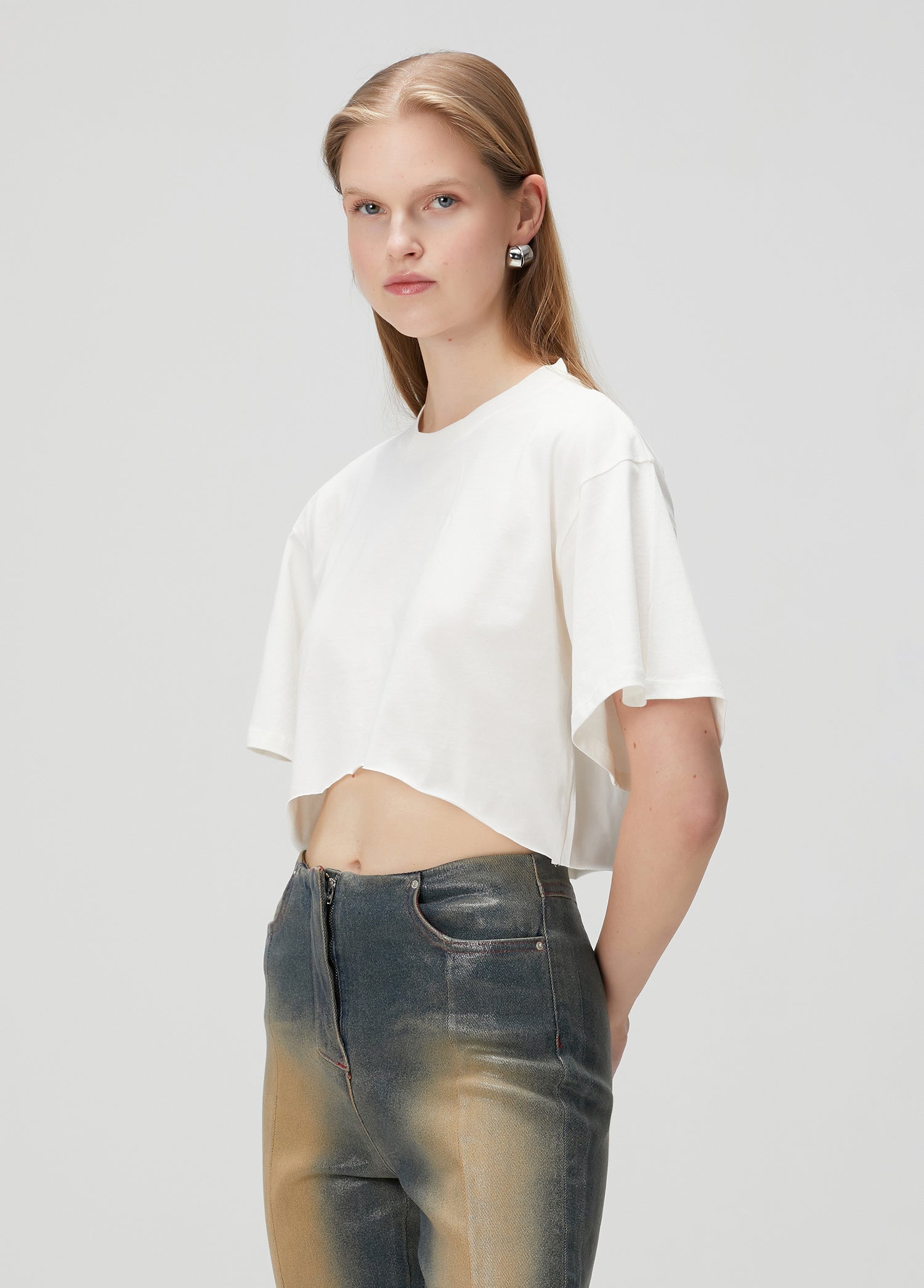COTTON SLIM FIT CROP TEE - LIGHT GREY