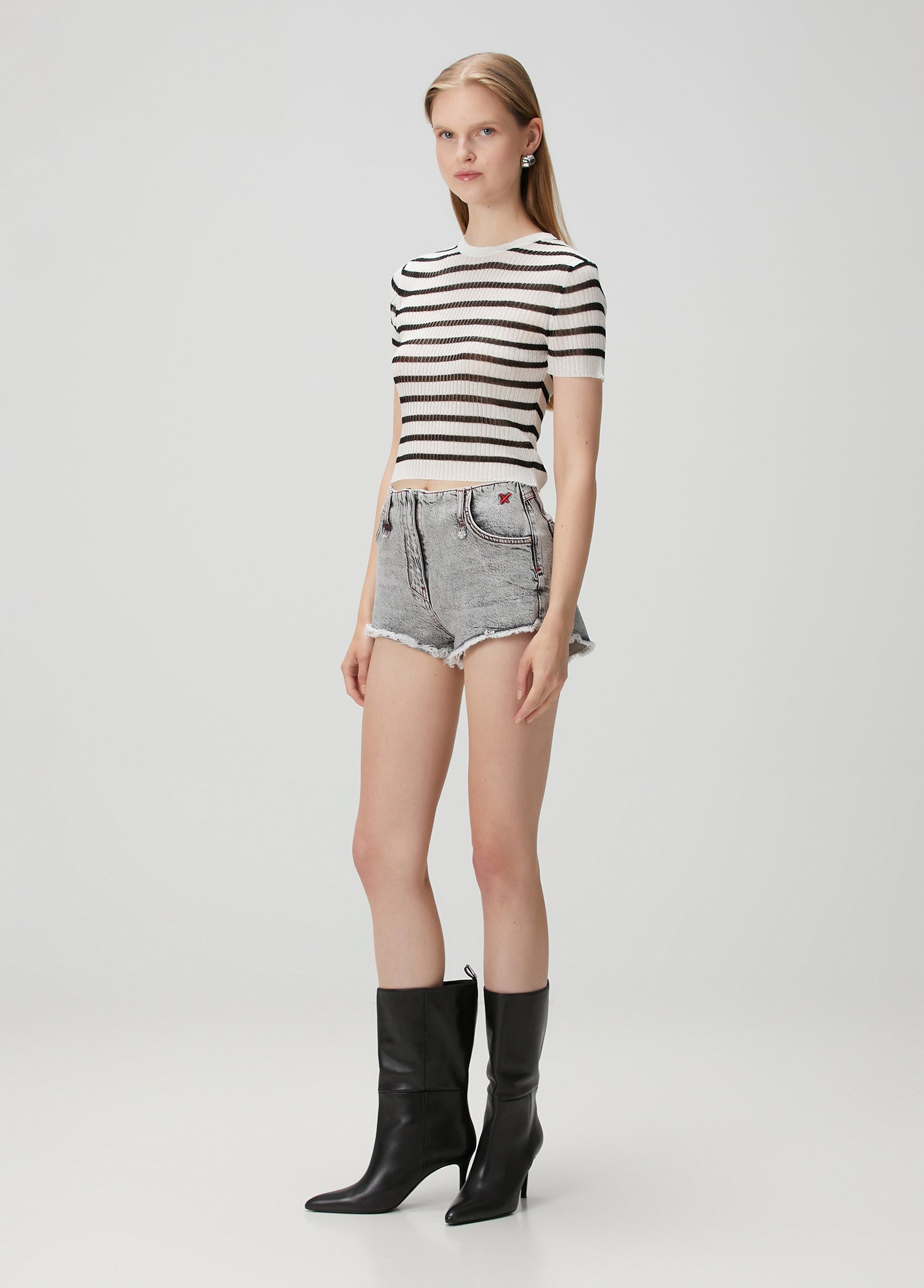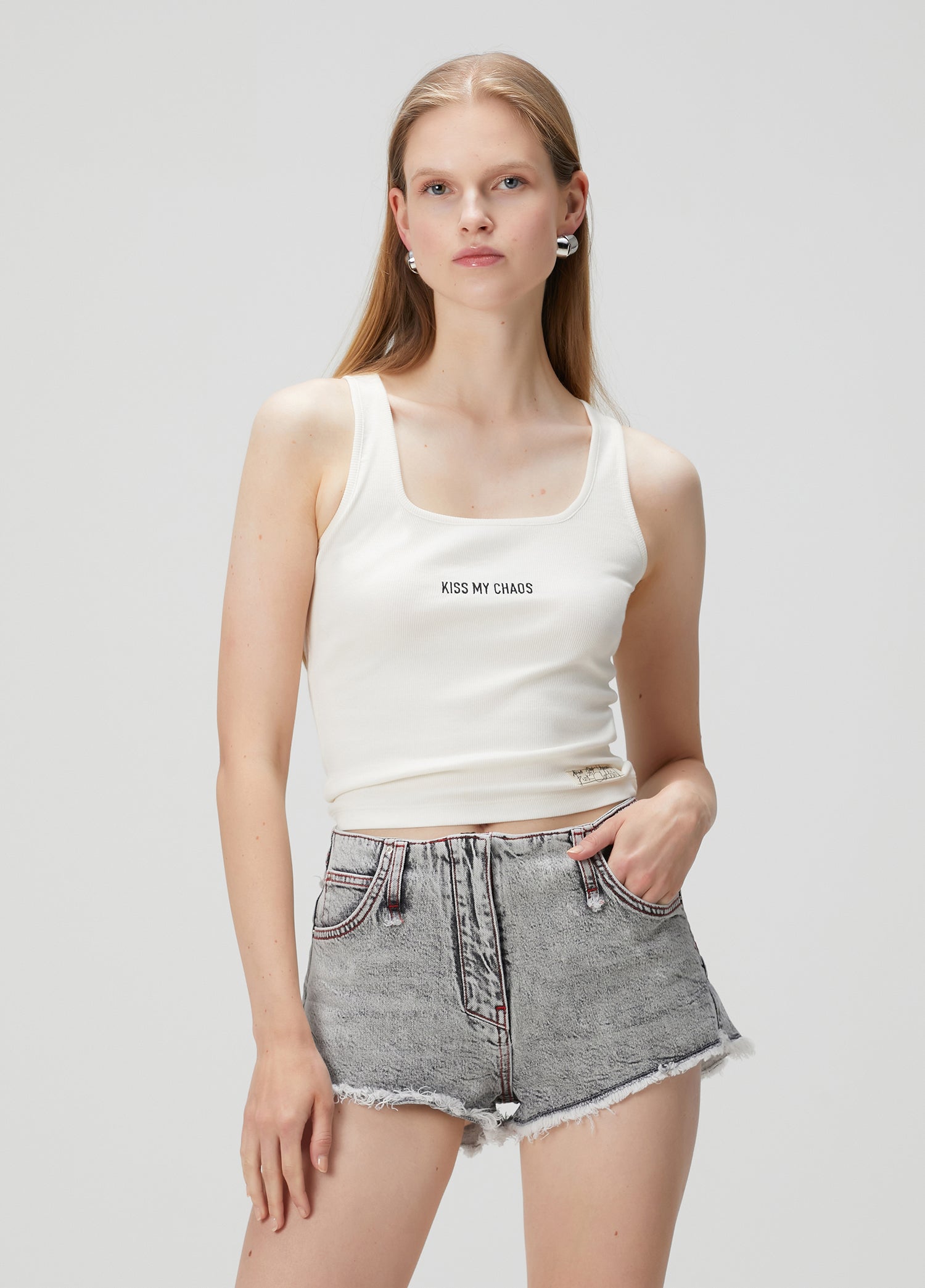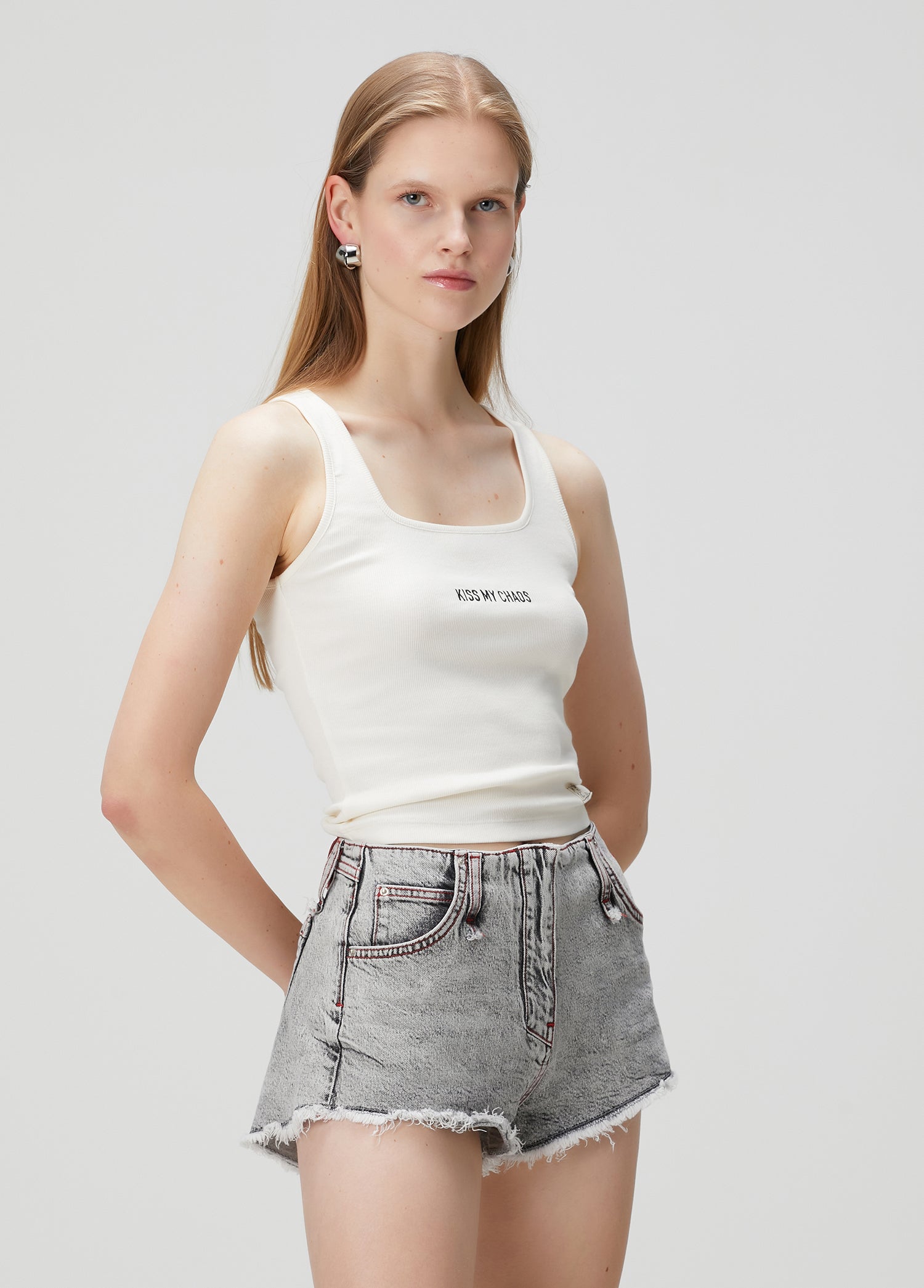 COTTON SLIM FIT CROP TEE - LIGHT GREY