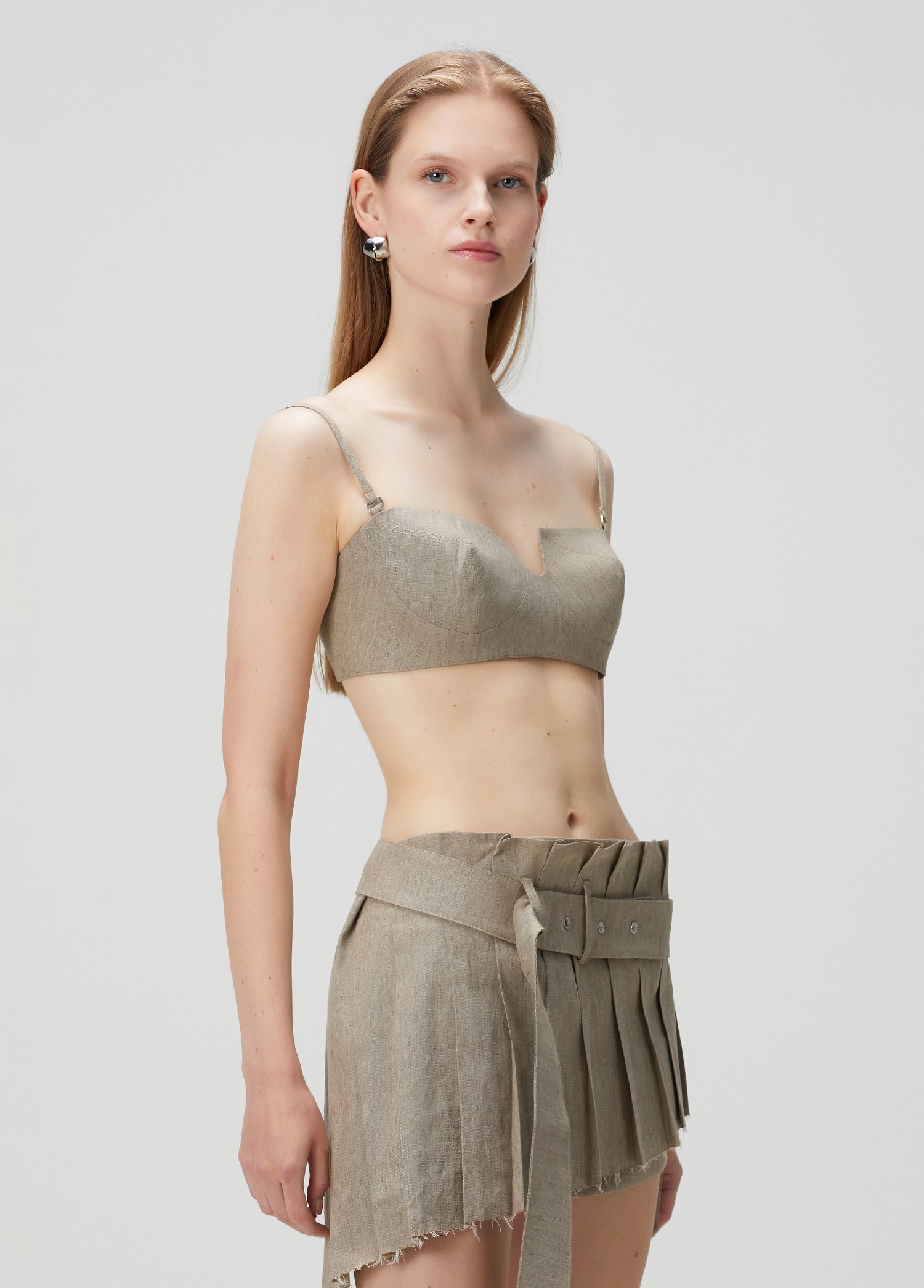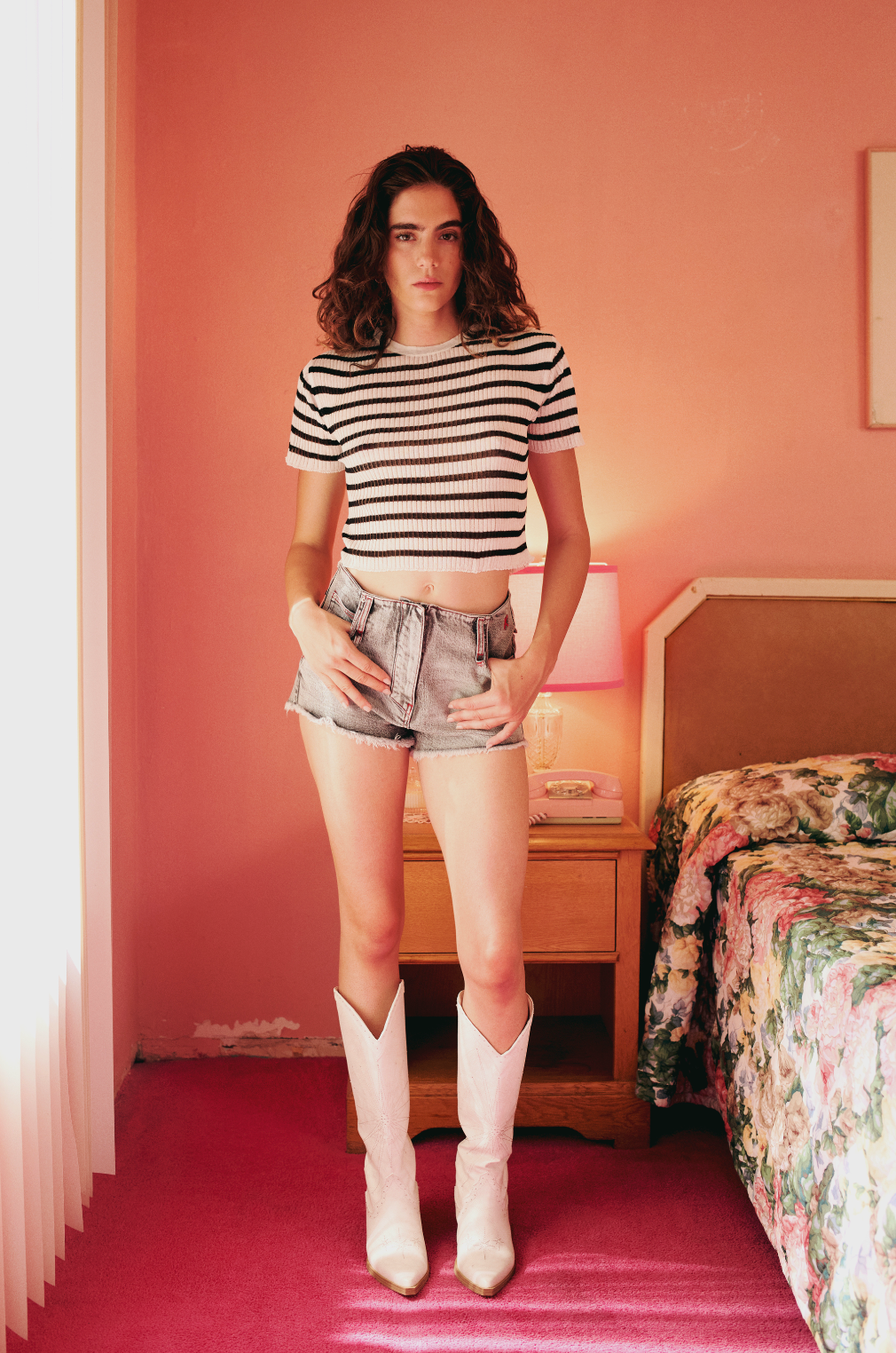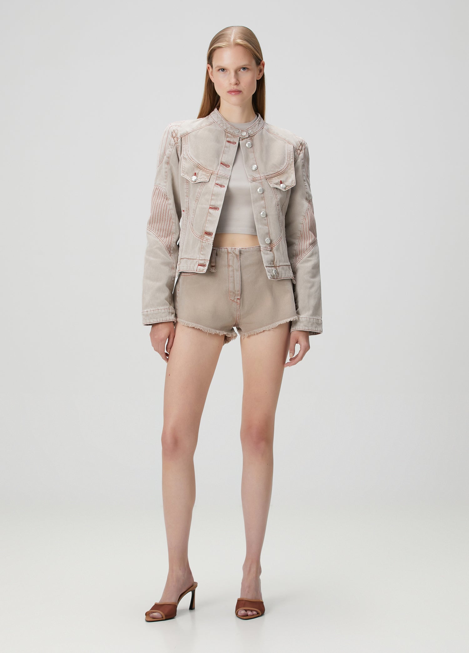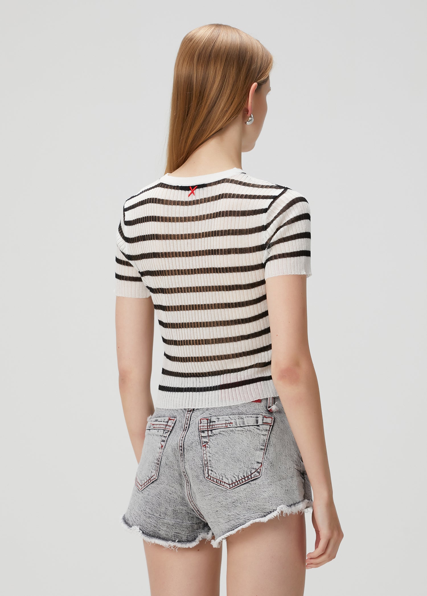 COTTON SLIM FIT CROP TEE - LIGHT GREY