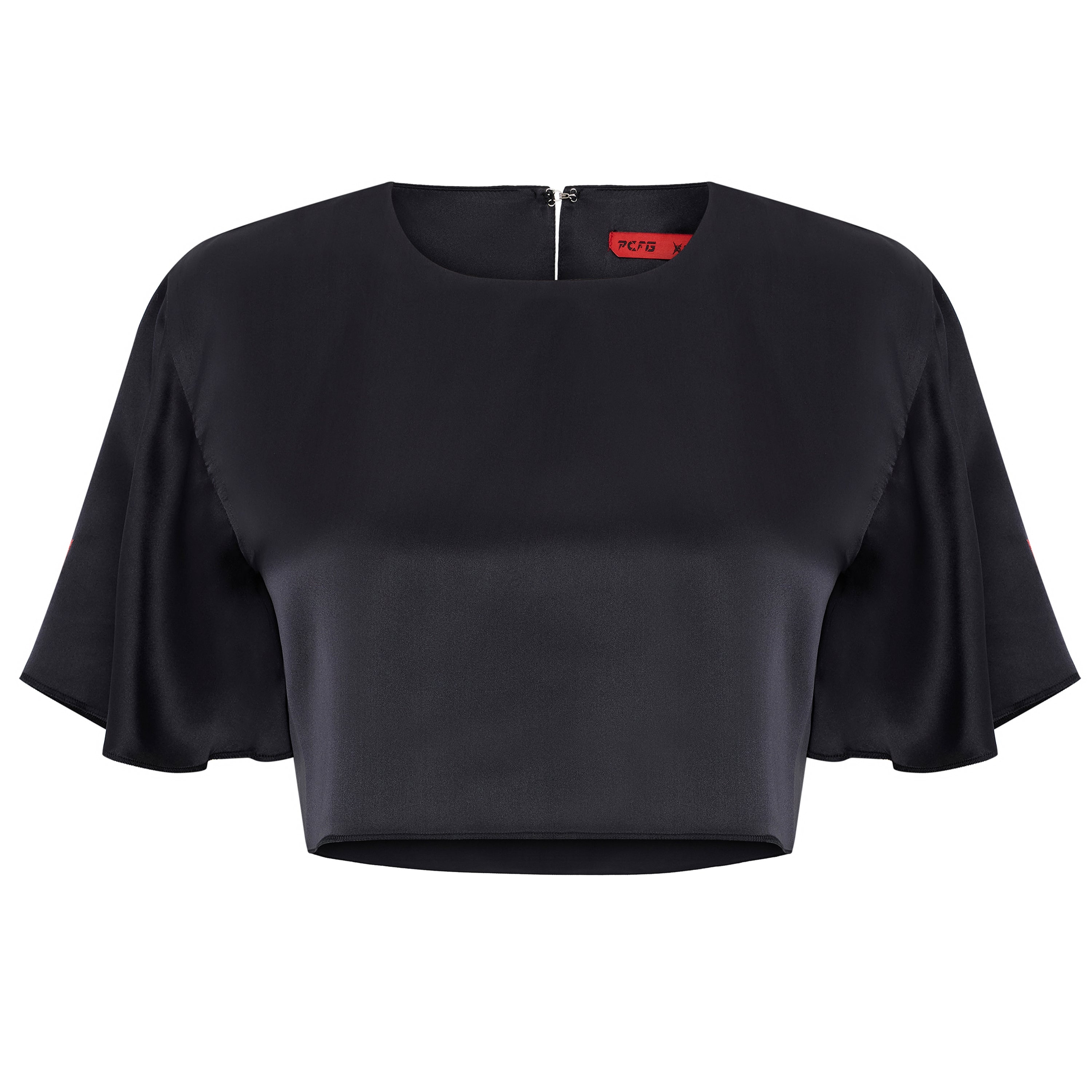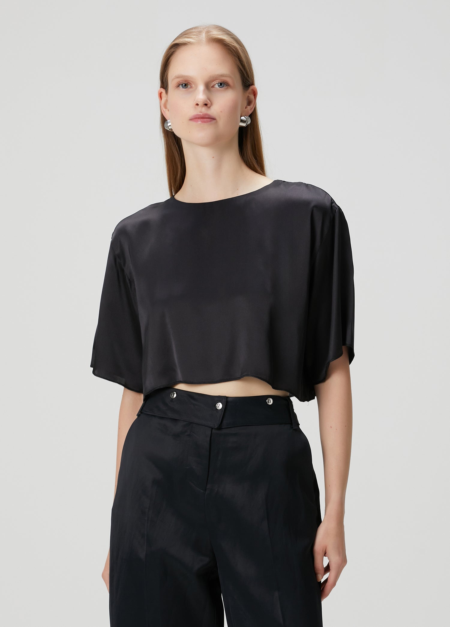 Pure Silk Oversized Silk Crop Top - Jet Black