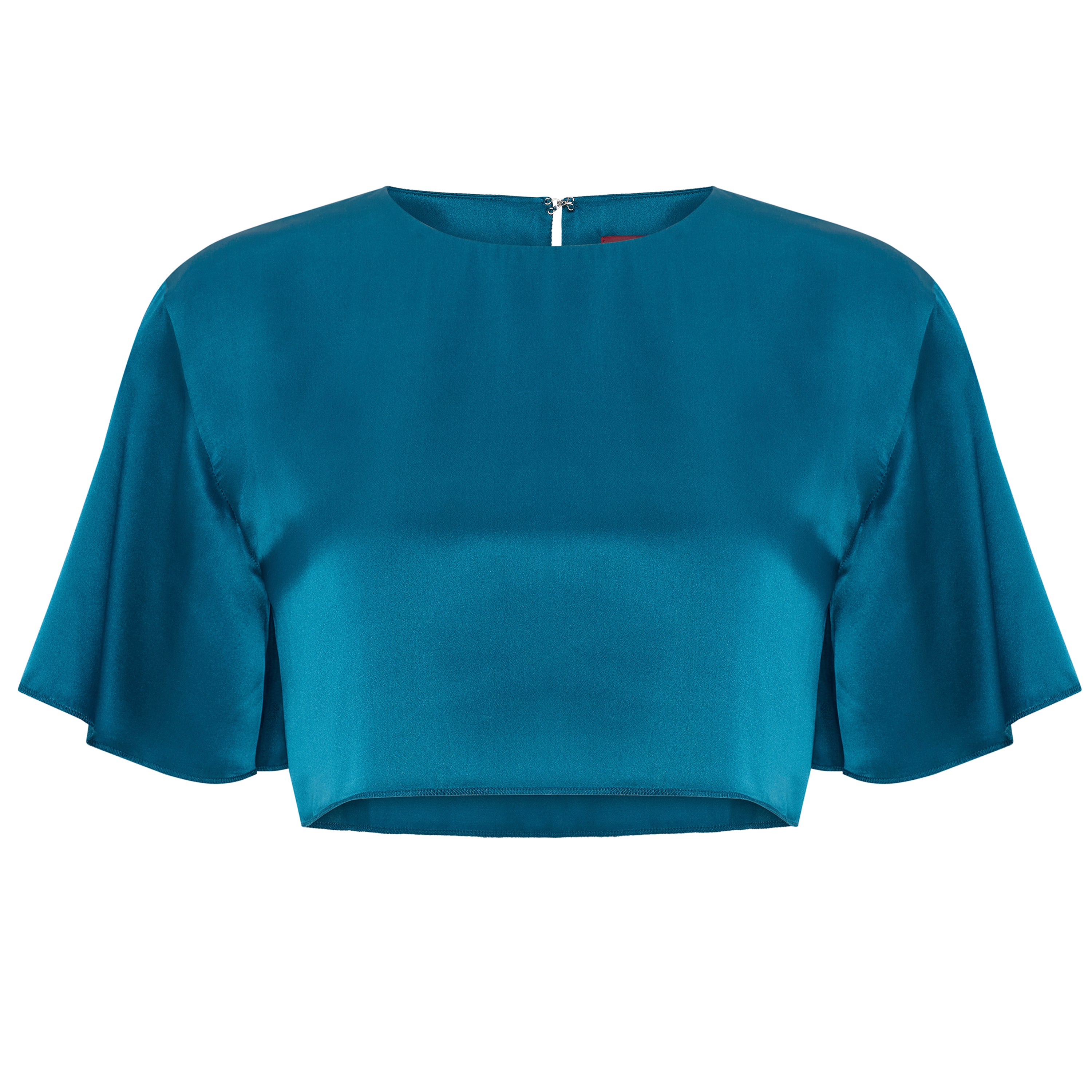 Pure Silk Oversized Silk Crop Top - Moroccan Blue