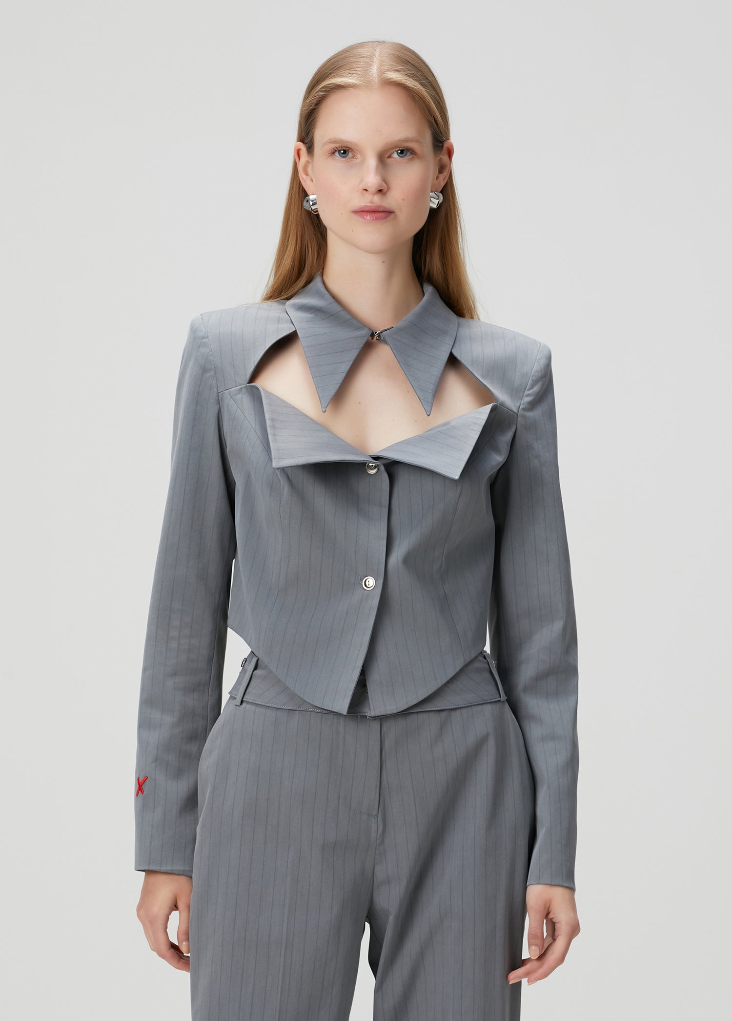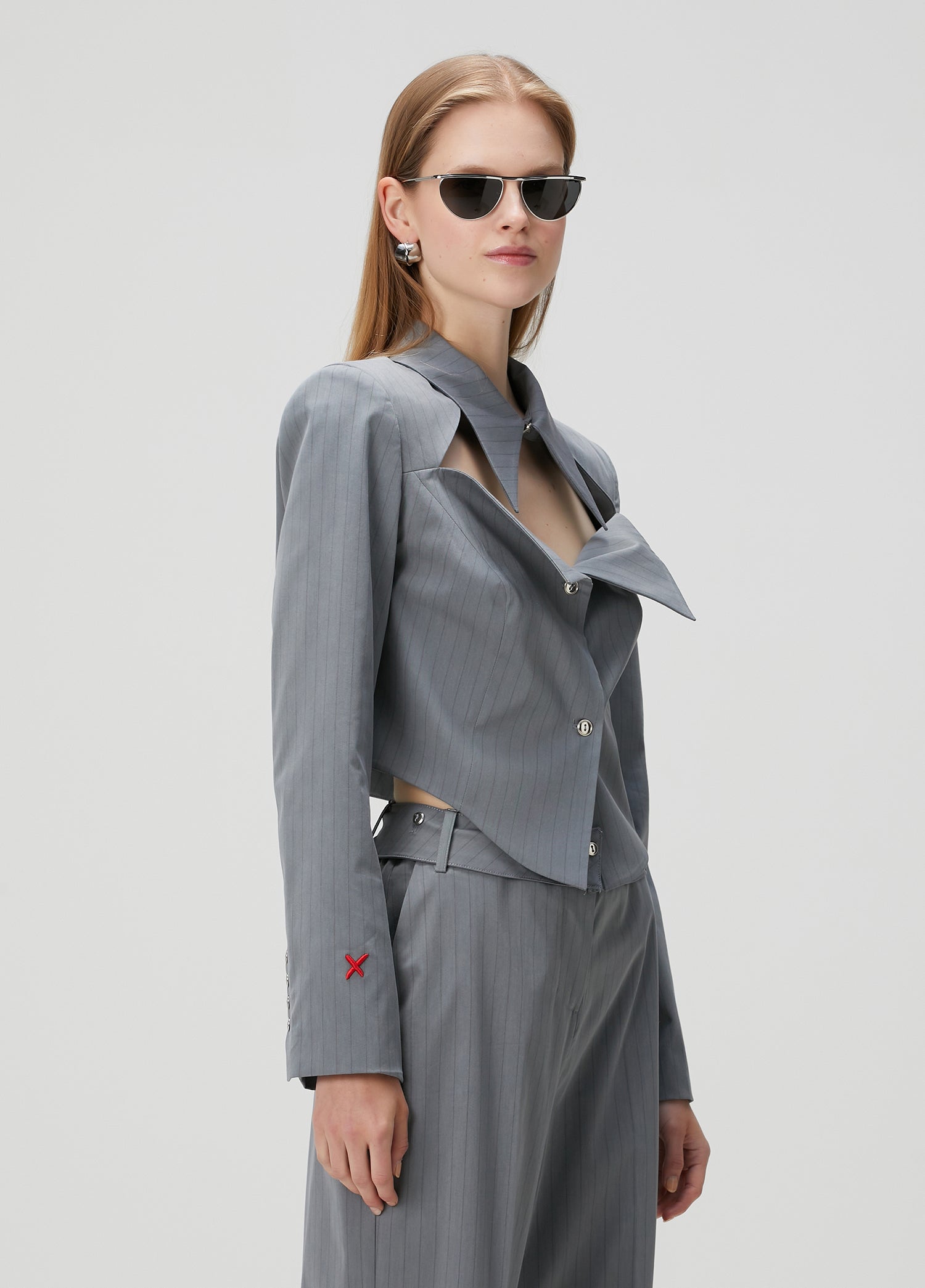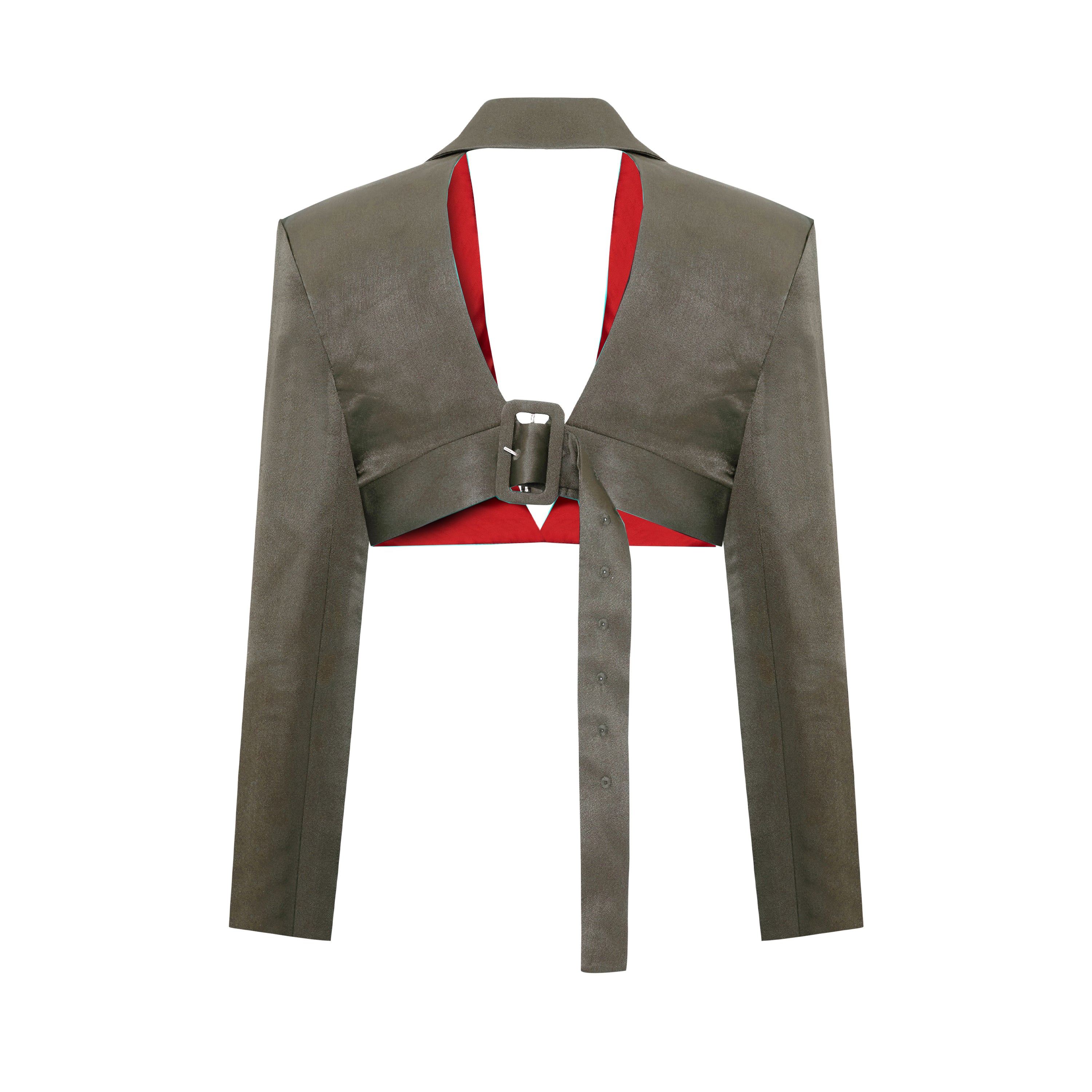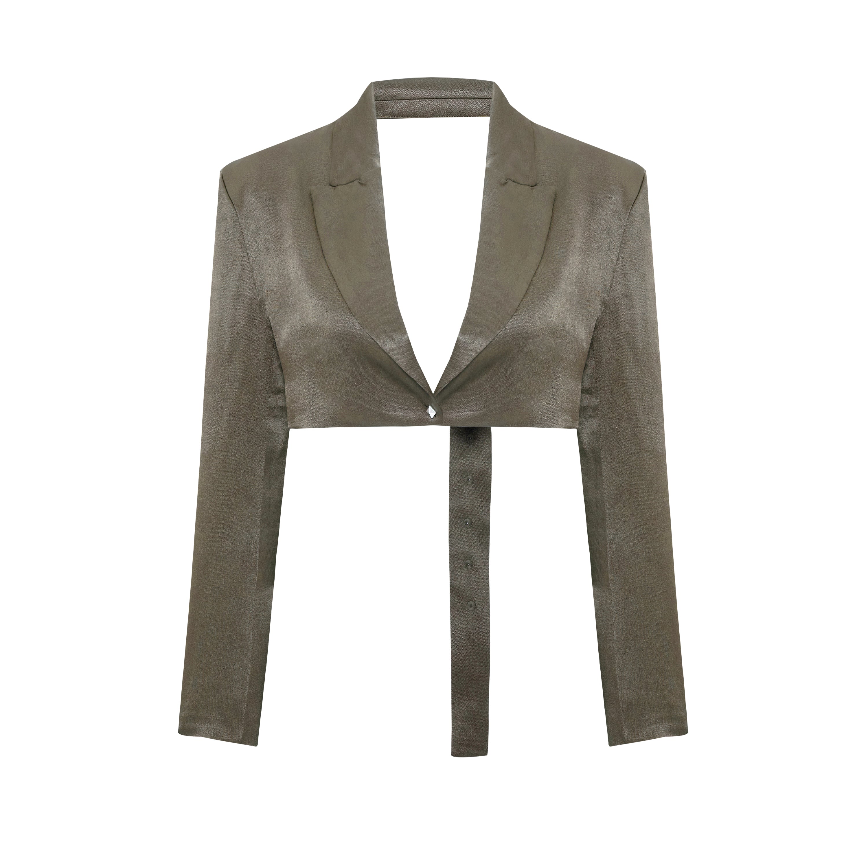 LINEN BLEND CROP SHINY WOVEN JACKET