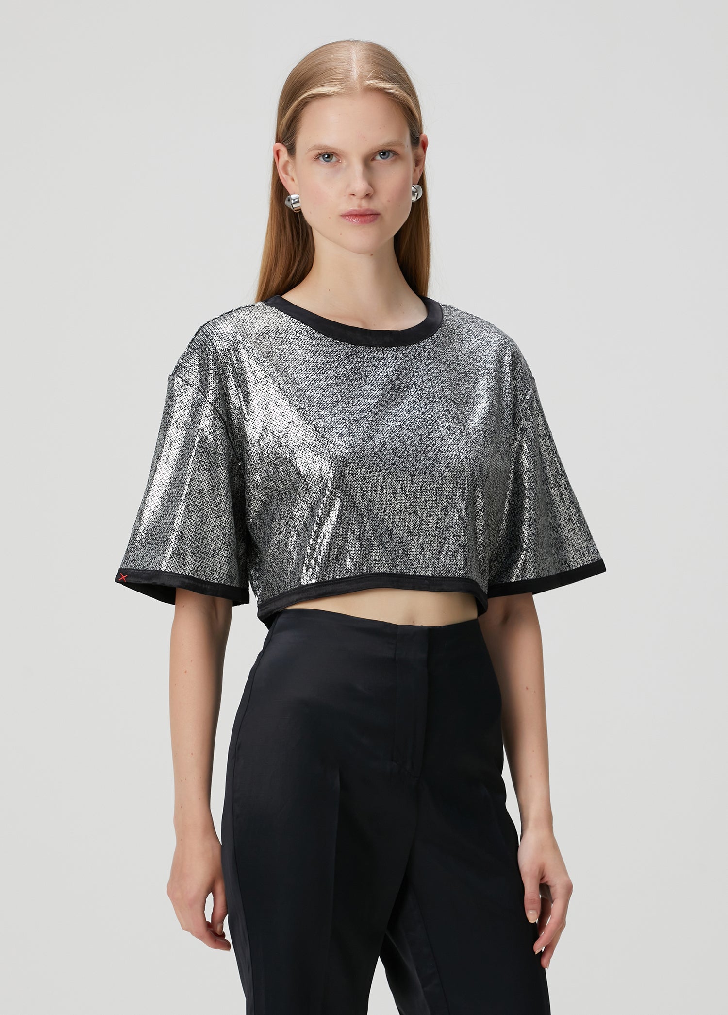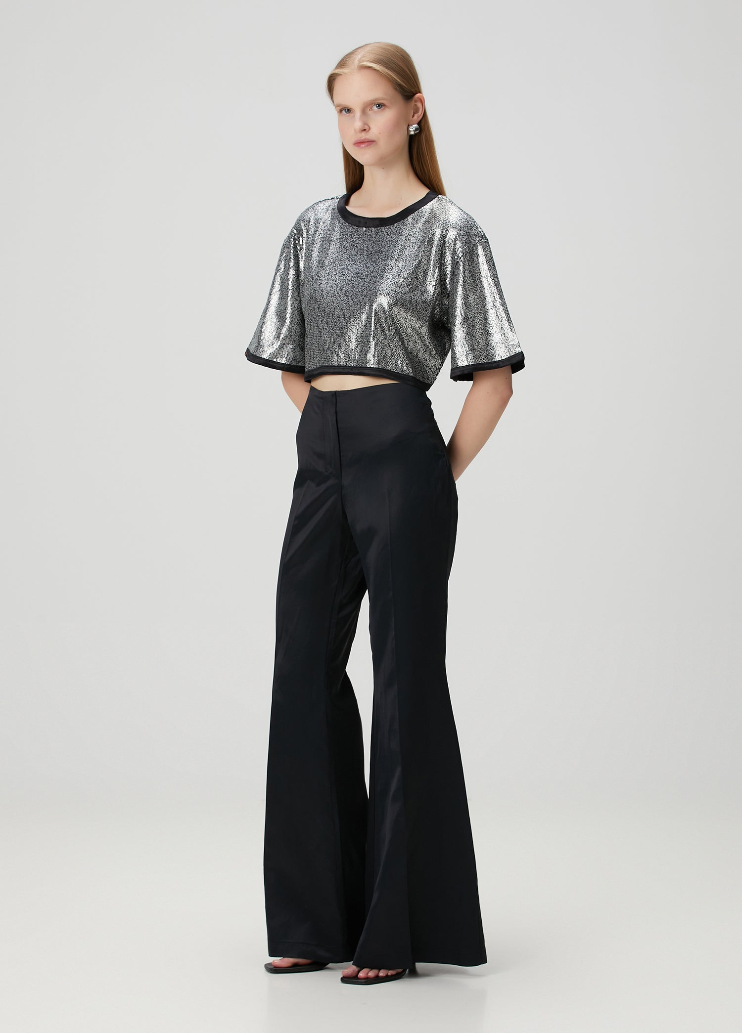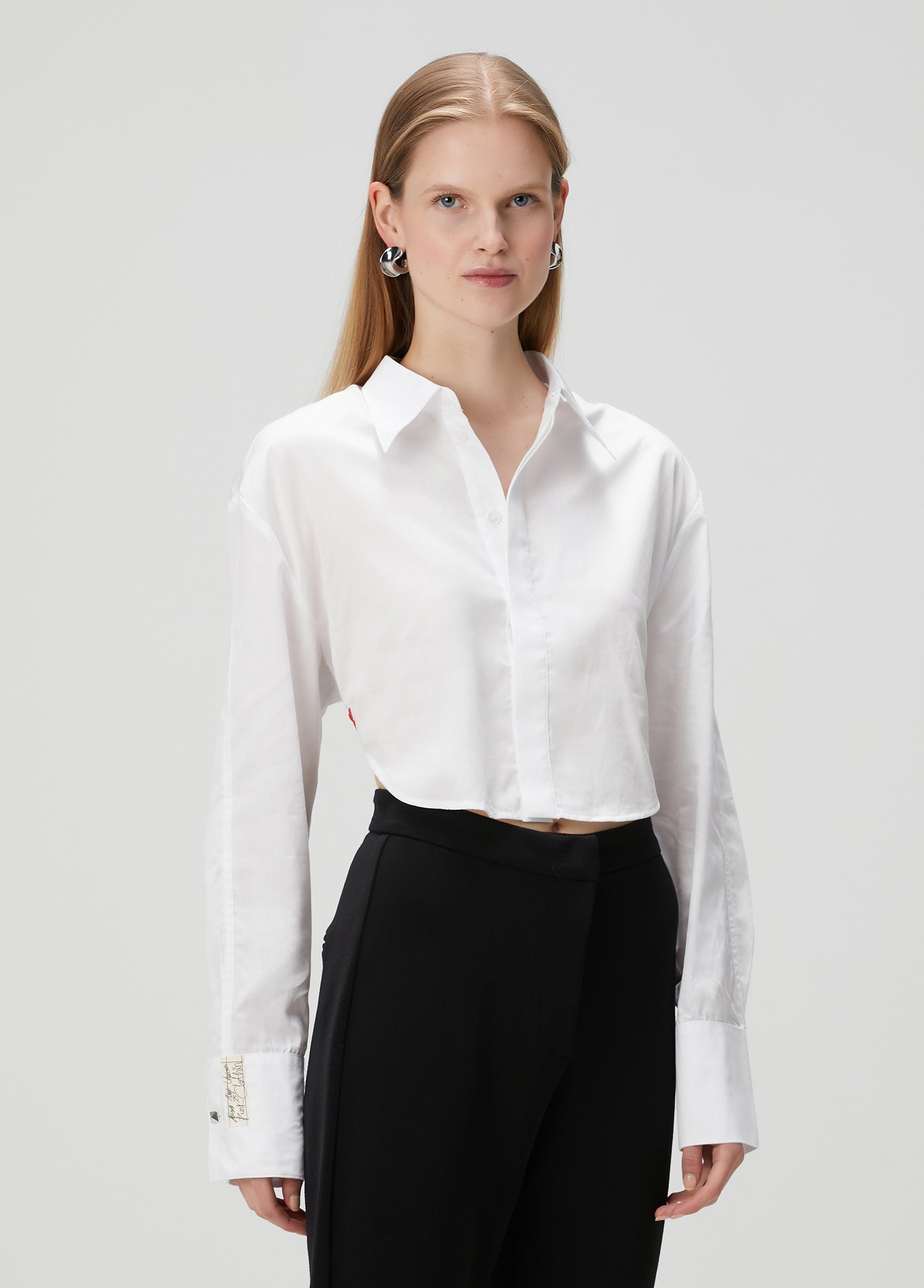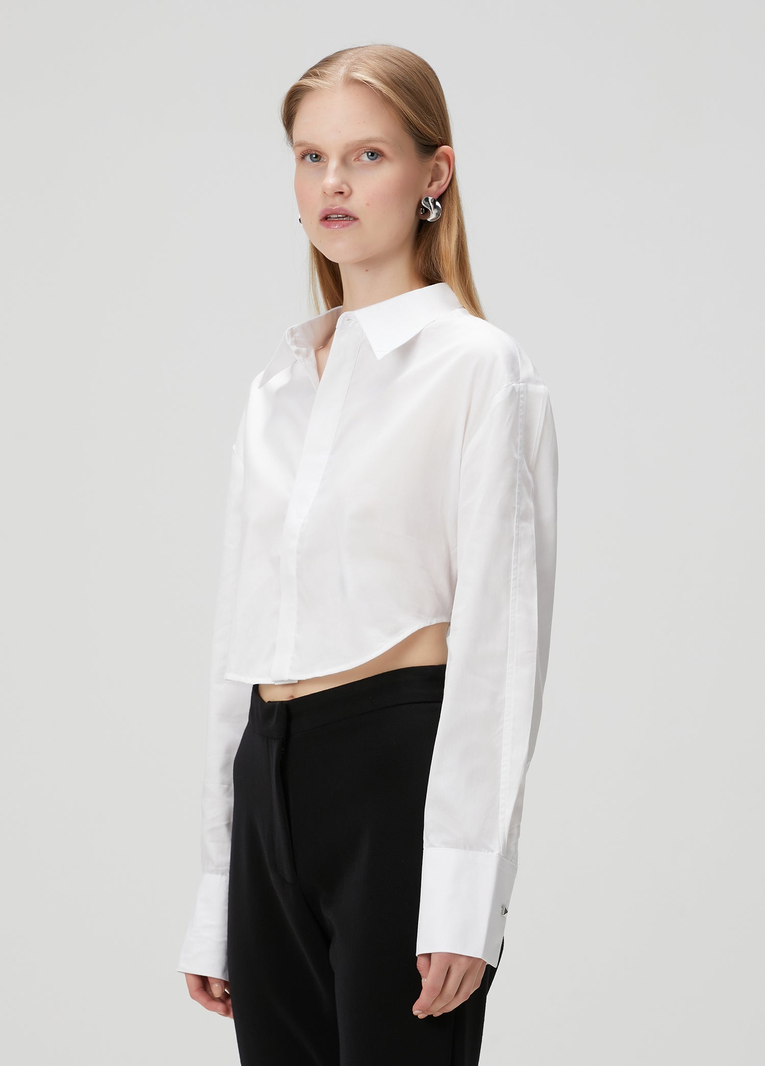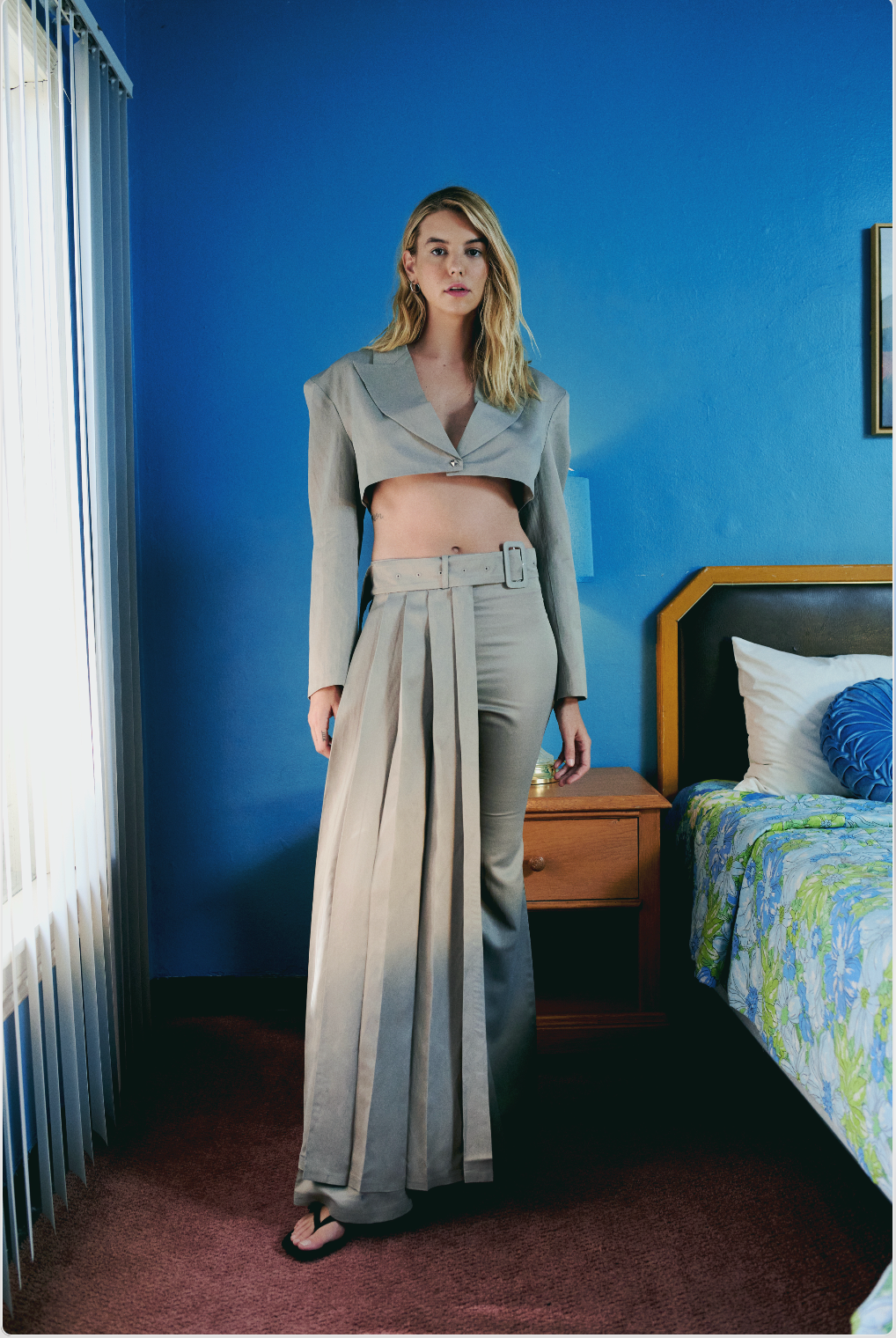 LINEN BLEND CROP SHINY WOVEN JACKET