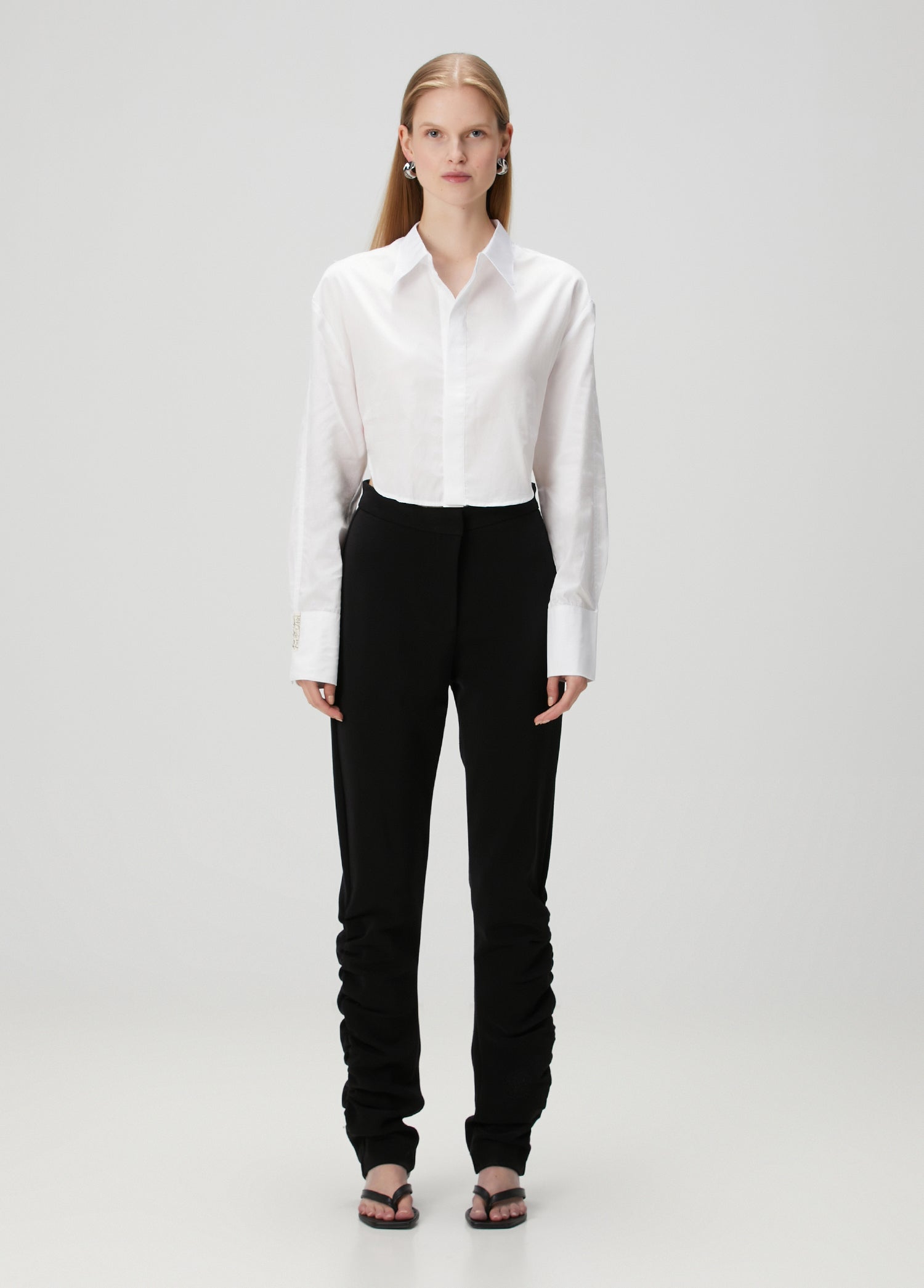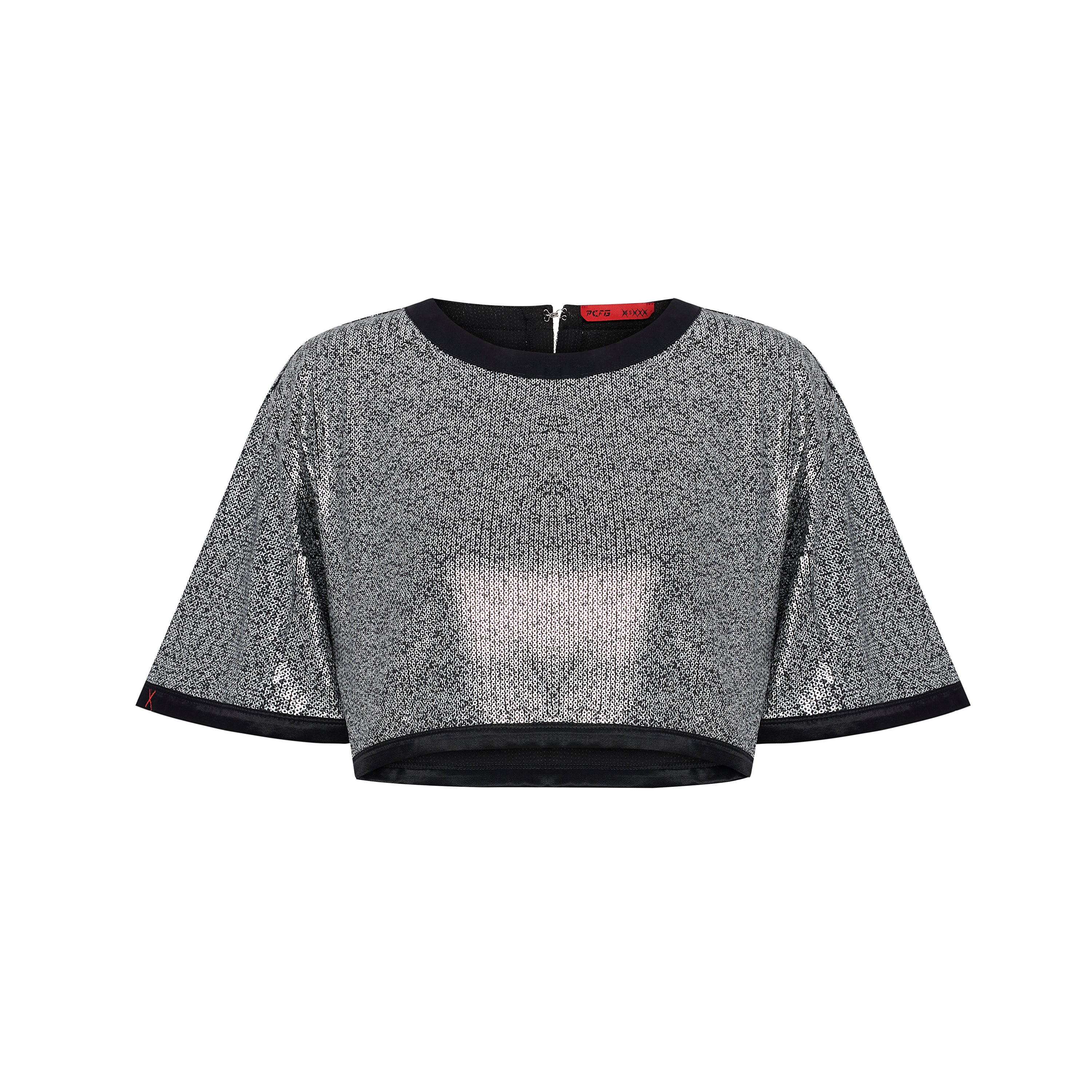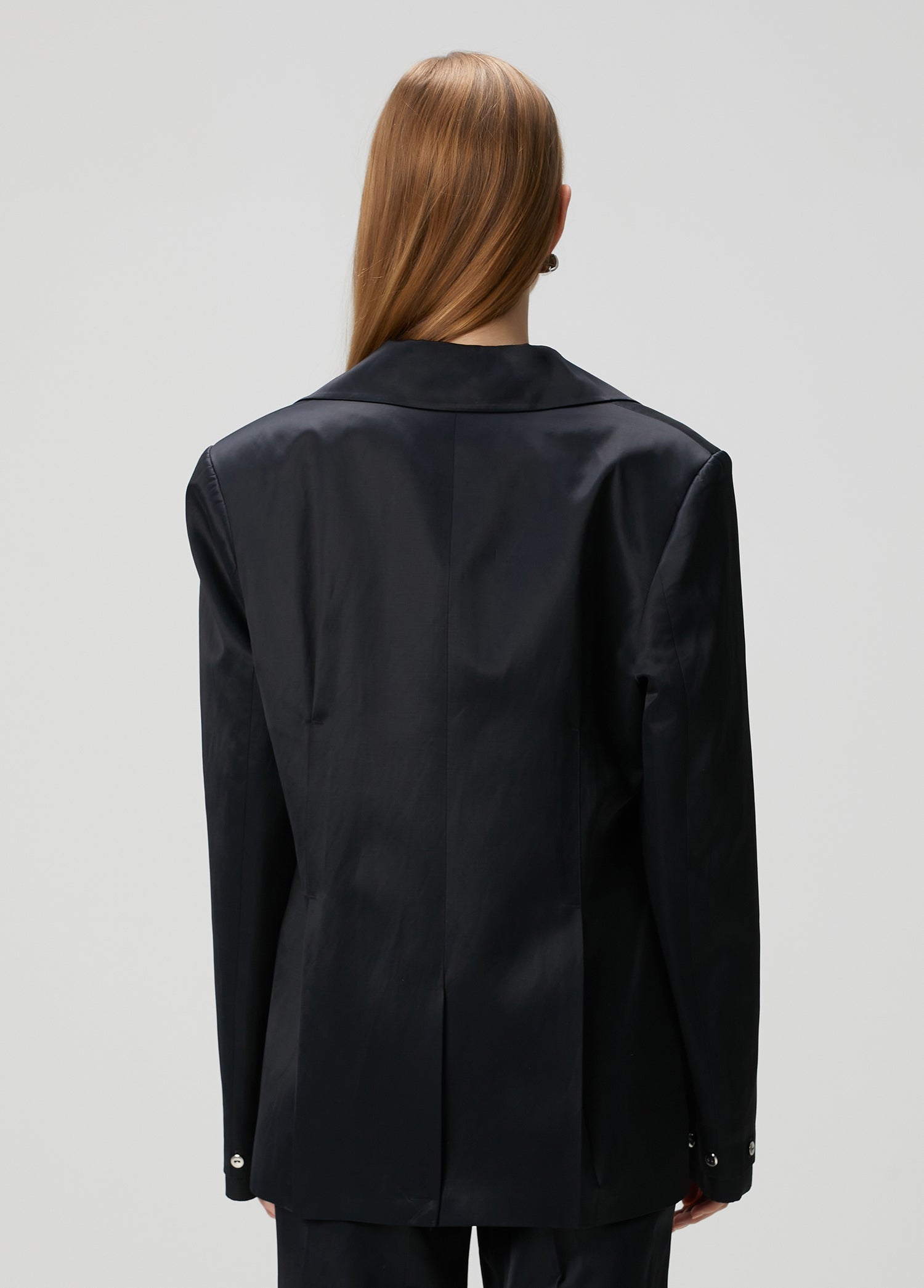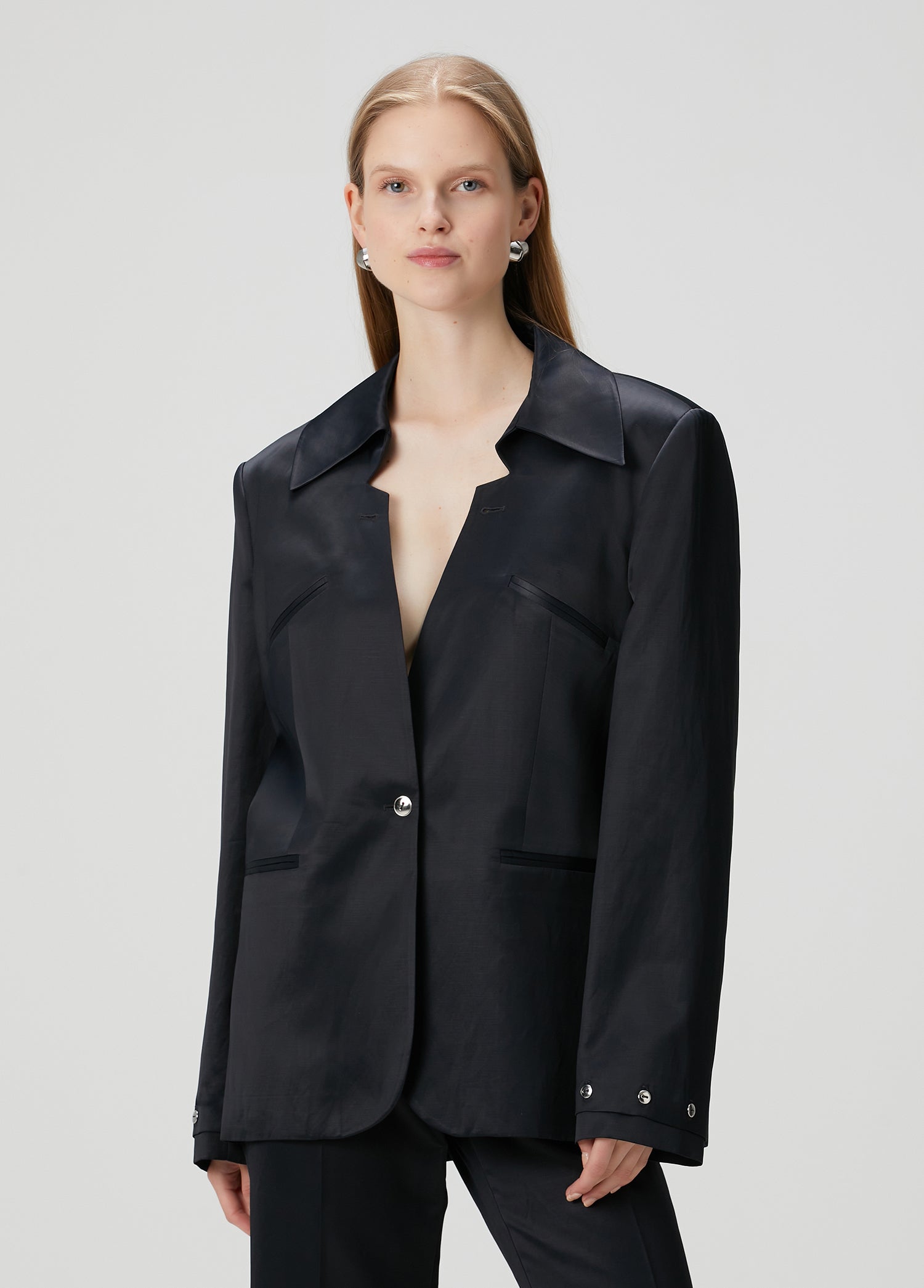 LINEN BLEND CROP SHINY WOVEN JACKET - JET BLACK