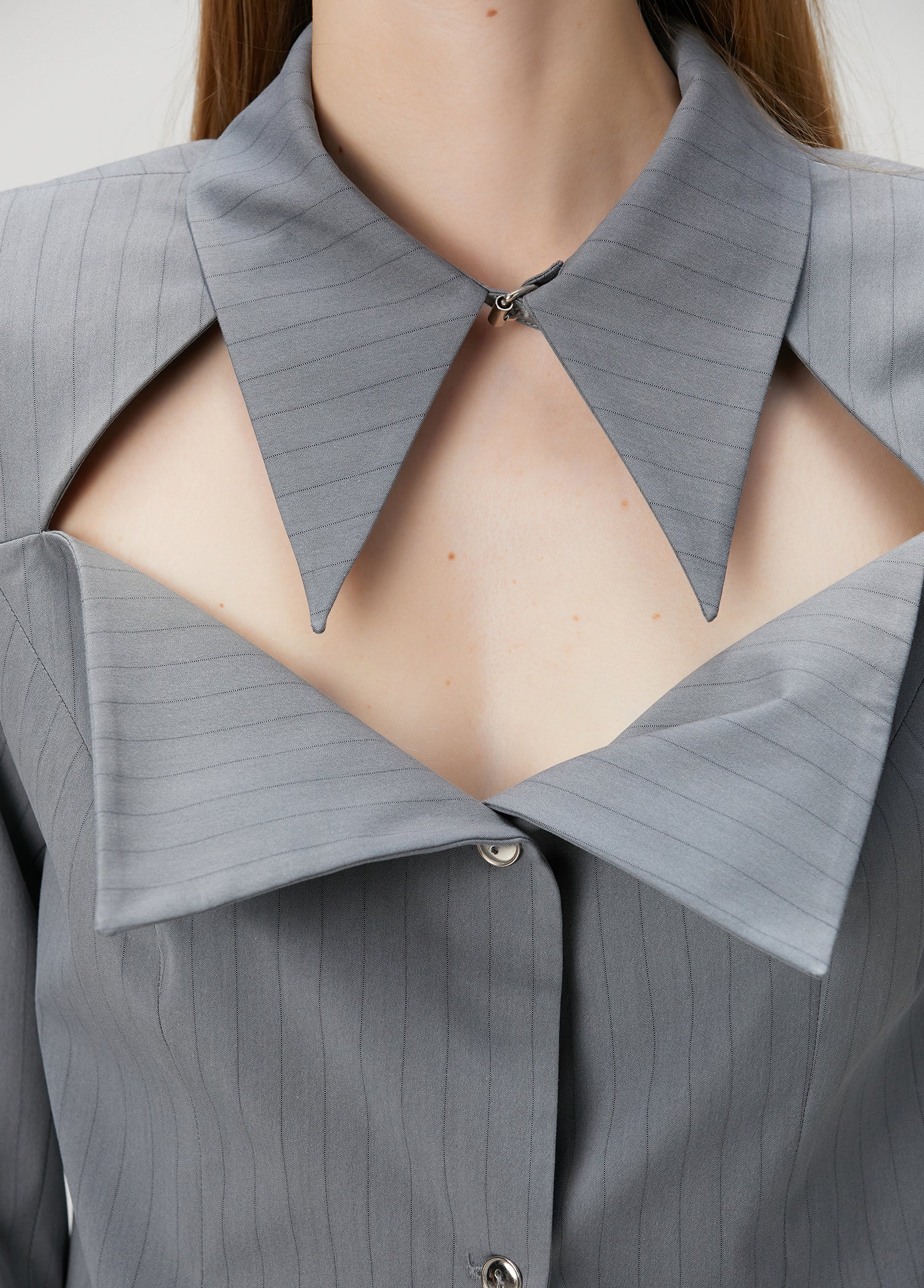WOVEN STRIPED SHIRT WITH METAL BUTTON